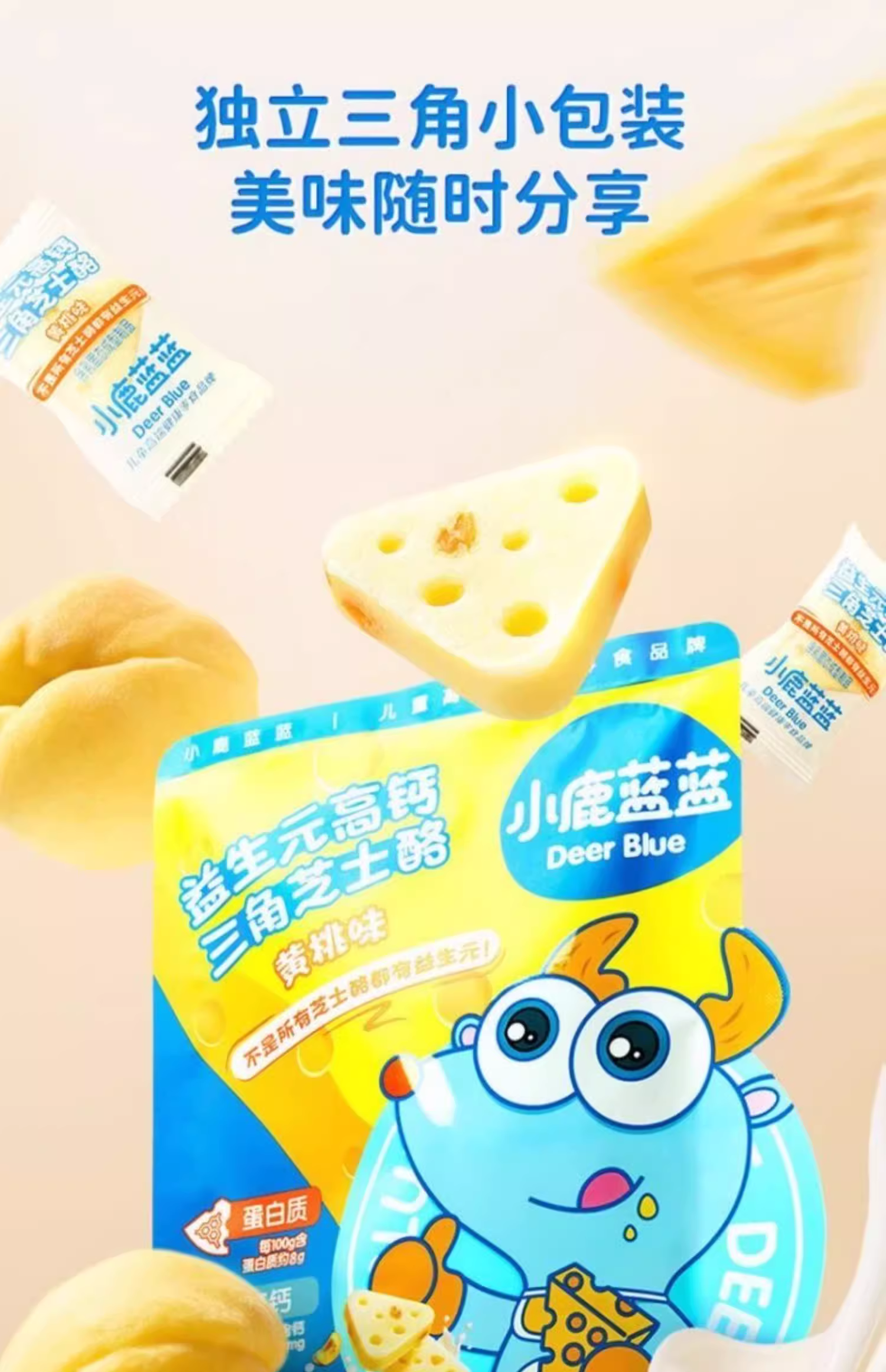 小鹿蓝蓝_益生元高钙三角芝士酪黄桃味90g