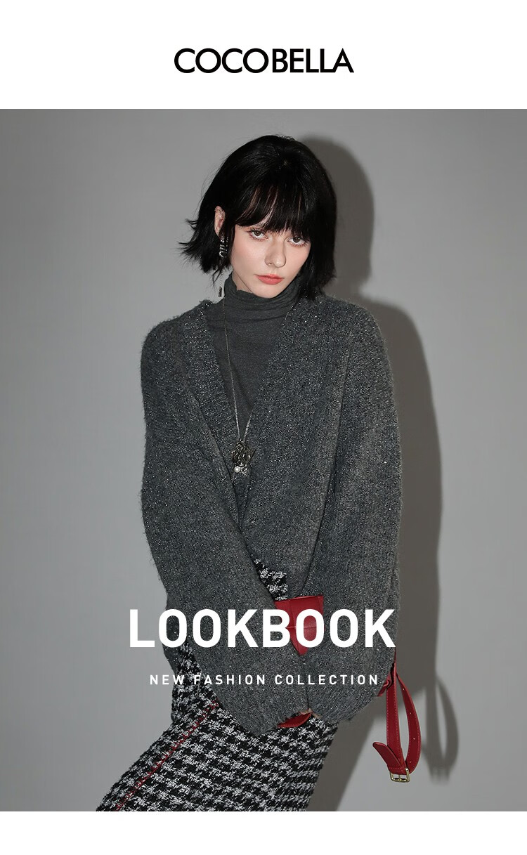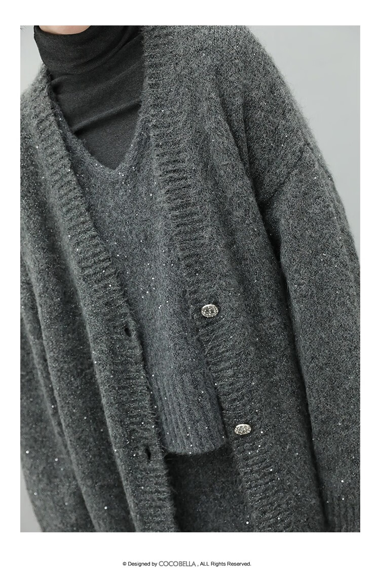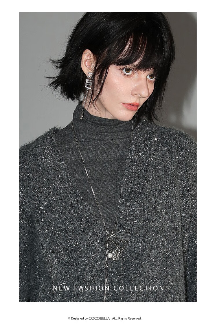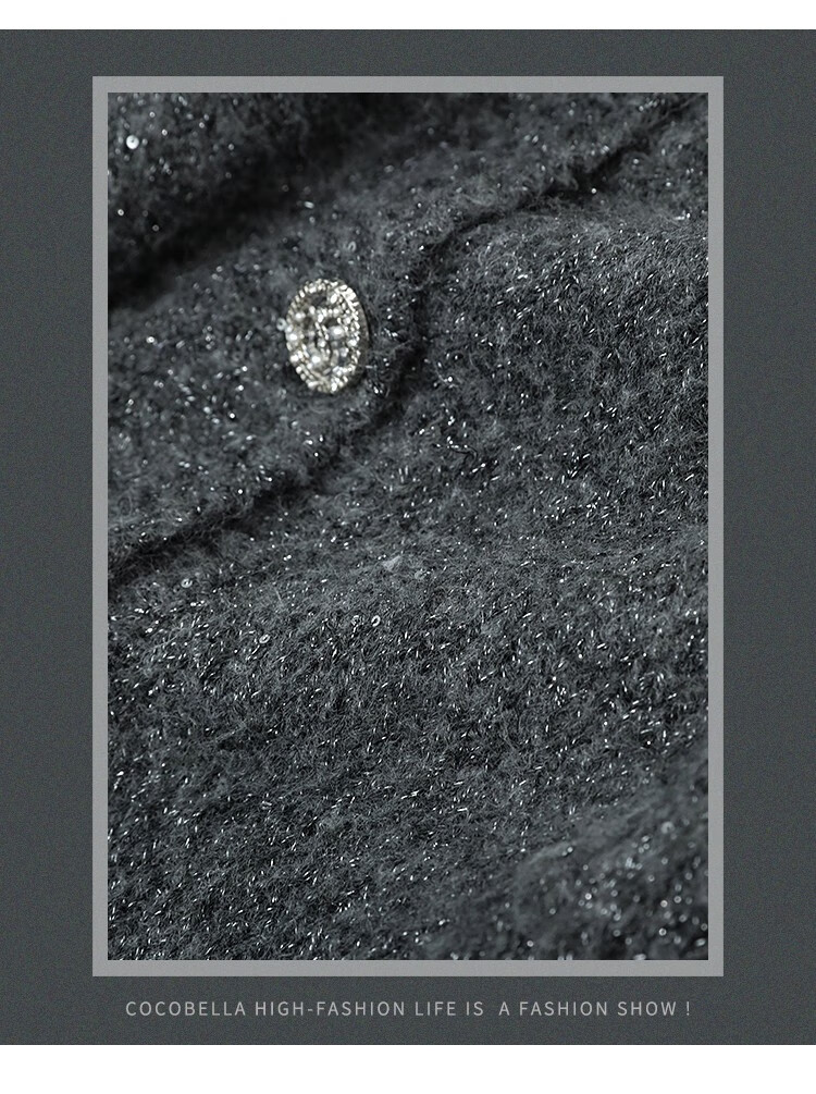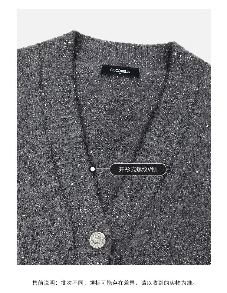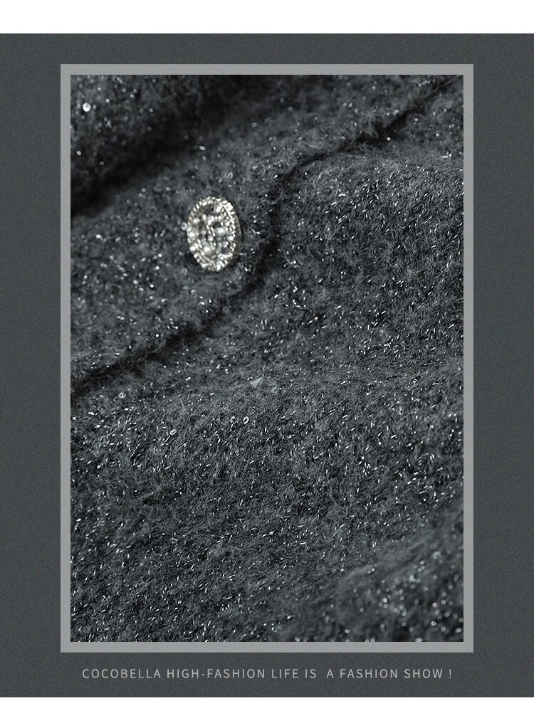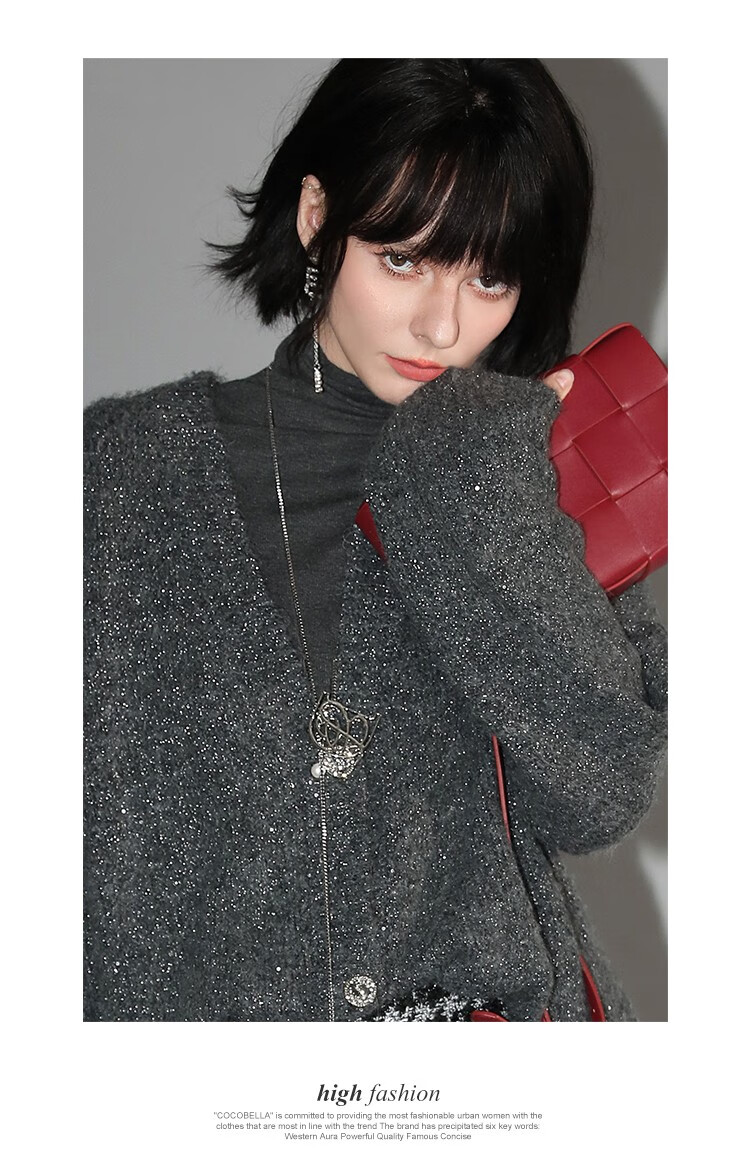 COCOBELLA细闪亮片加厚针织外套女秋冬蓬松软糯开衫毛衣MZ189