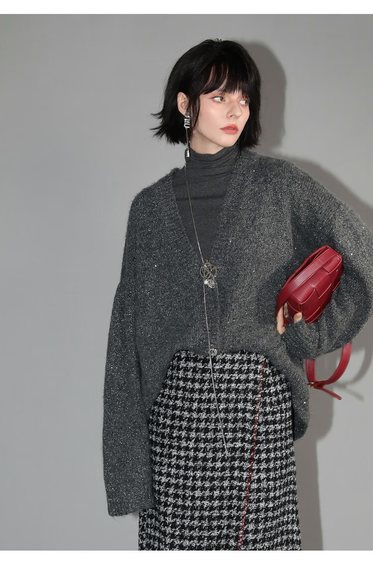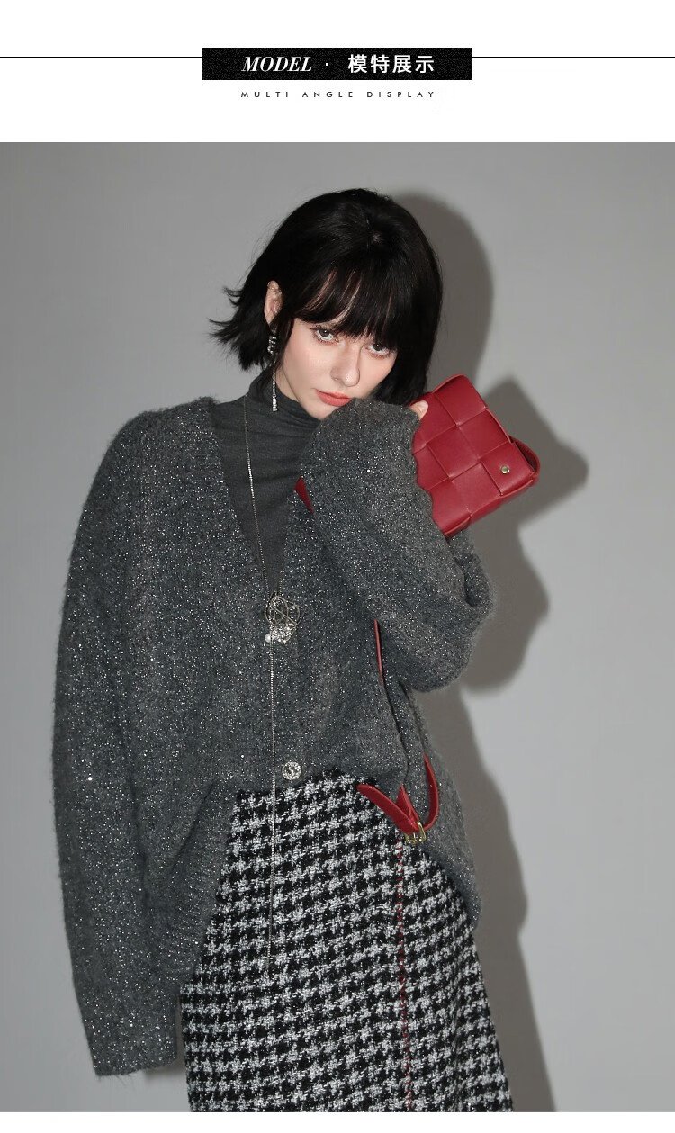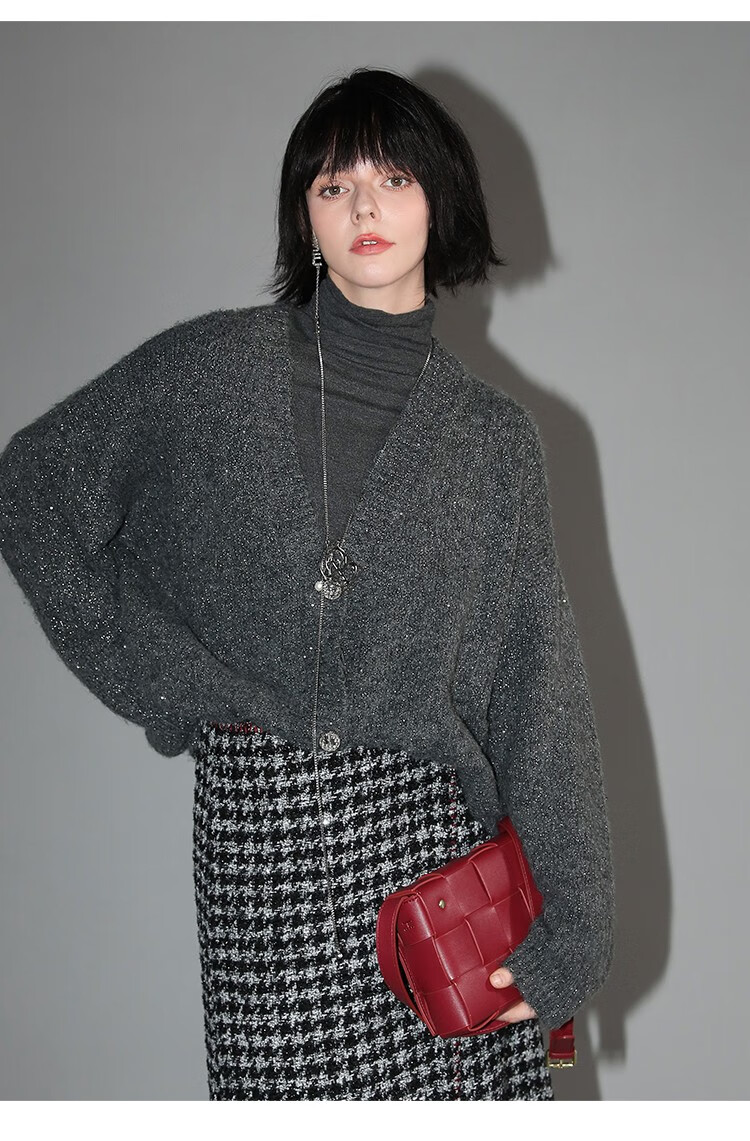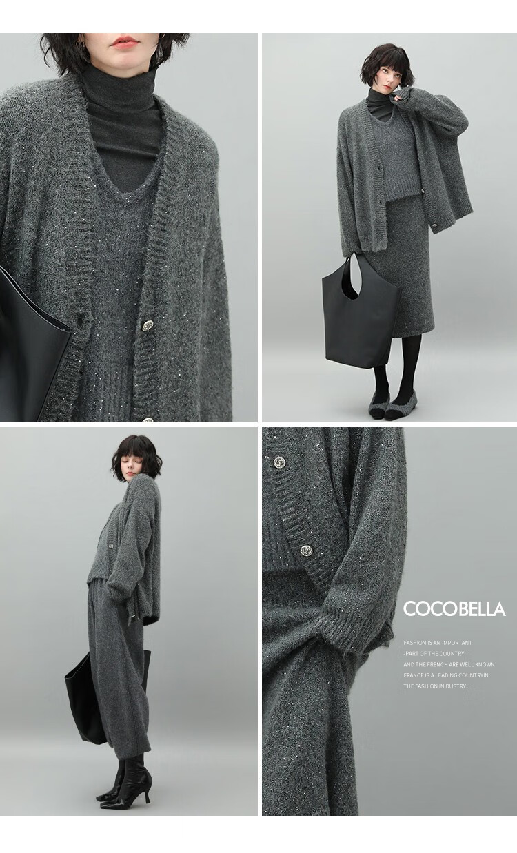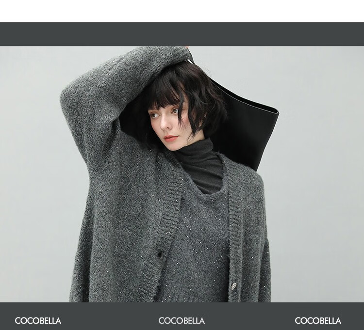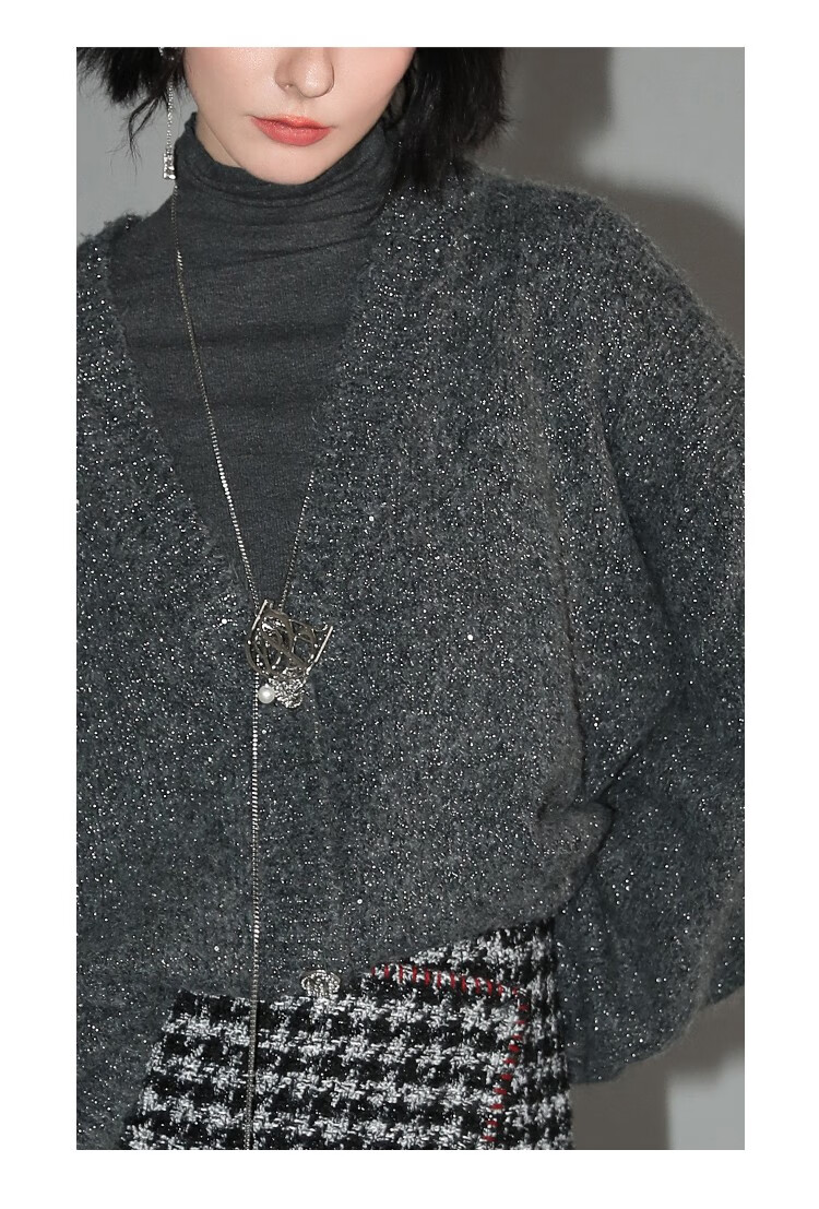 COCOBELLA细闪亮片加厚针织外套女秋冬蓬松软糯开衫毛衣MZ189
