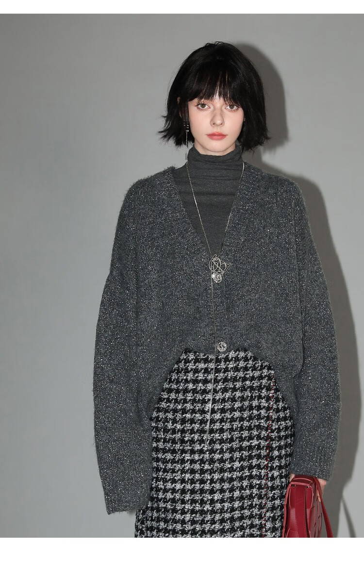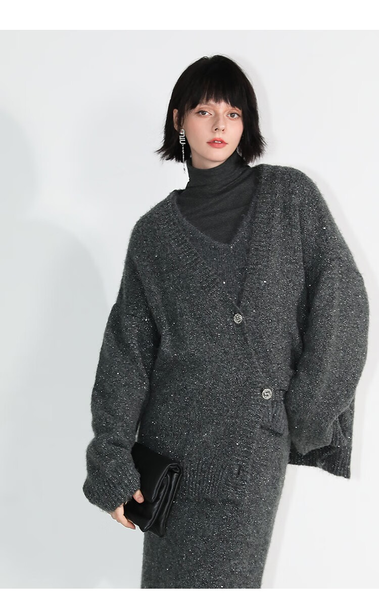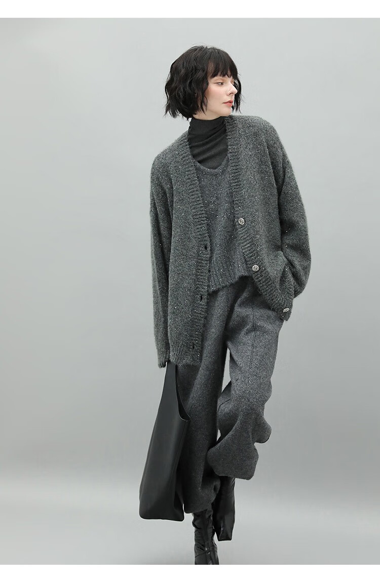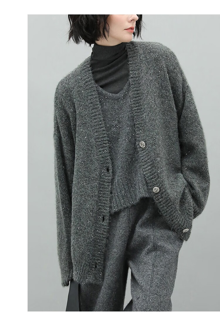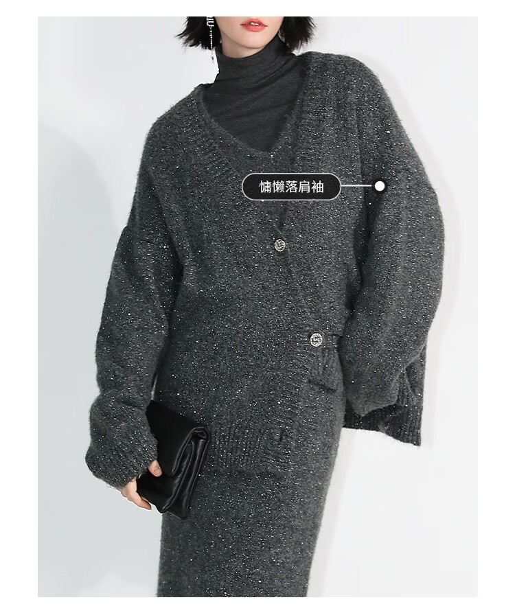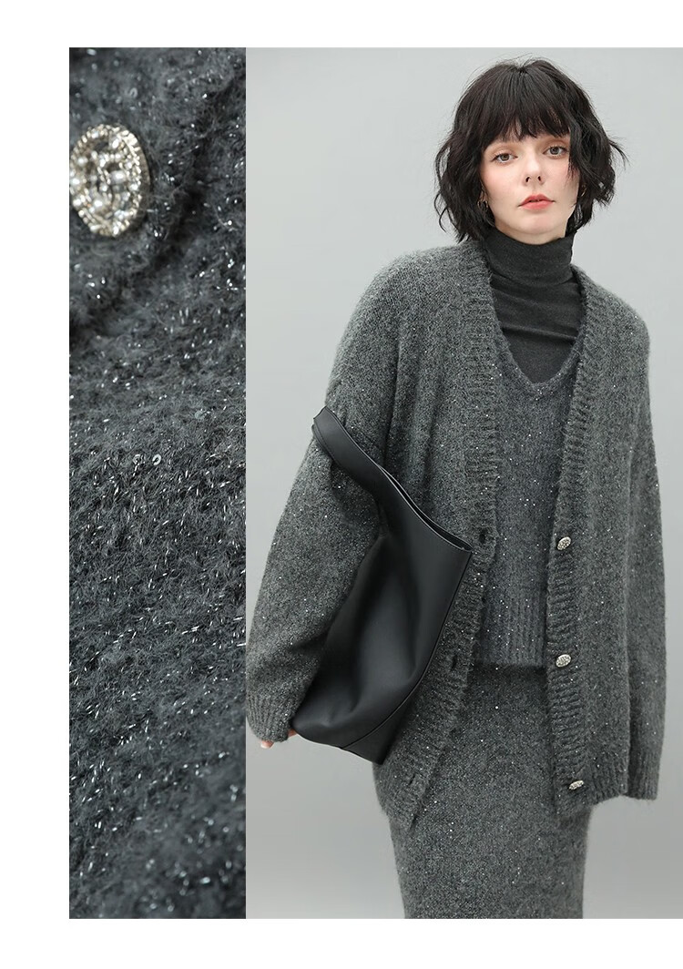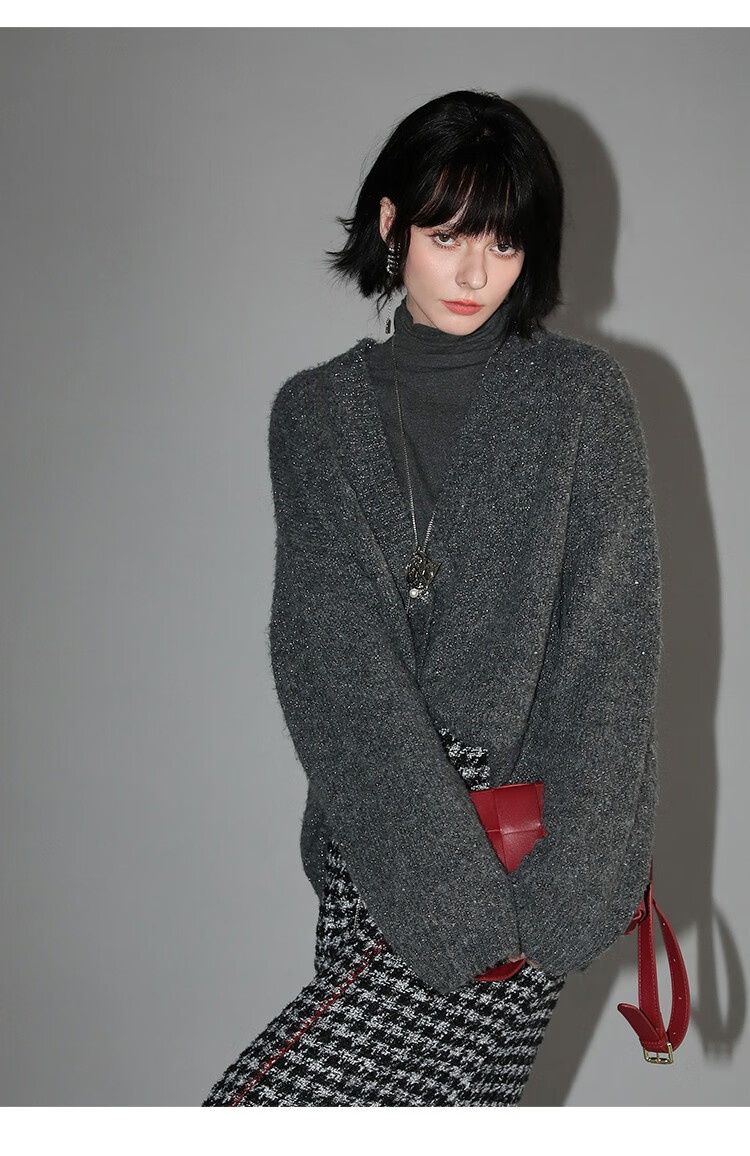 COCOBELLA细闪亮片加厚针织外套女秋冬蓬松软糯开衫毛衣MZ189