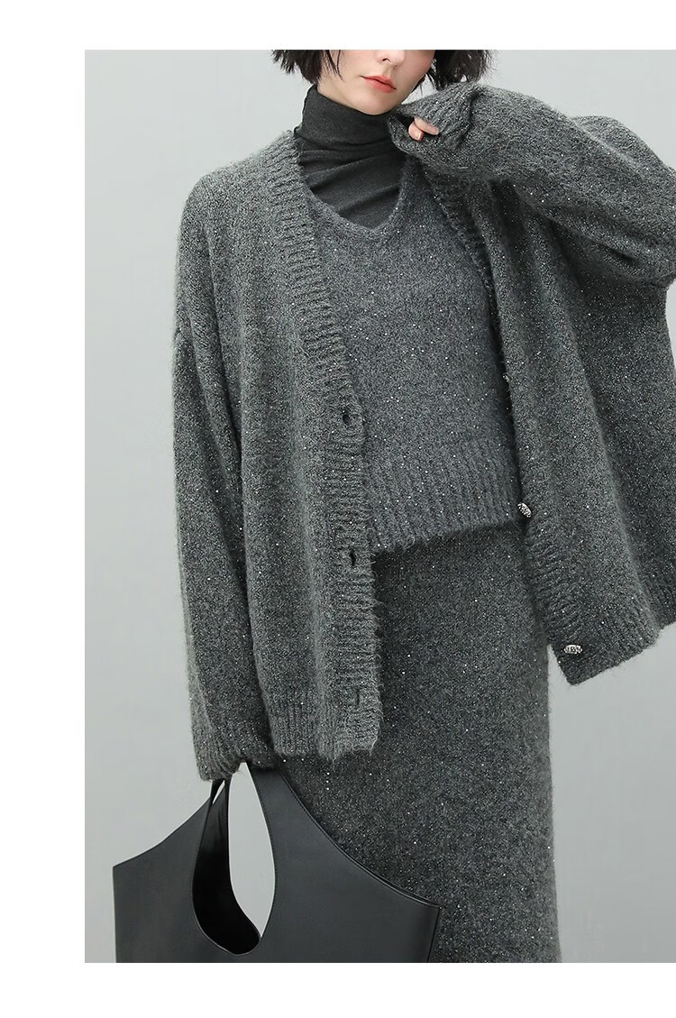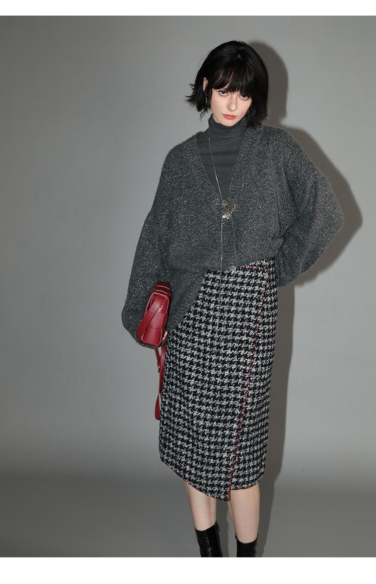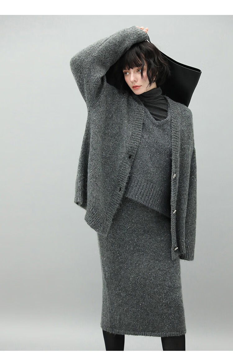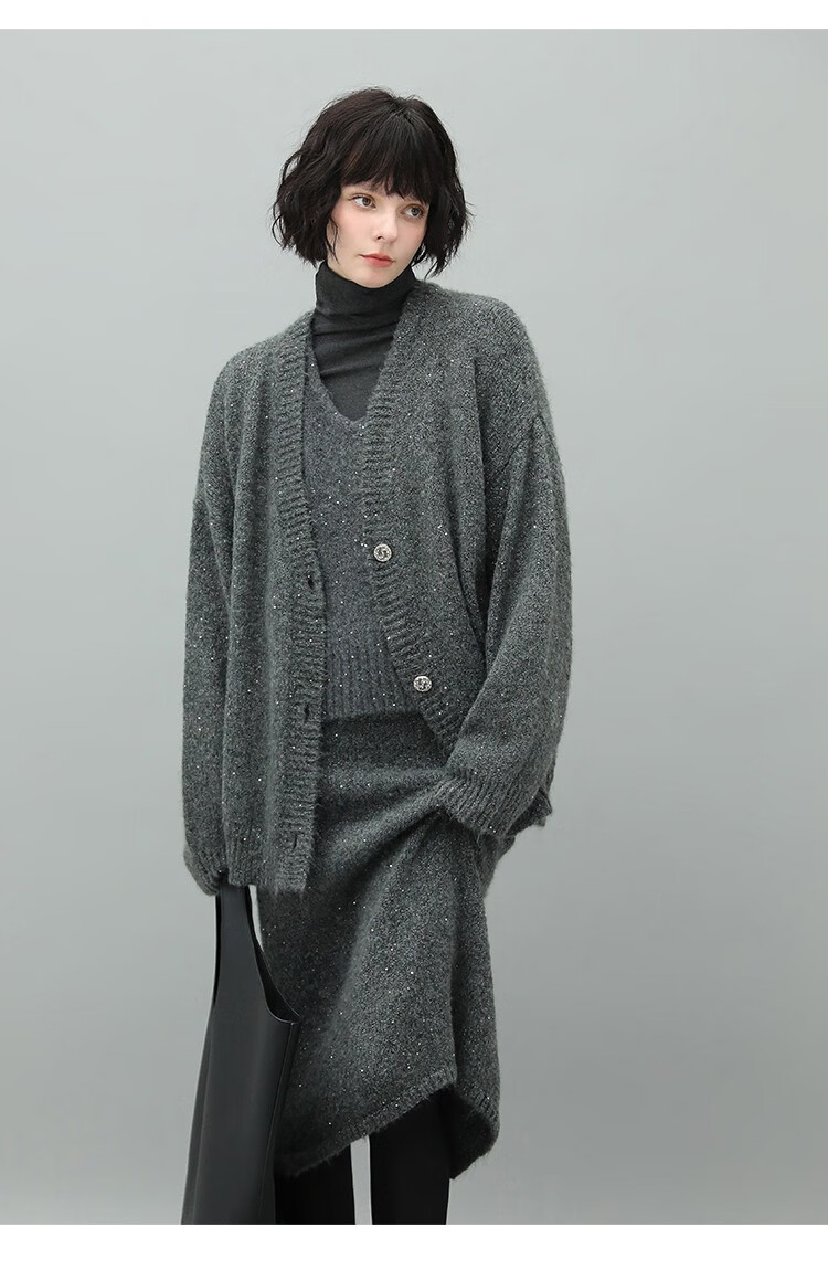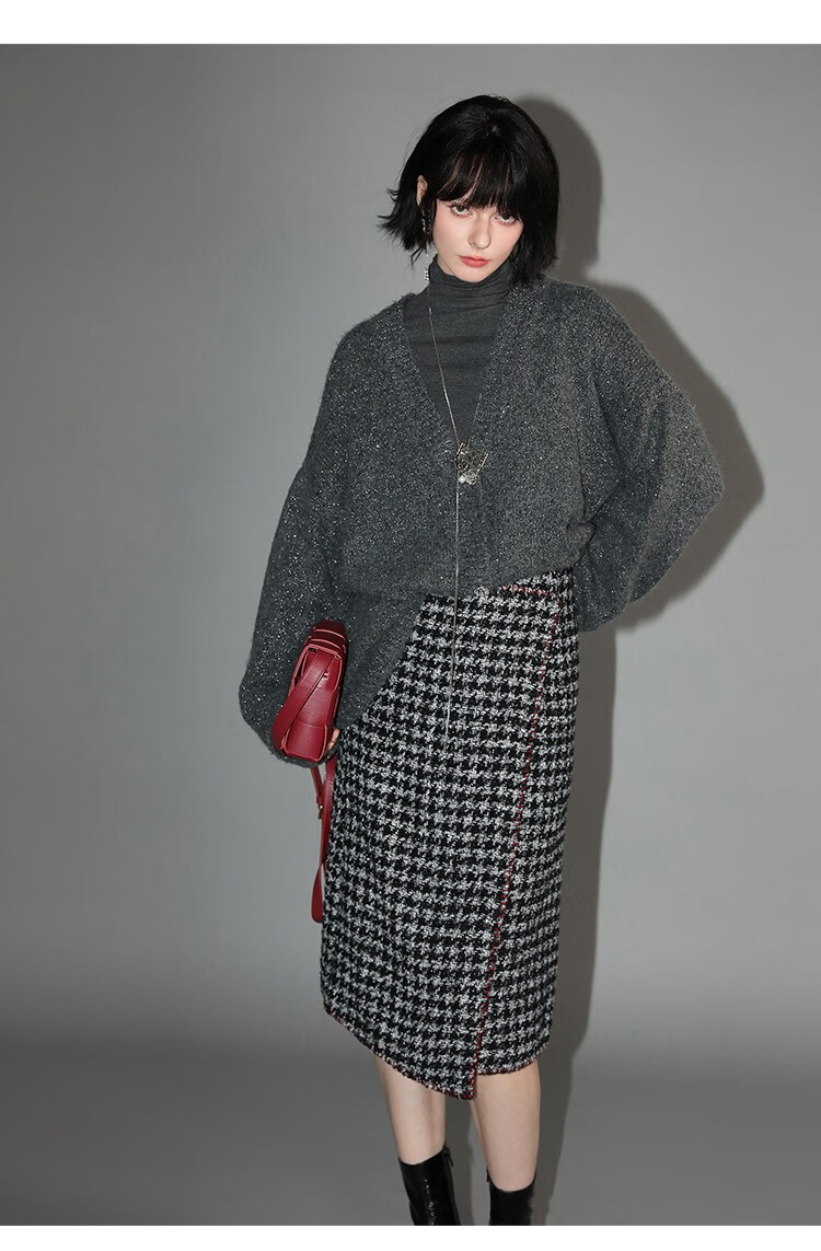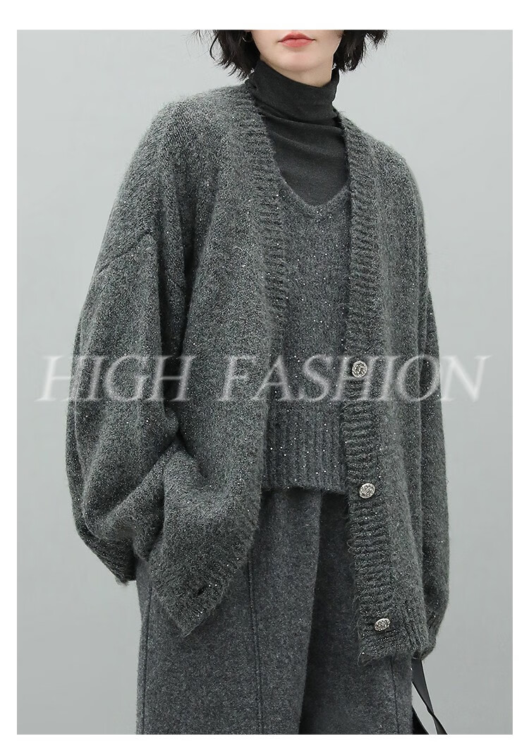 COCOBELLA细闪亮片加厚针织外套女秋冬蓬松软糯开衫毛衣MZ189