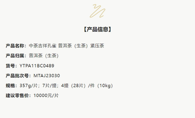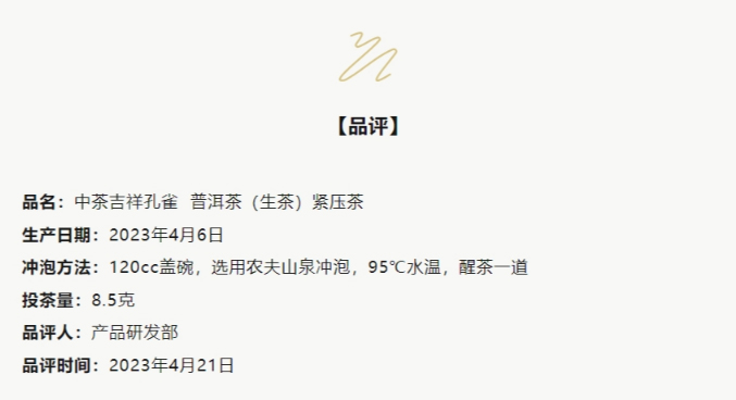 中粮-中茶吉祥孔雀普洱生茶 2023年 357克/饼