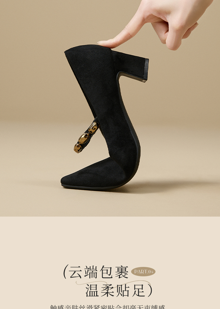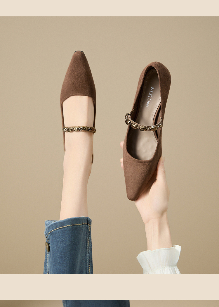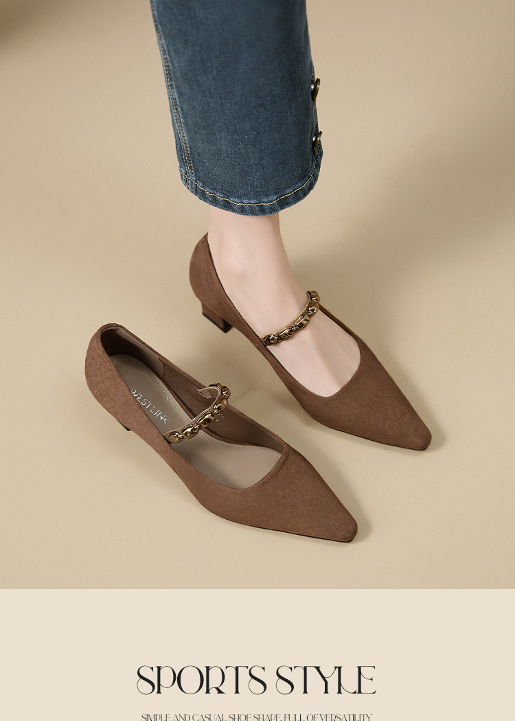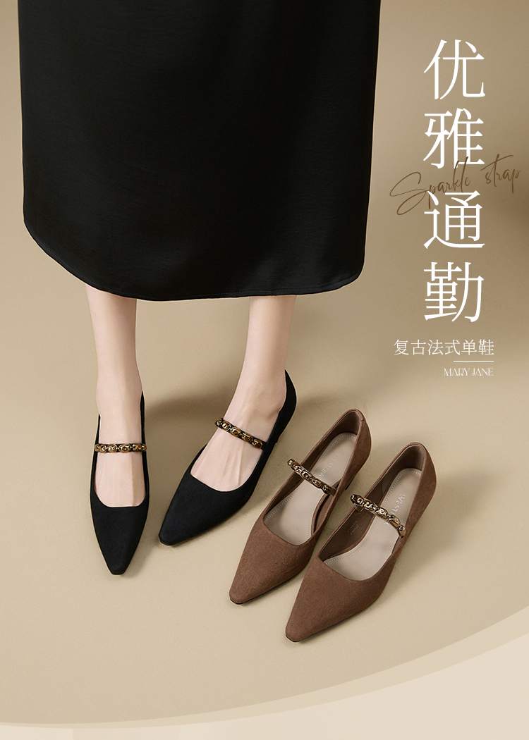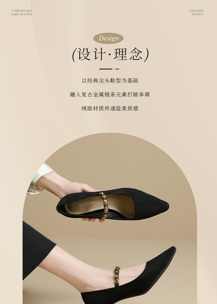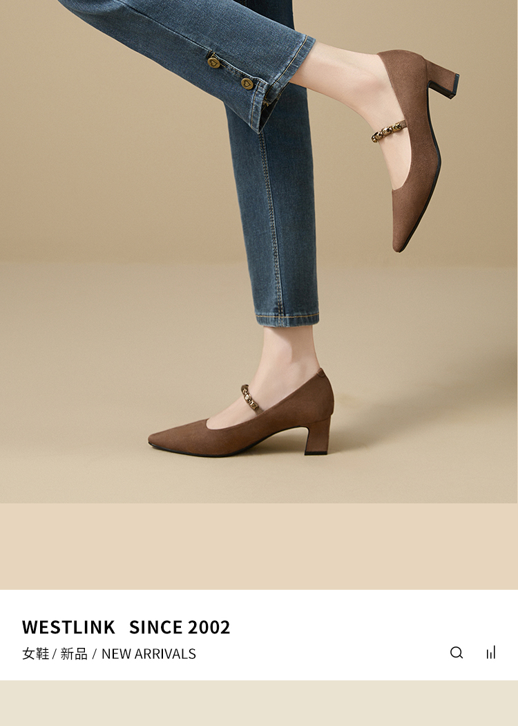 【限时秒杀】西遇尖头高跟鞋女新款秋季绒面法式绝美复古玛丽珍鞋细跟单鞋V1756995