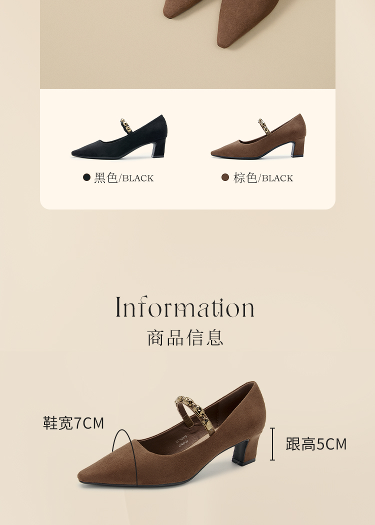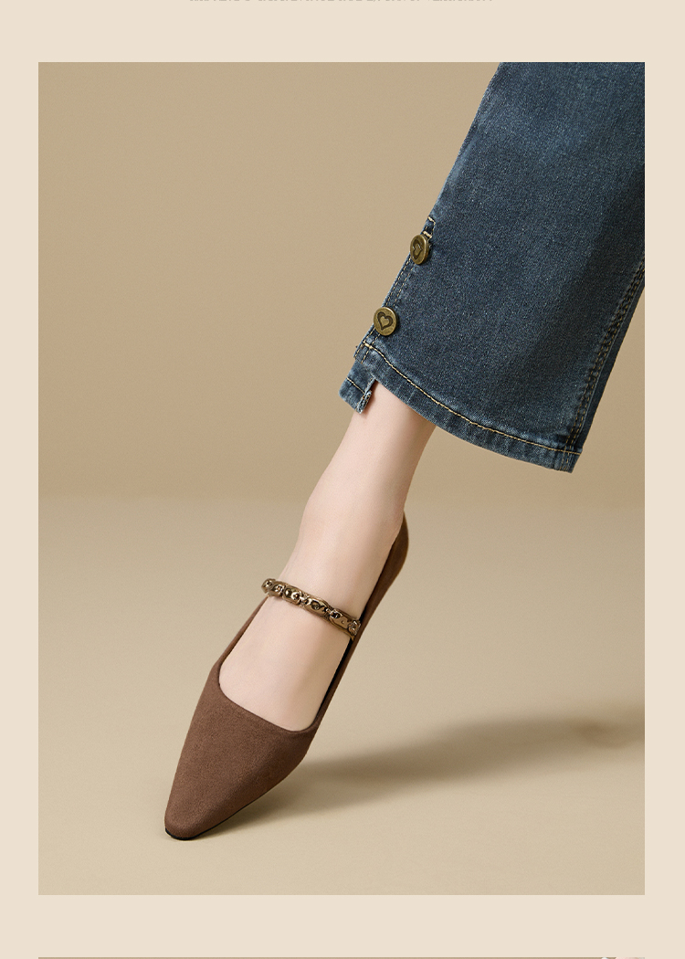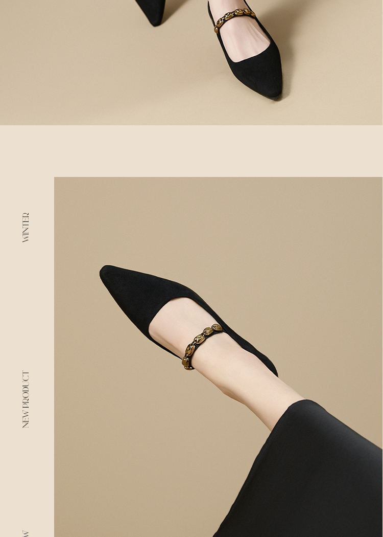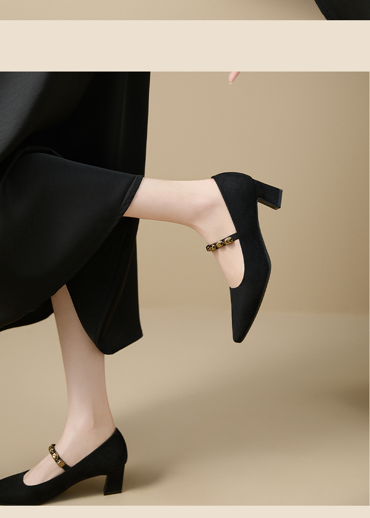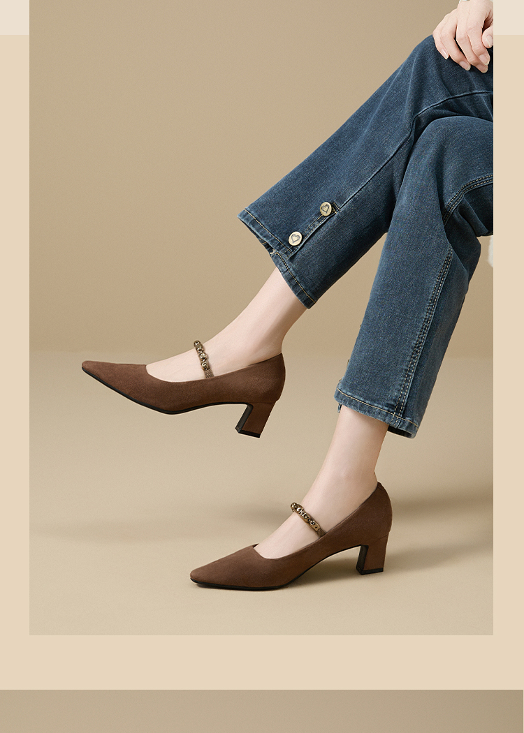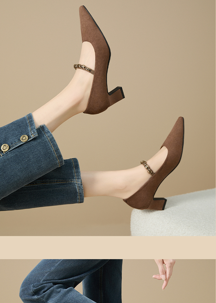 【限时秒杀】西遇尖头高跟鞋女新款秋季绒面法式绝美复古玛丽珍鞋细跟单鞋V1756995