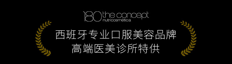 180 the concept由西班牙抗衰老和营养分析专家Gema Cabahero于2010年在西班牙创建品牌专注于美容配方保健。是西班牙各界社会名流时尚达人首选口服抗衰品 被誉为西班牙最佳美容食品
