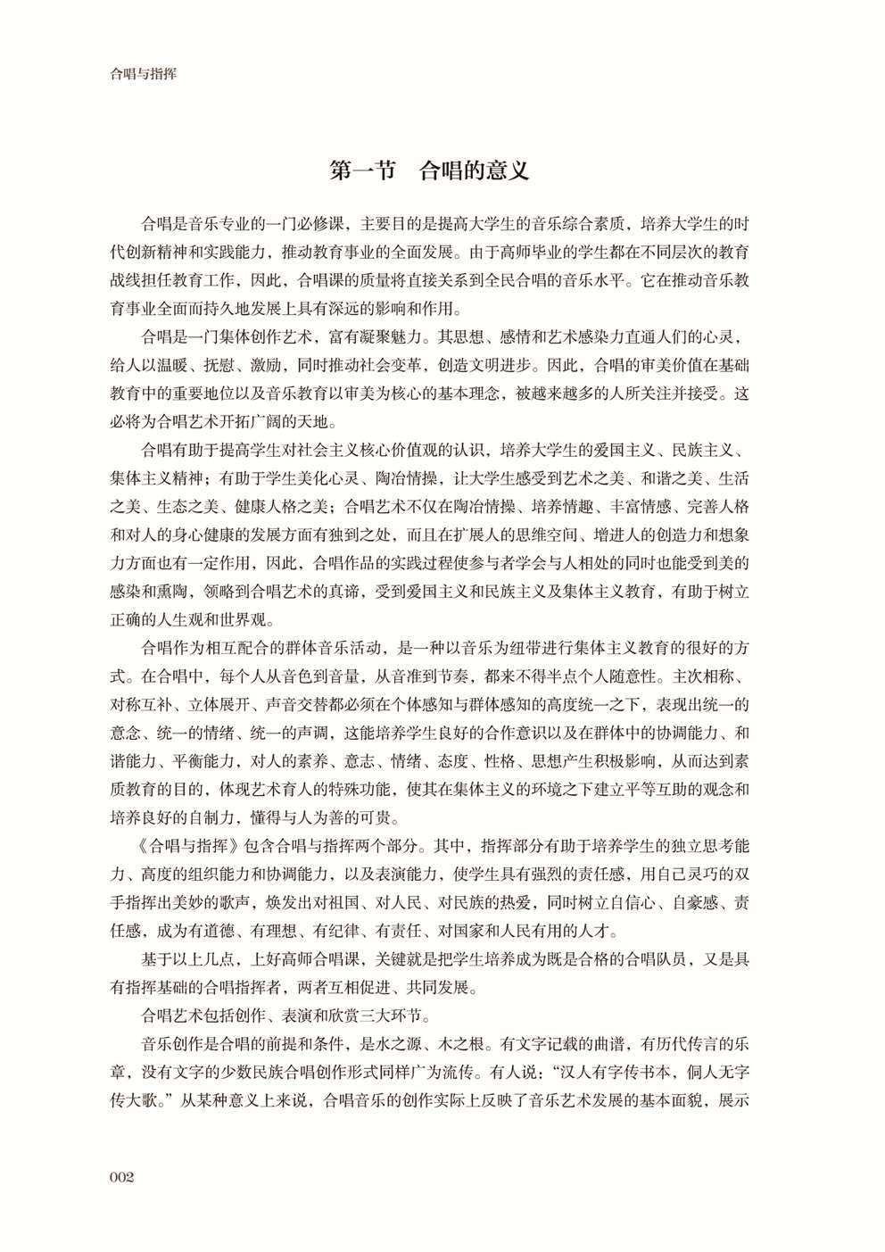 为了适应高等院校《合唱与指挥》这门课程的教学,笔者围绕着合唱的历史、合唱的基本知识、合唱的声音训练及协调,指挥技巧、合唱的处理办法和组织能力等方面、编著了《合唱与指挥》一书。其宗旨是:让大学生通过合唱与指挥的理论学习和教学实践,提高自己的音乐知识和艺术修养,懂得音乐之美,合唱之美;初步掌握合唱的基本知识、训练方法、组织能力和指挥能力,以及怎样当好一名合格的合唱队员和怎样做好一名合格的指挥等。为大学生在未来的教师生涯中,用合唱这种艺术形式,指导教学实践奠定良好基础。