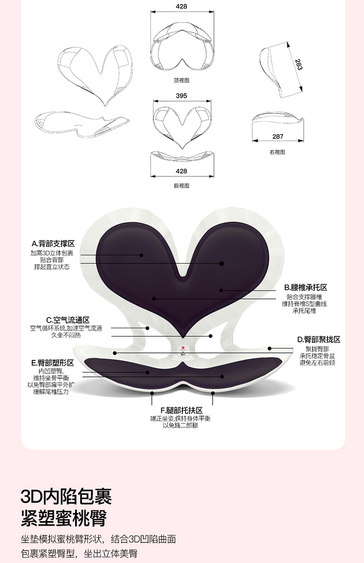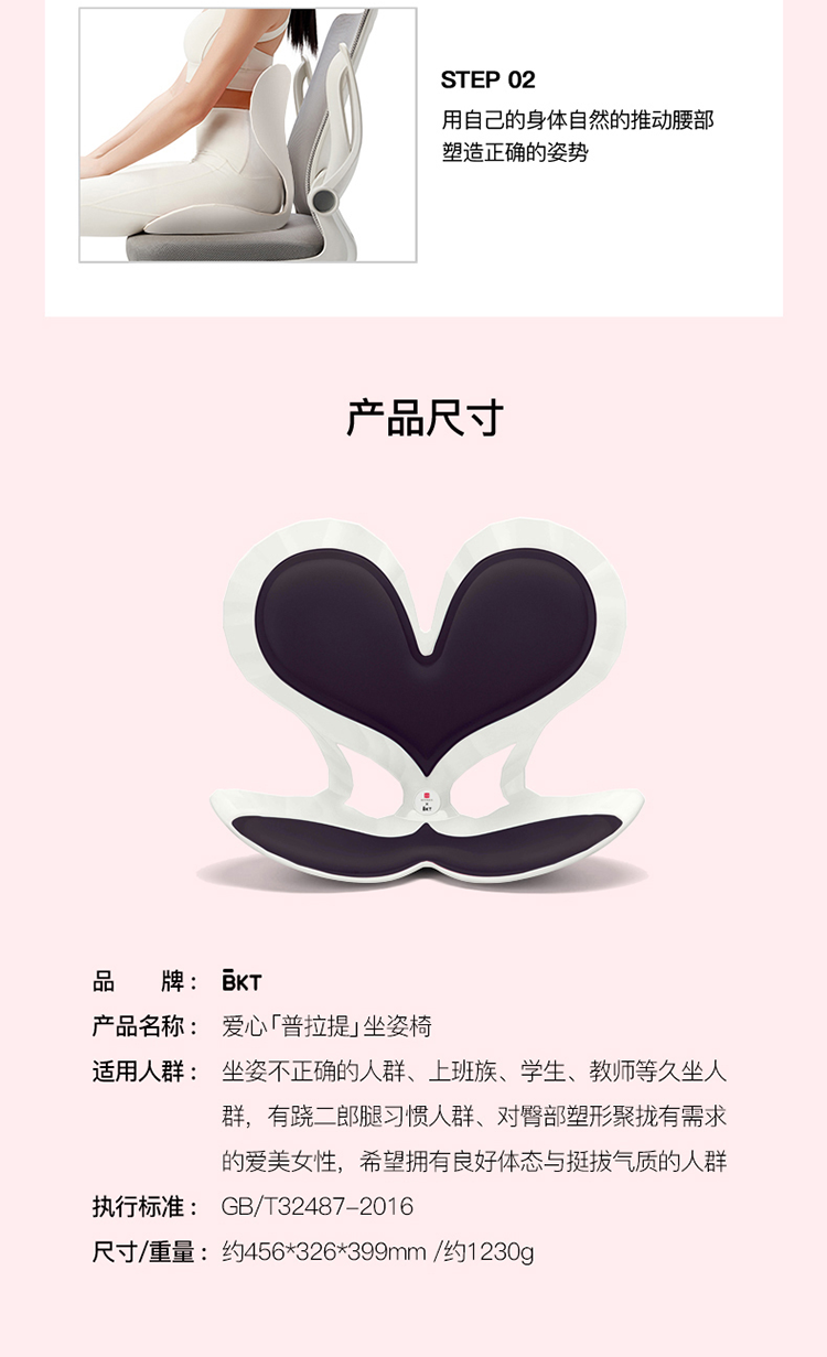 BKT 爱心「普拉提」坐姿椅 爱心版 摩卡黑