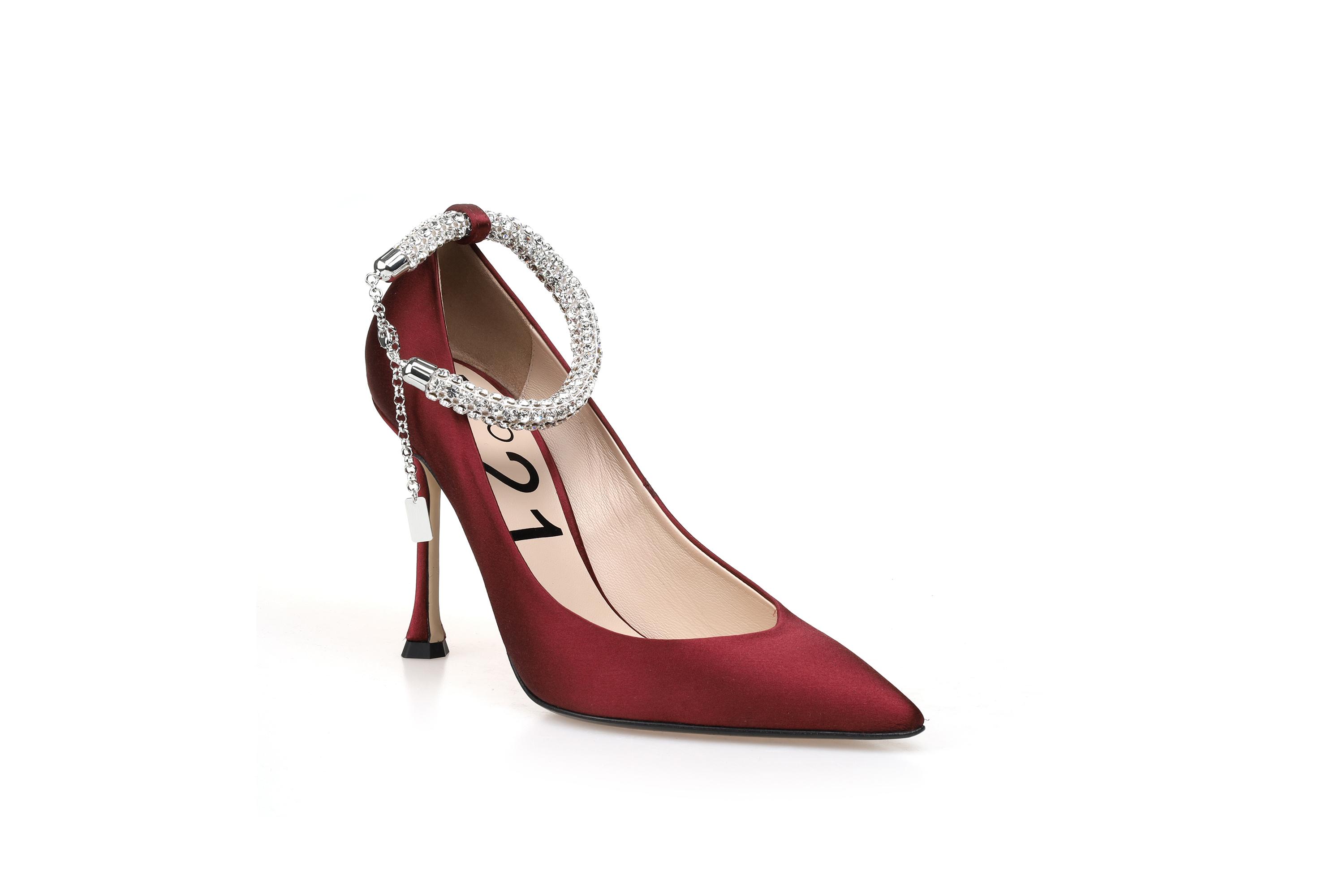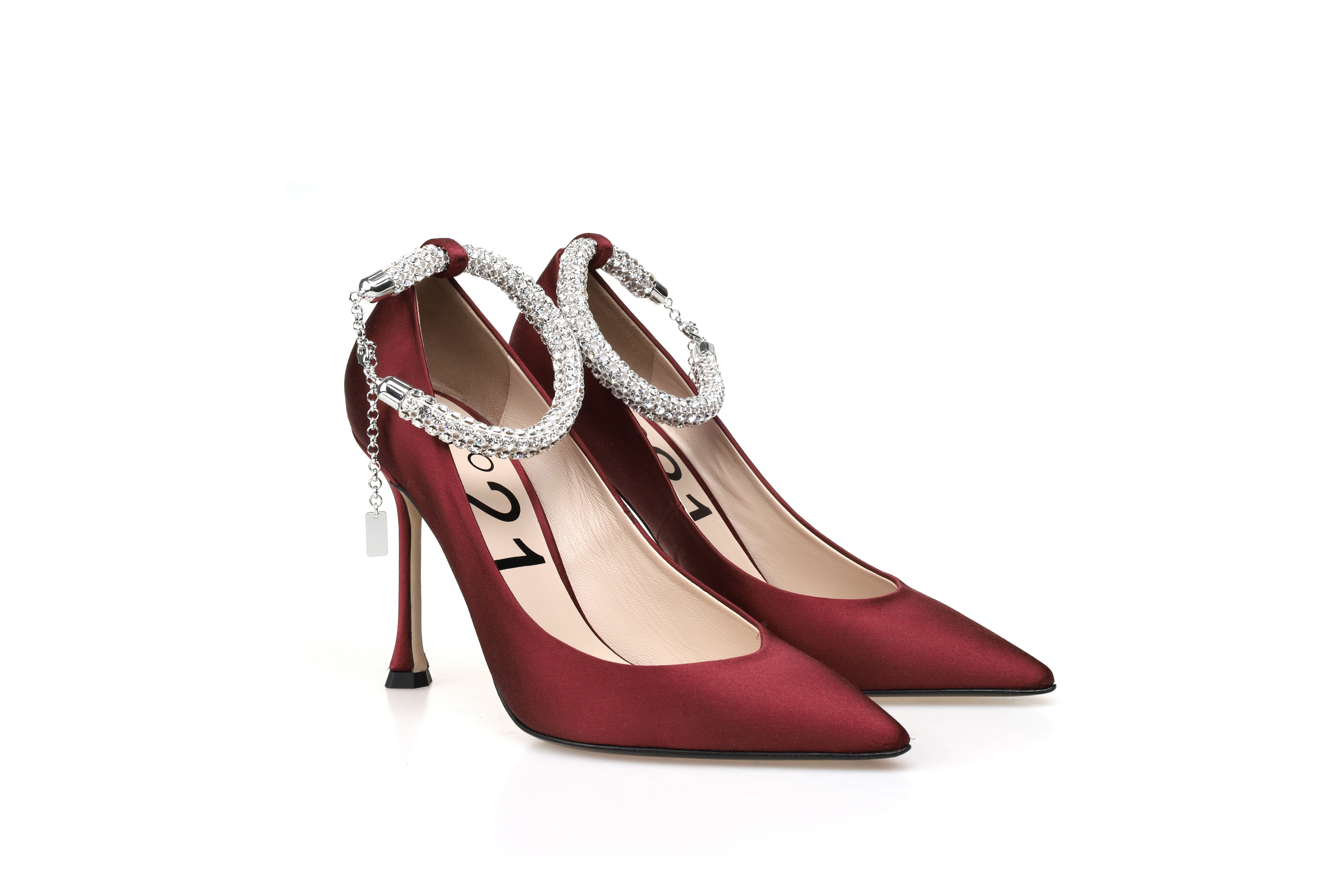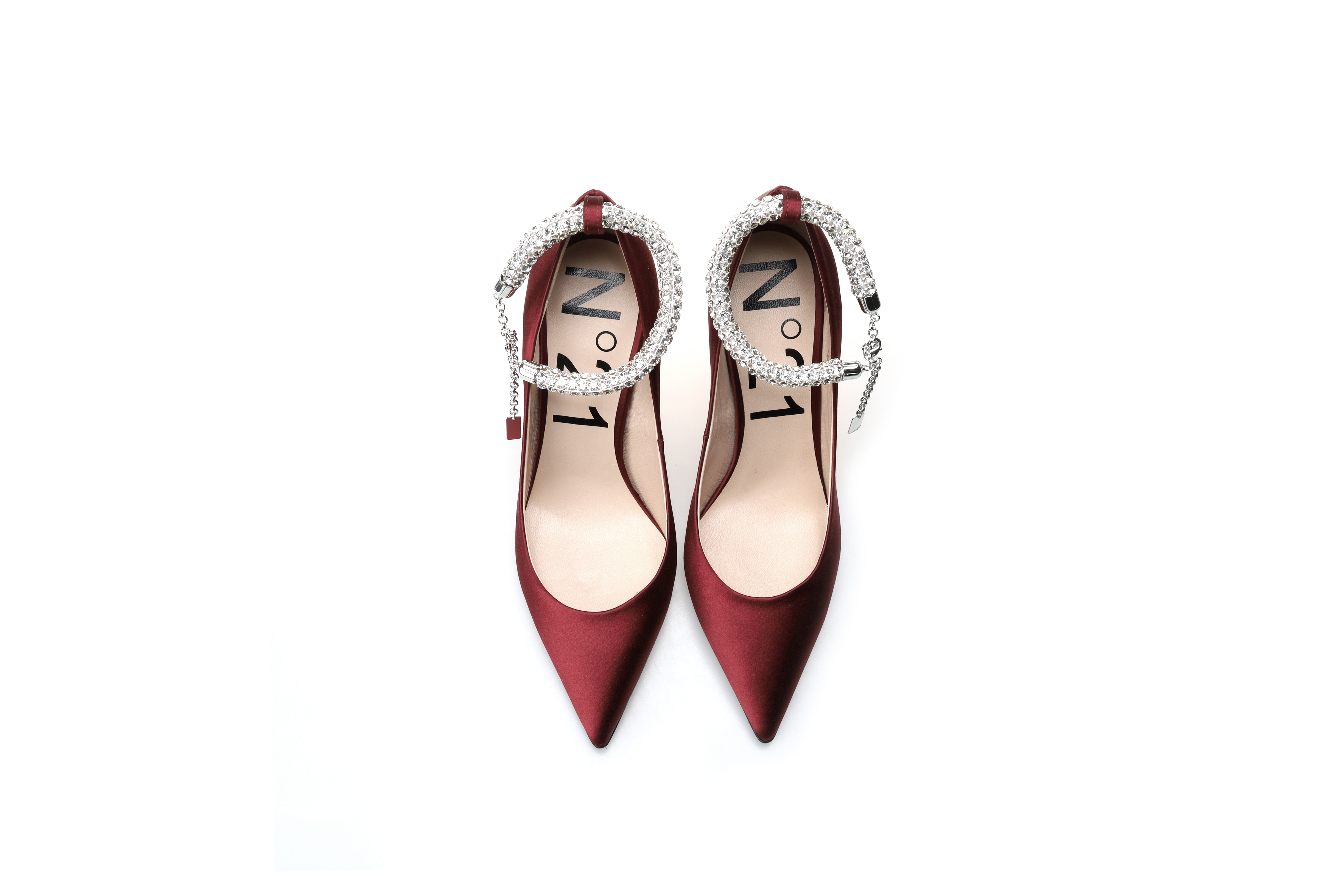豪麟名鞋奥莱N°21 女鞋皮鞋真丝布N14072P酒红色 原价7600元