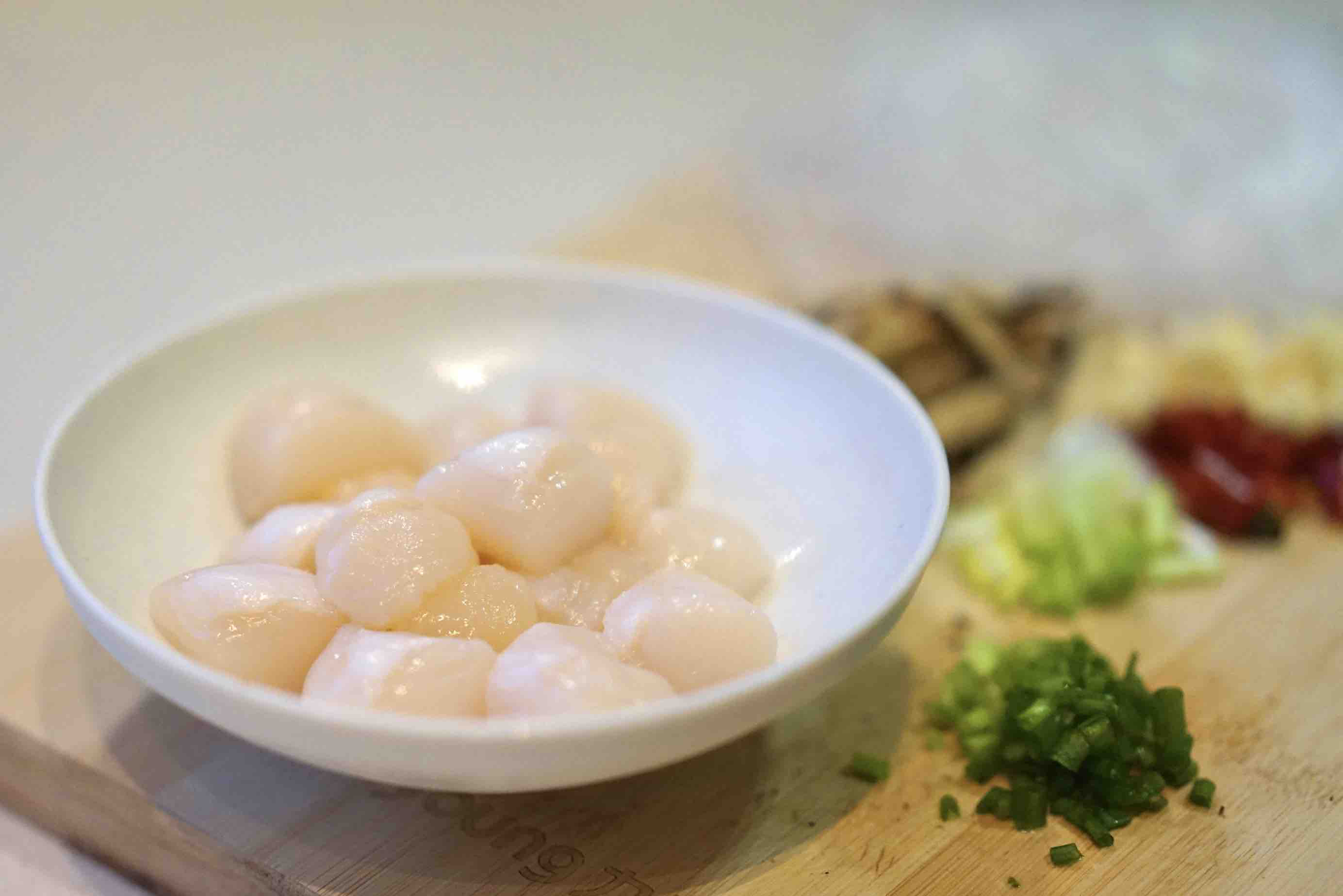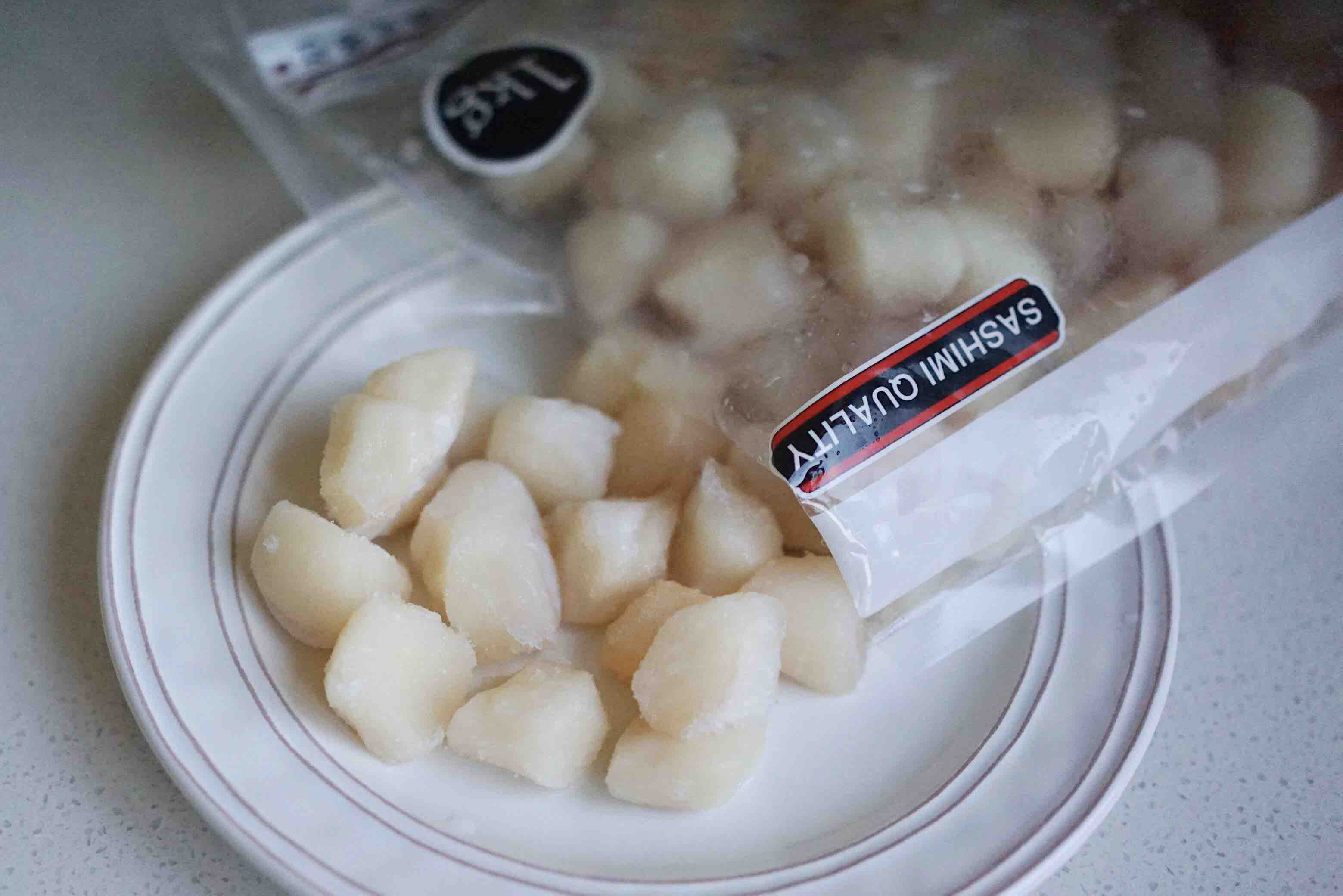 3. 帆立贝一定要自然解冻,会有少量乳白色原浆析出 不要丢,放到饺子馅里