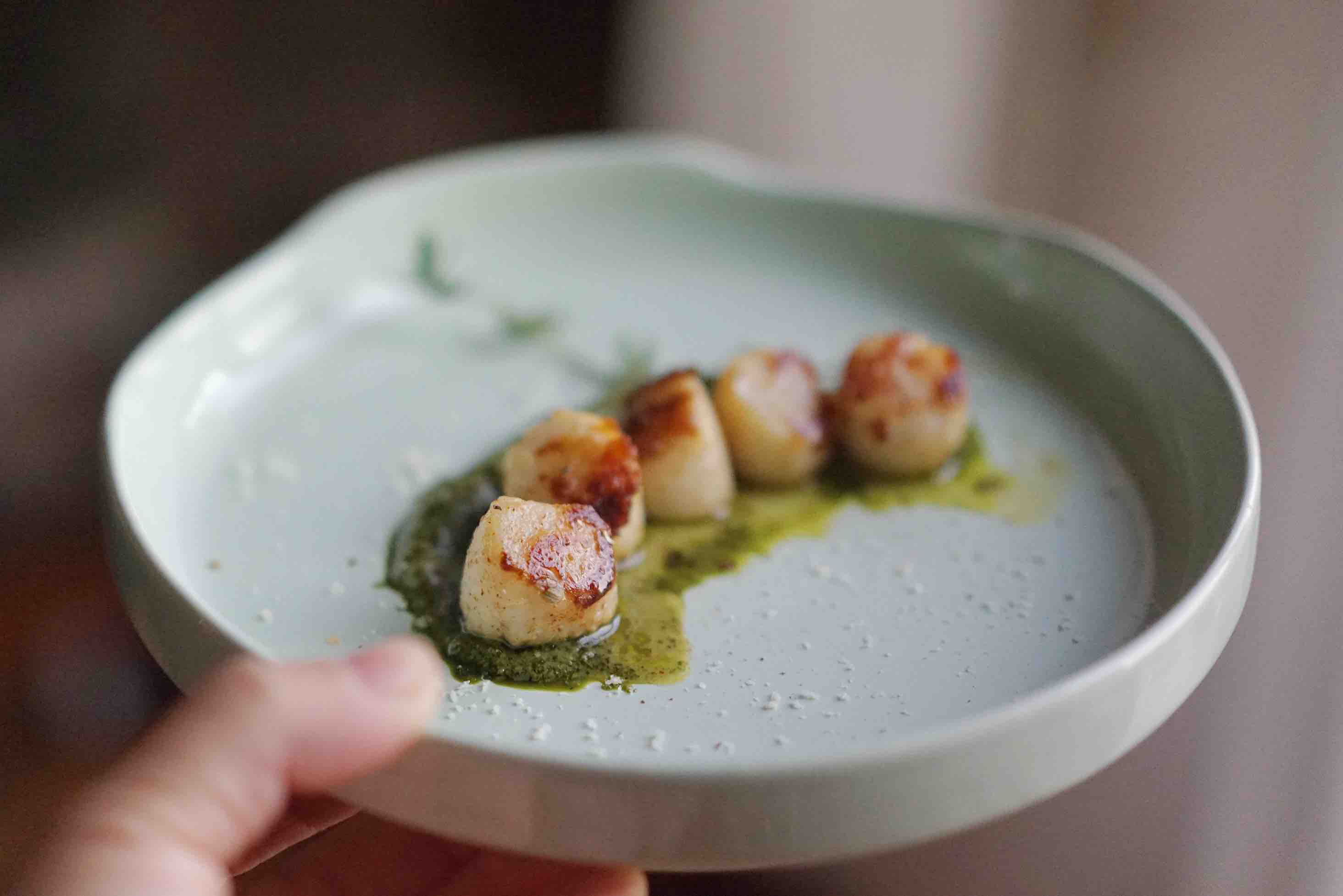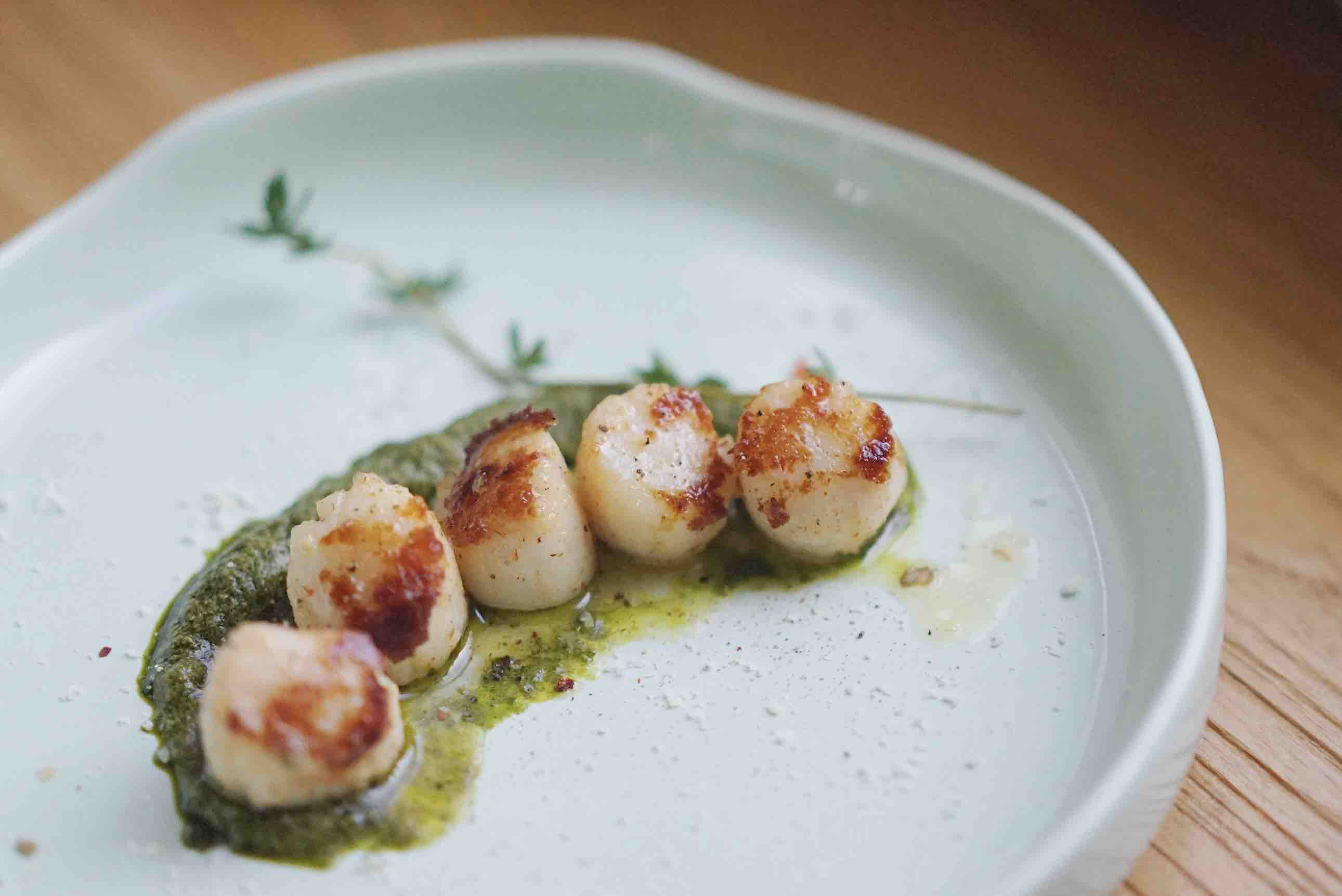 香煎帆立贝 配罗勒酱