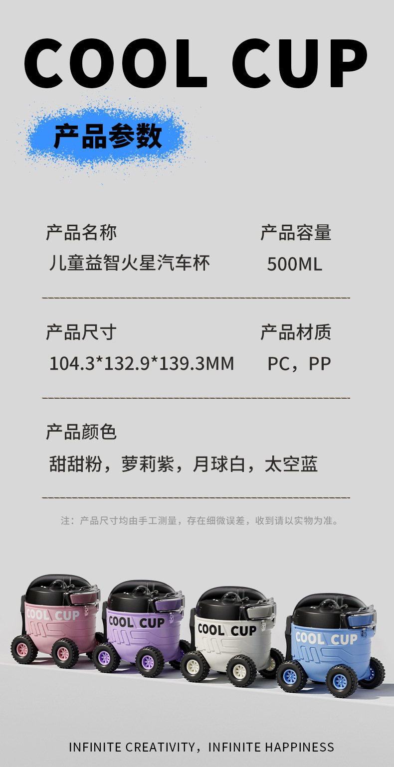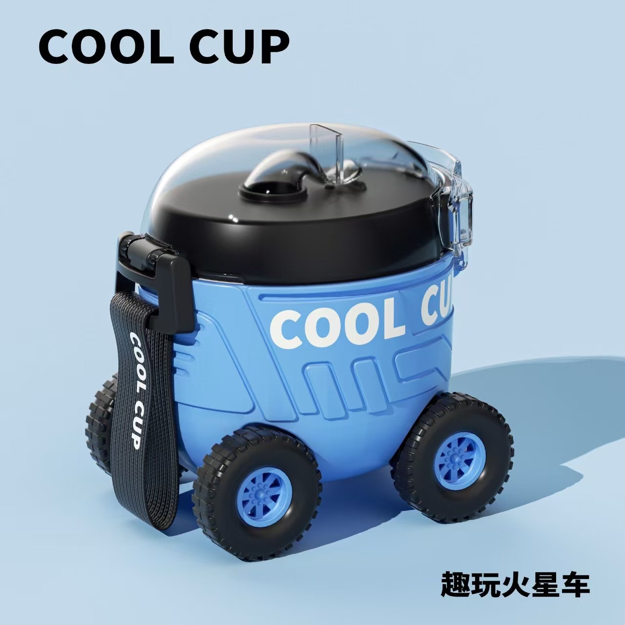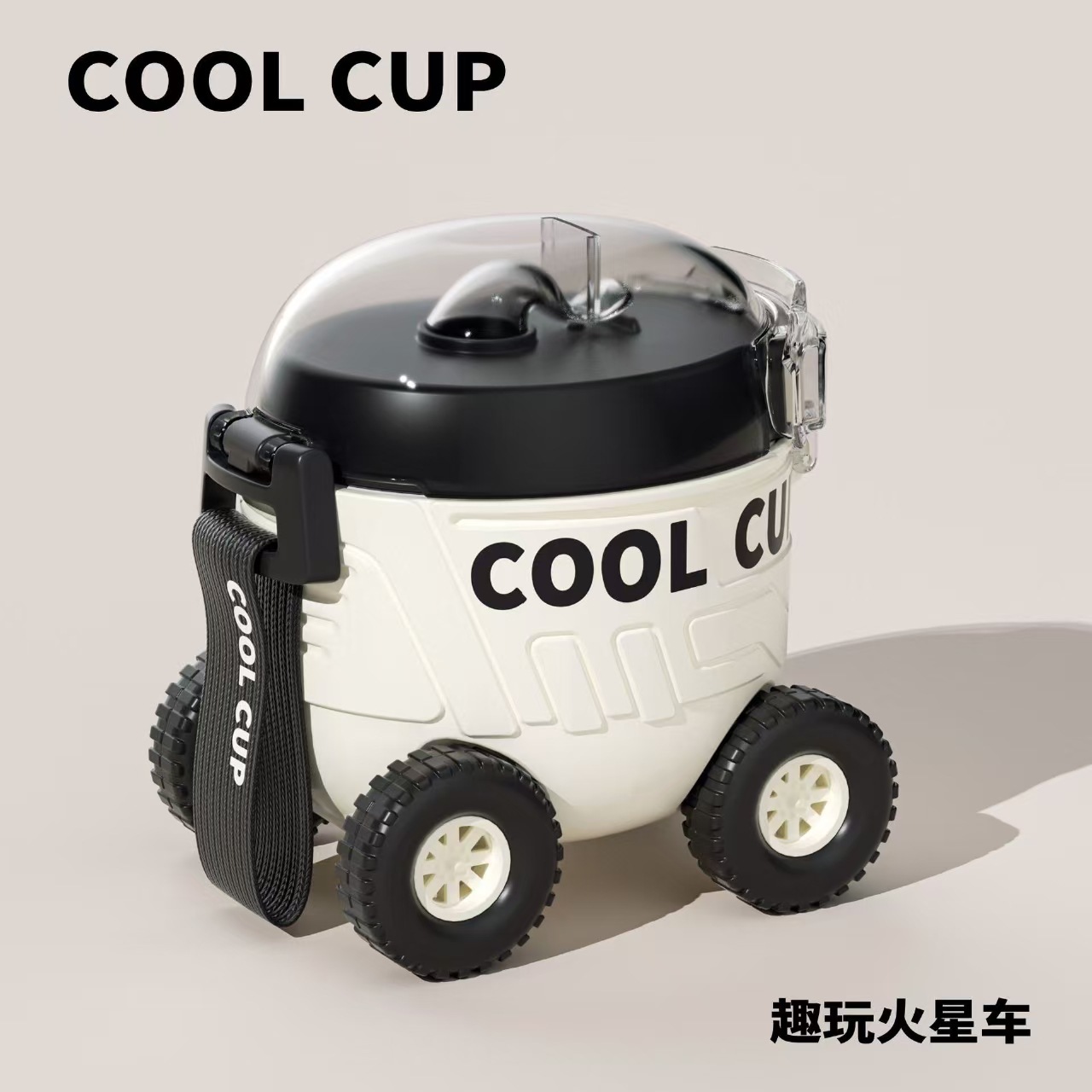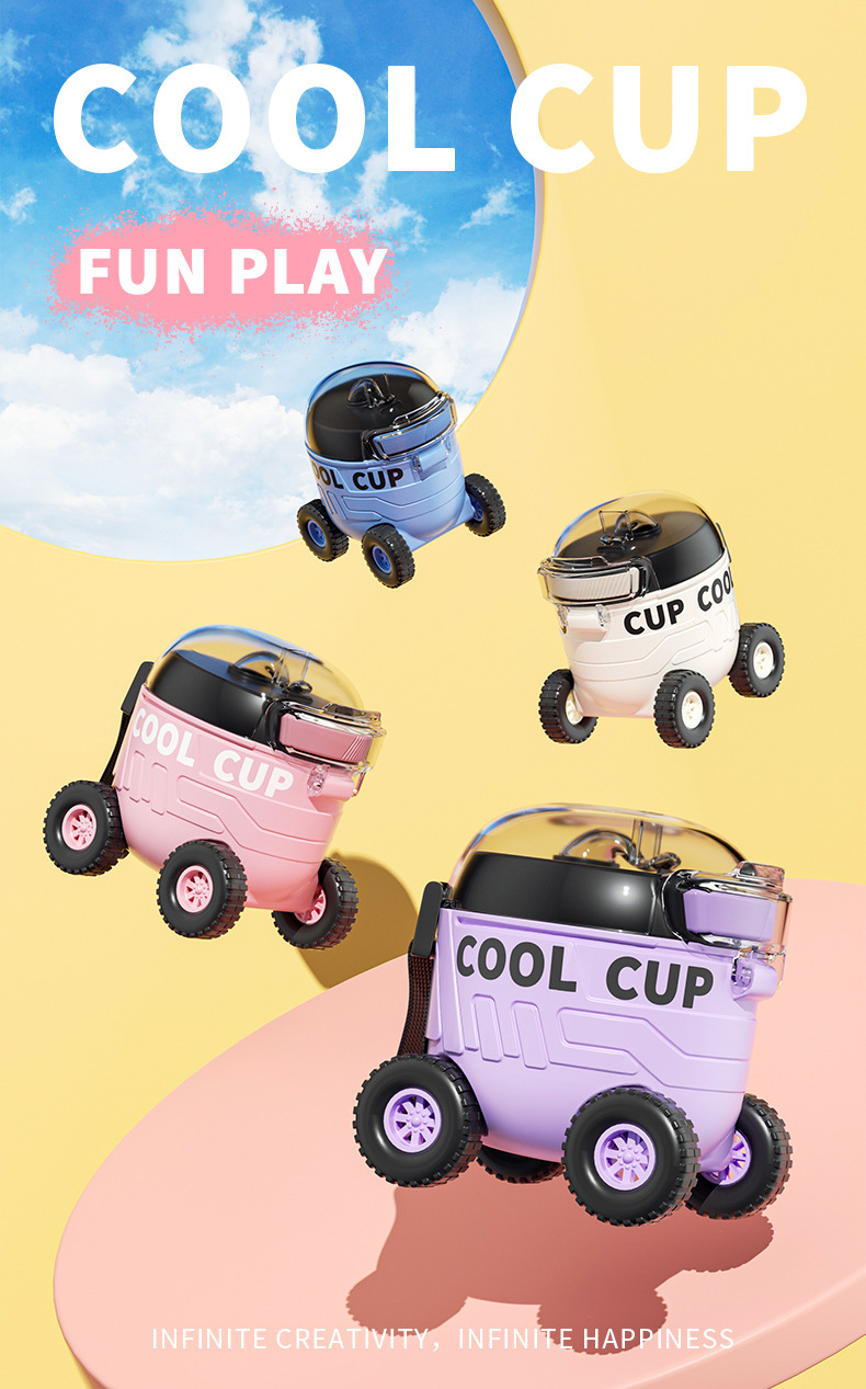 【卡通儿童趣味火星车塑料杯】户外便携弹跳塑料吸管水杯 边喝边玩 易便携水杯
