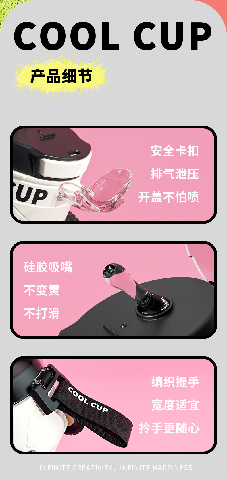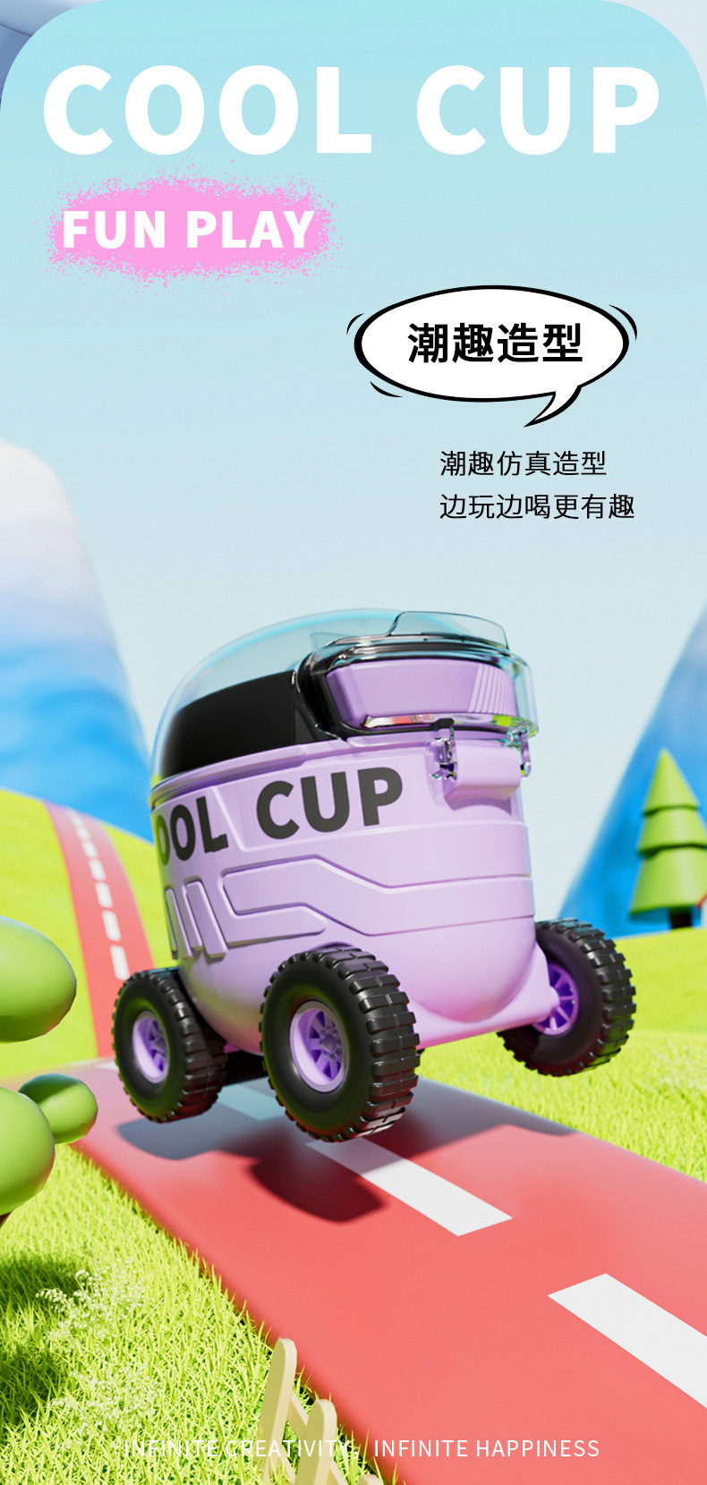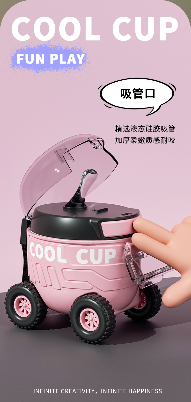 【卡通儿童趣味火星车塑料杯】户外便携弹跳塑料吸管水杯 边喝边玩 易便携水杯