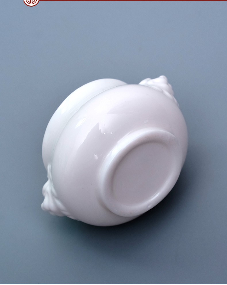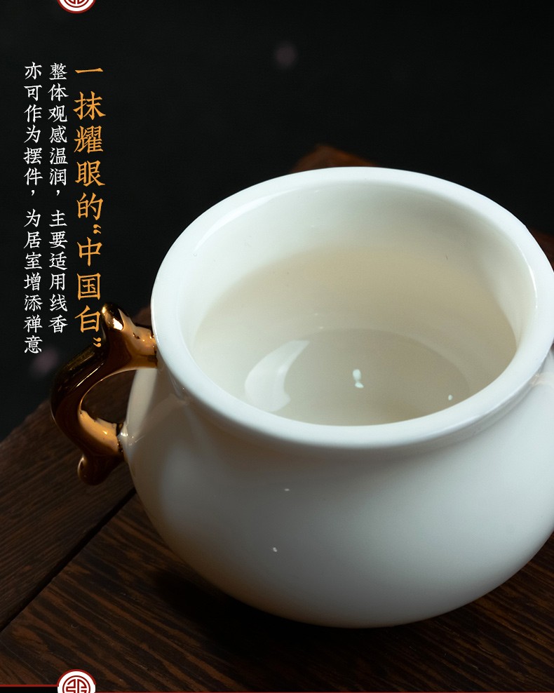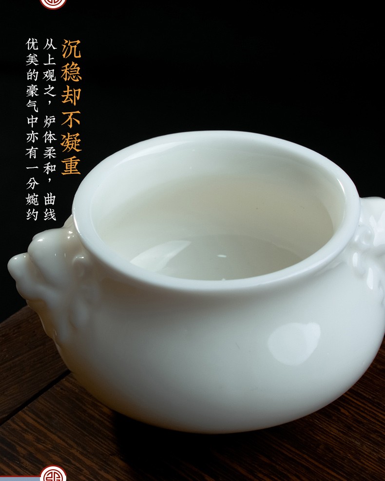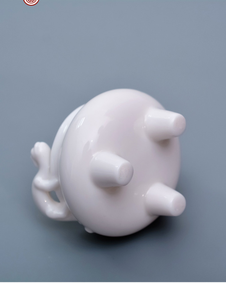 德化白瓷《三尾蛟龙线香炉》办公桌上的发财小炉 掌心炉