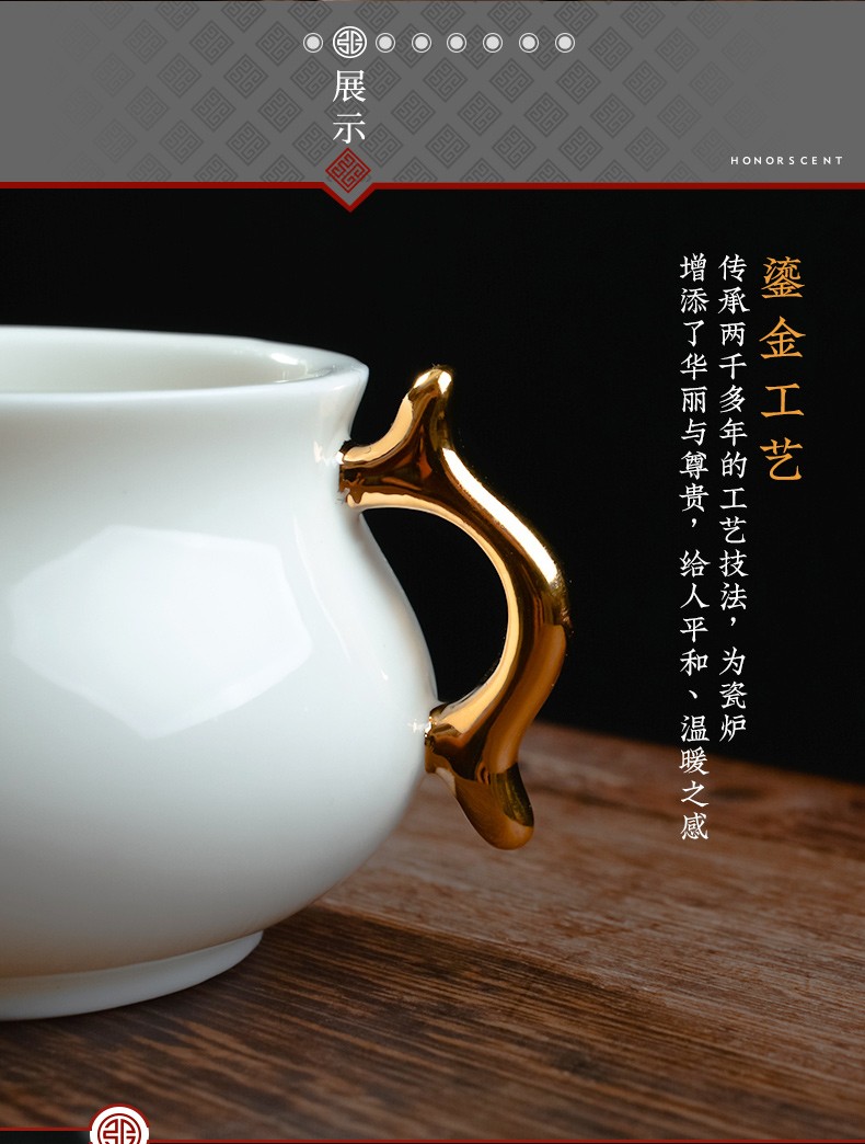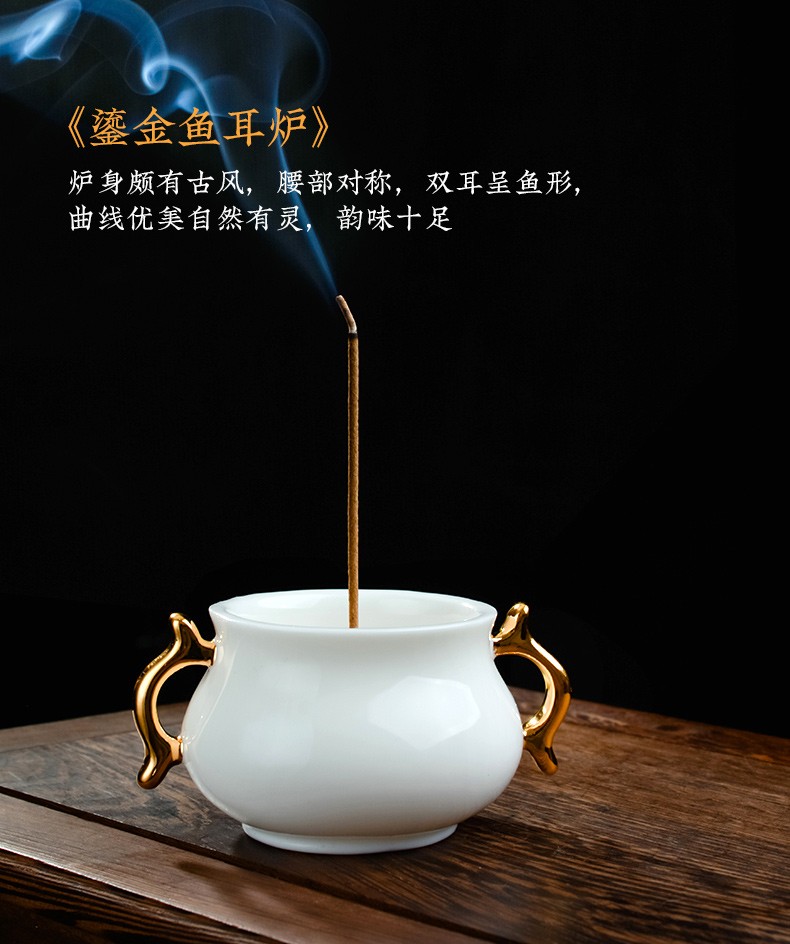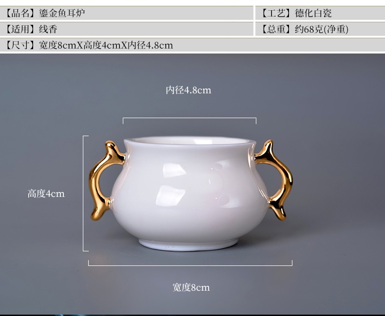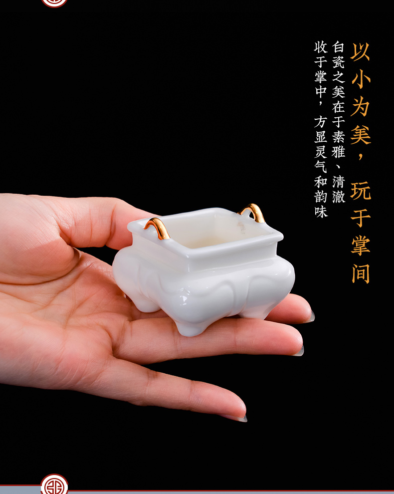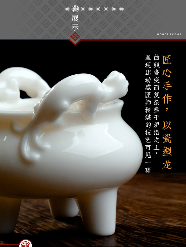 德化白瓷《三尾蛟龙线香炉》办公桌上的发财小炉 掌心炉