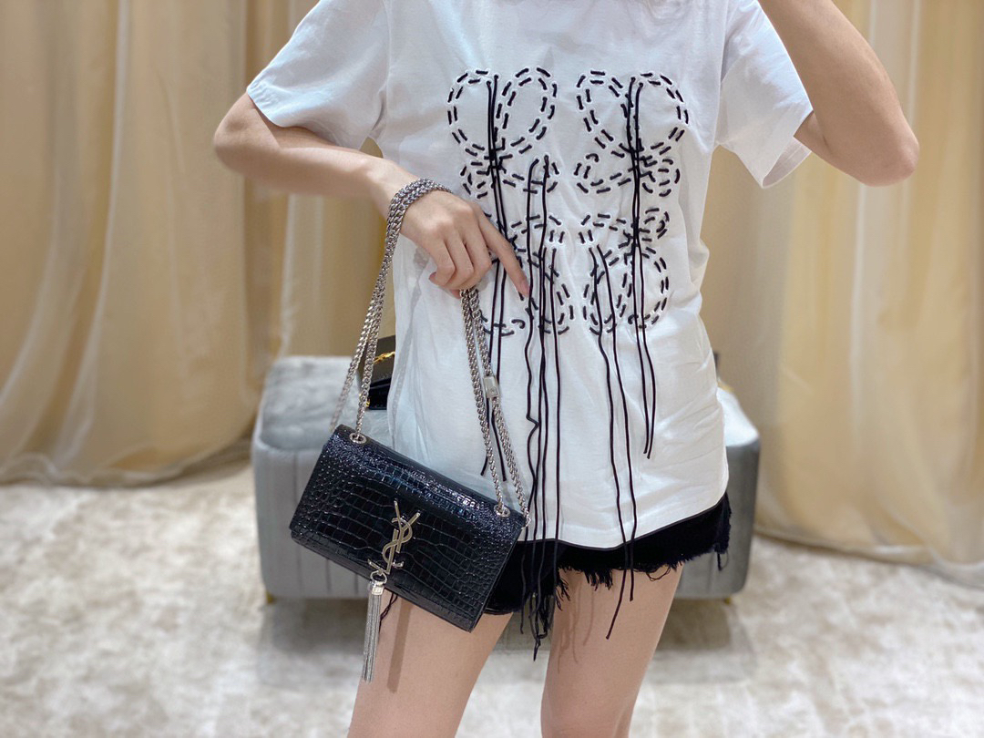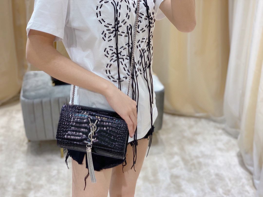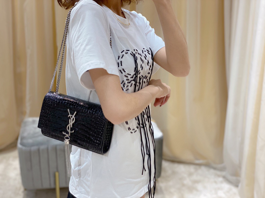 经典款KATE包黑色鳄鱼纹银扣(有流苏)