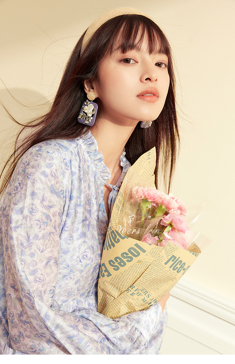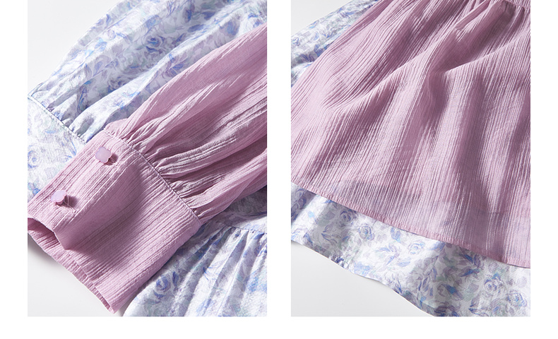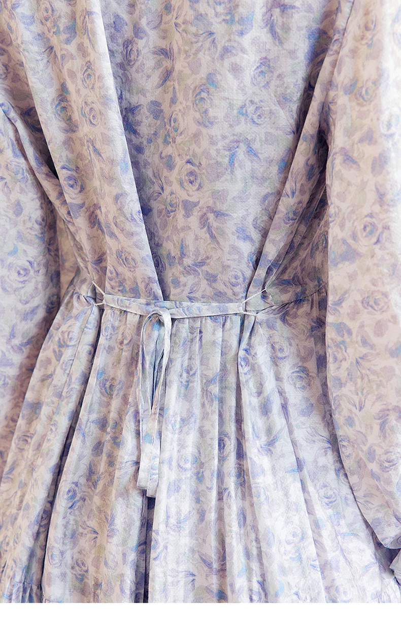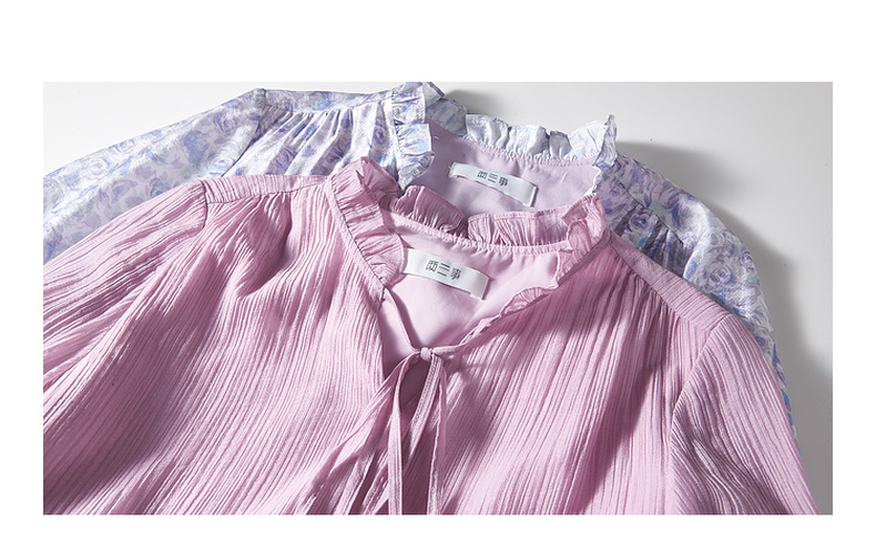 两三事 本真底色 2025春季新款文艺风印花绑带v领衬衫女宽松