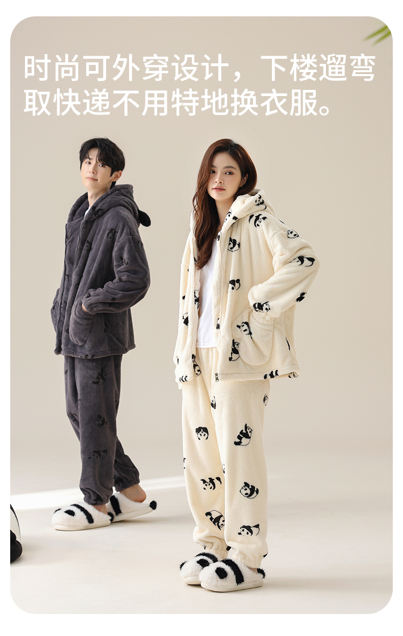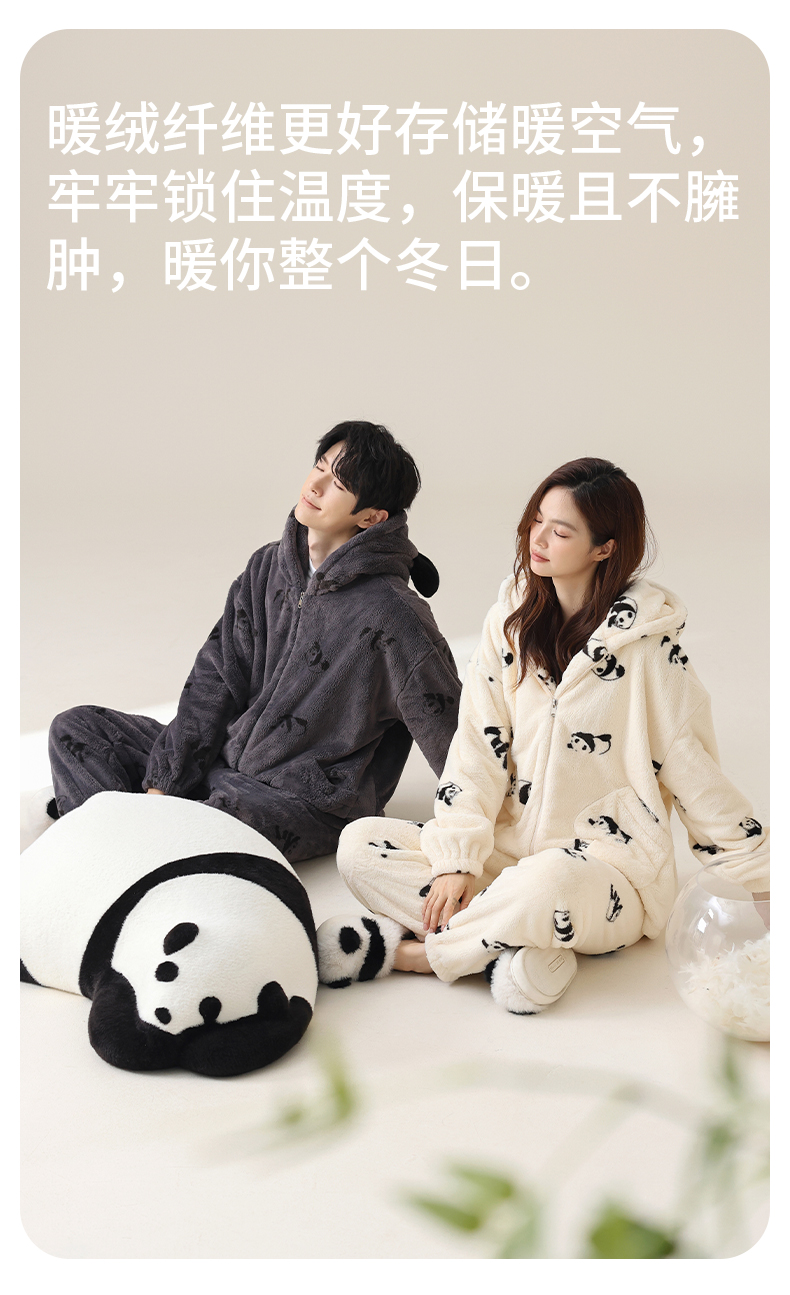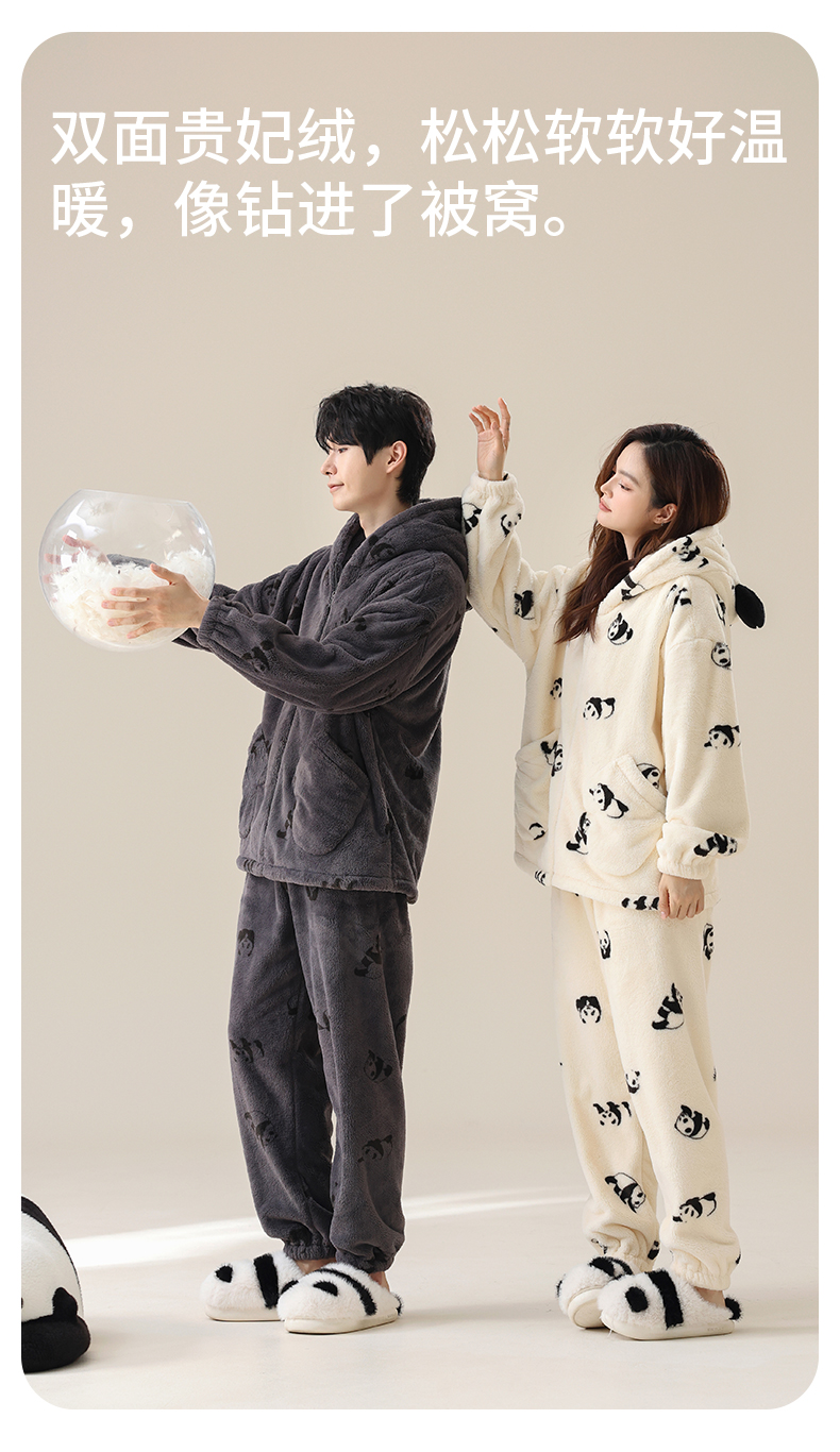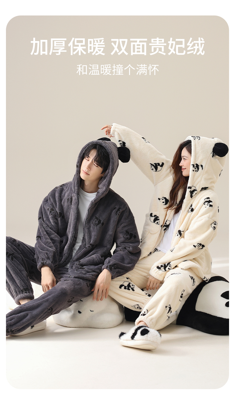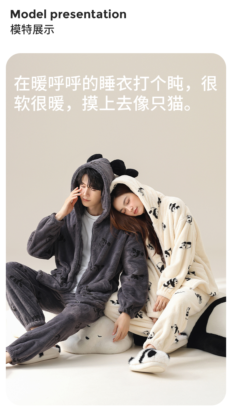 【暖暖贵妃绒】自然醒「呢喃甜梦」情侣睡衣秋冬新款开衫长袖男女加厚贵妃软绒可外穿家居服套装JLM