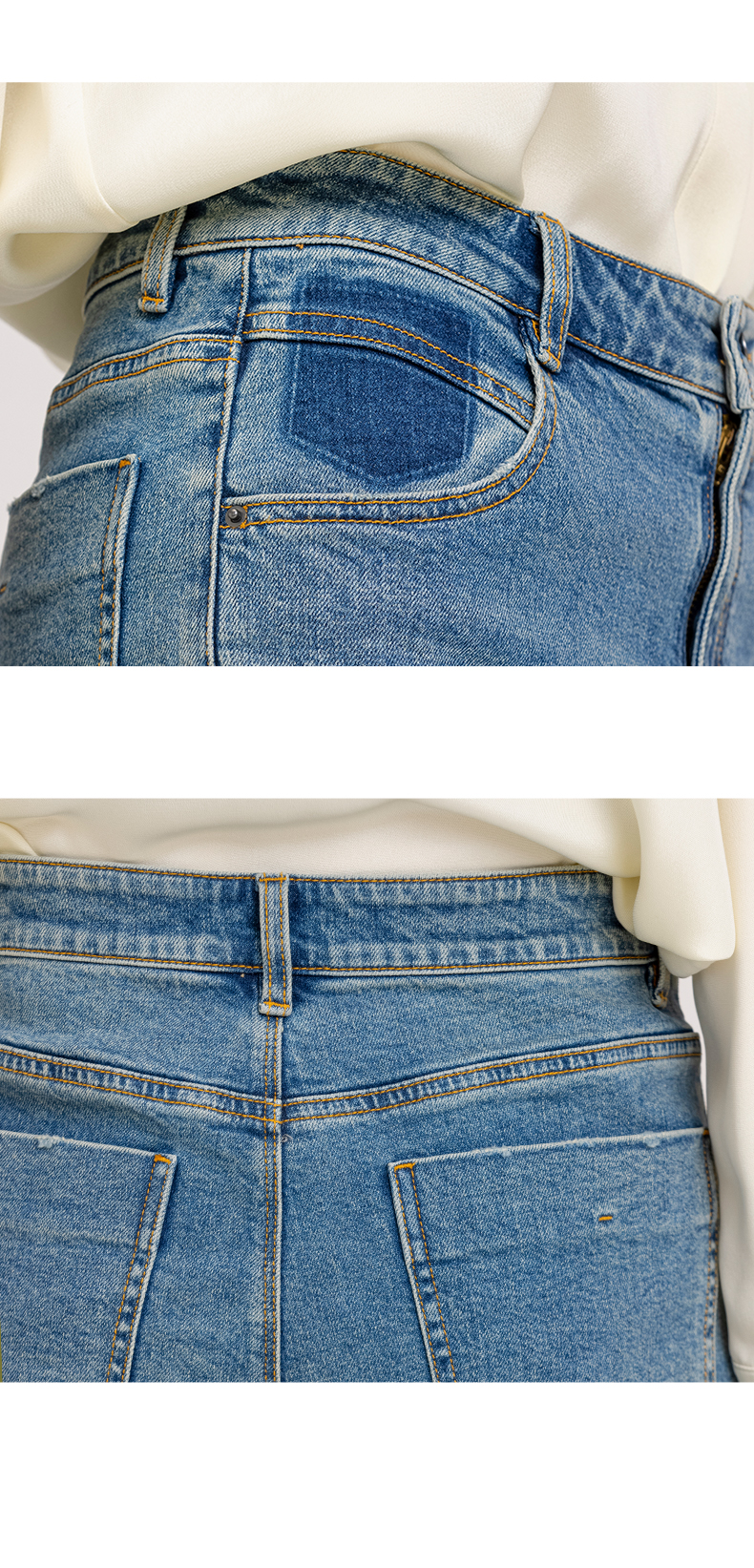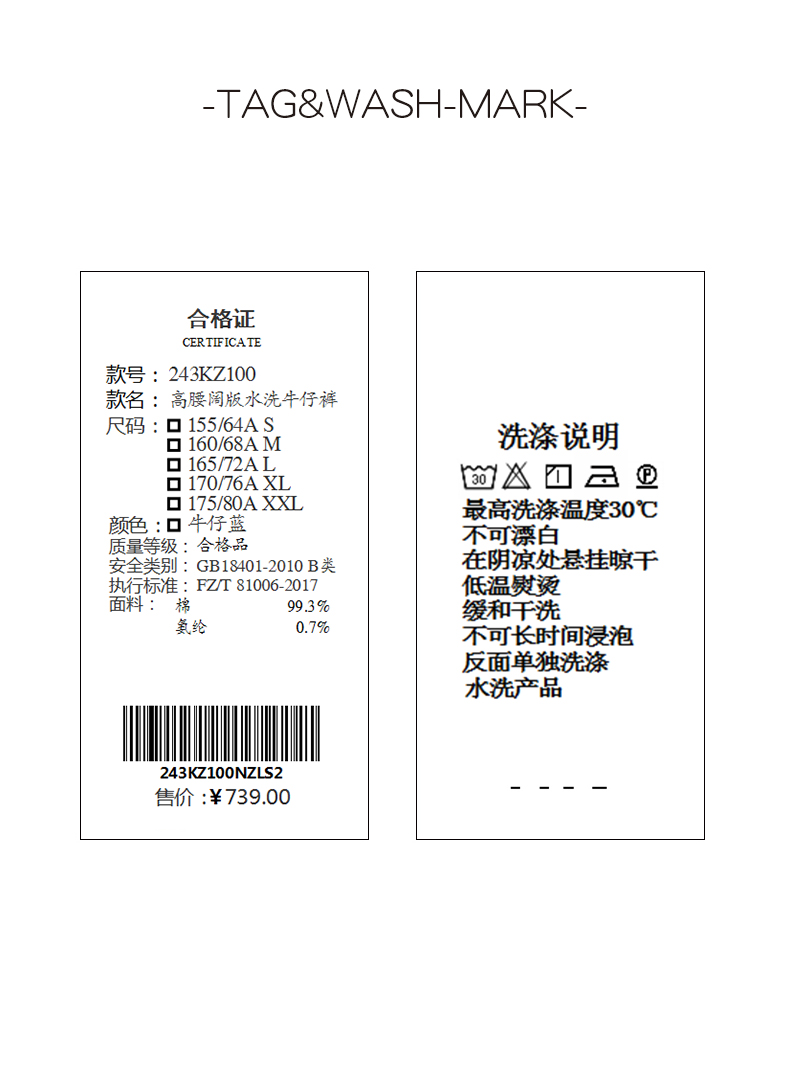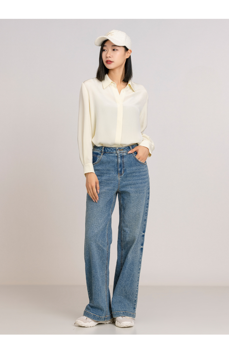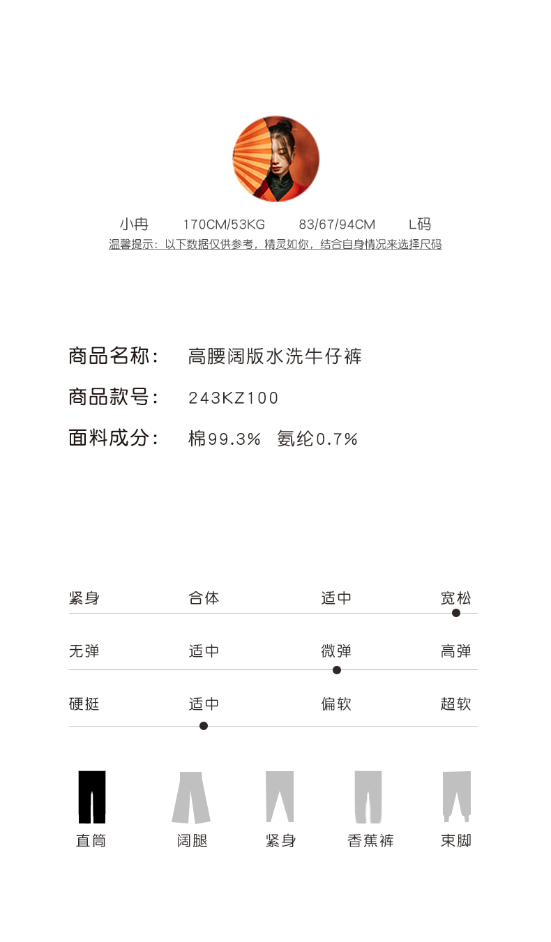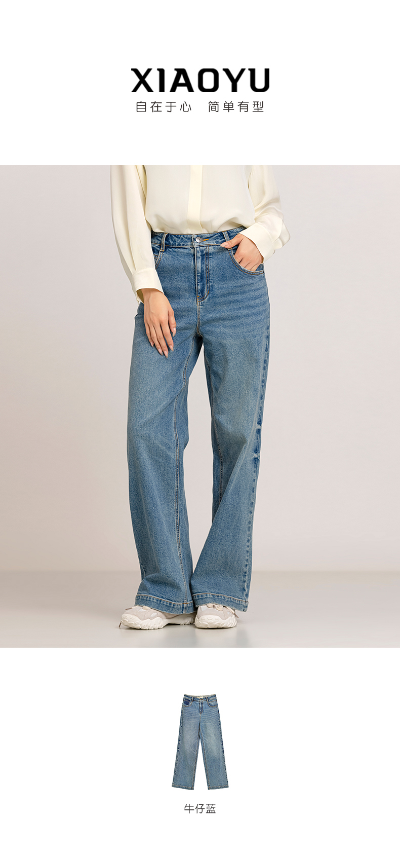 XIAOYU|高腰阔版水洗牛仔裤243KZ100