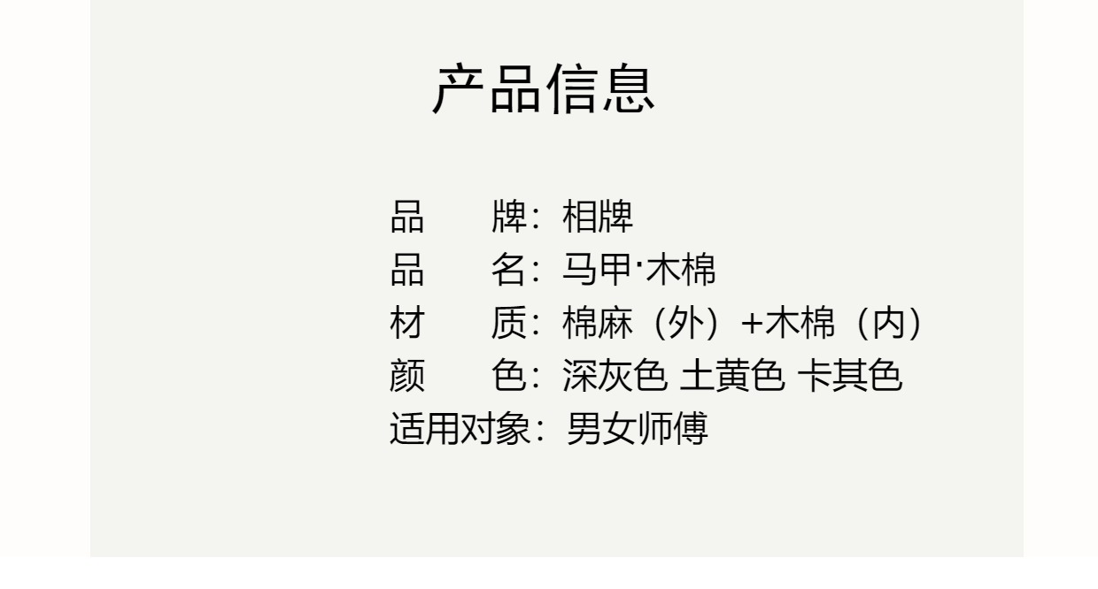 【相牌】秋冬盘扣 木棉马甲 外棉麻内木棉 秋冬款保暖 三宝领