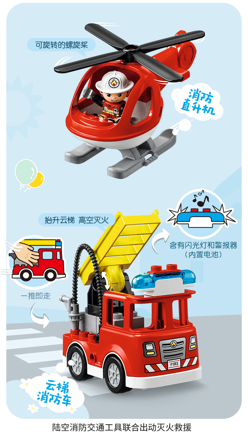 乐高积木 L10970得宝系列消防局与消防直升机