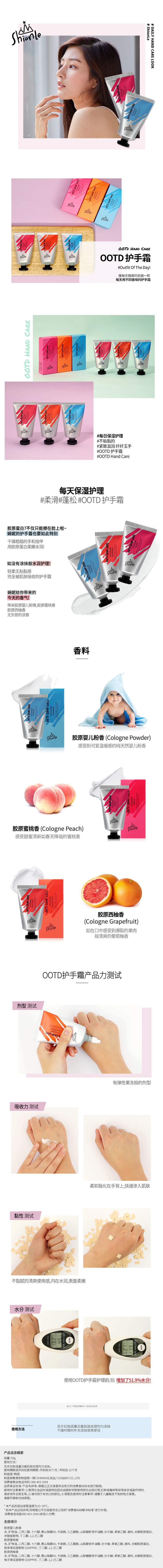 Shionle娴妮 OODT胶原护手霜50g*3支 保湿滋润补水 稻香/蜜桃/西柚 韩国