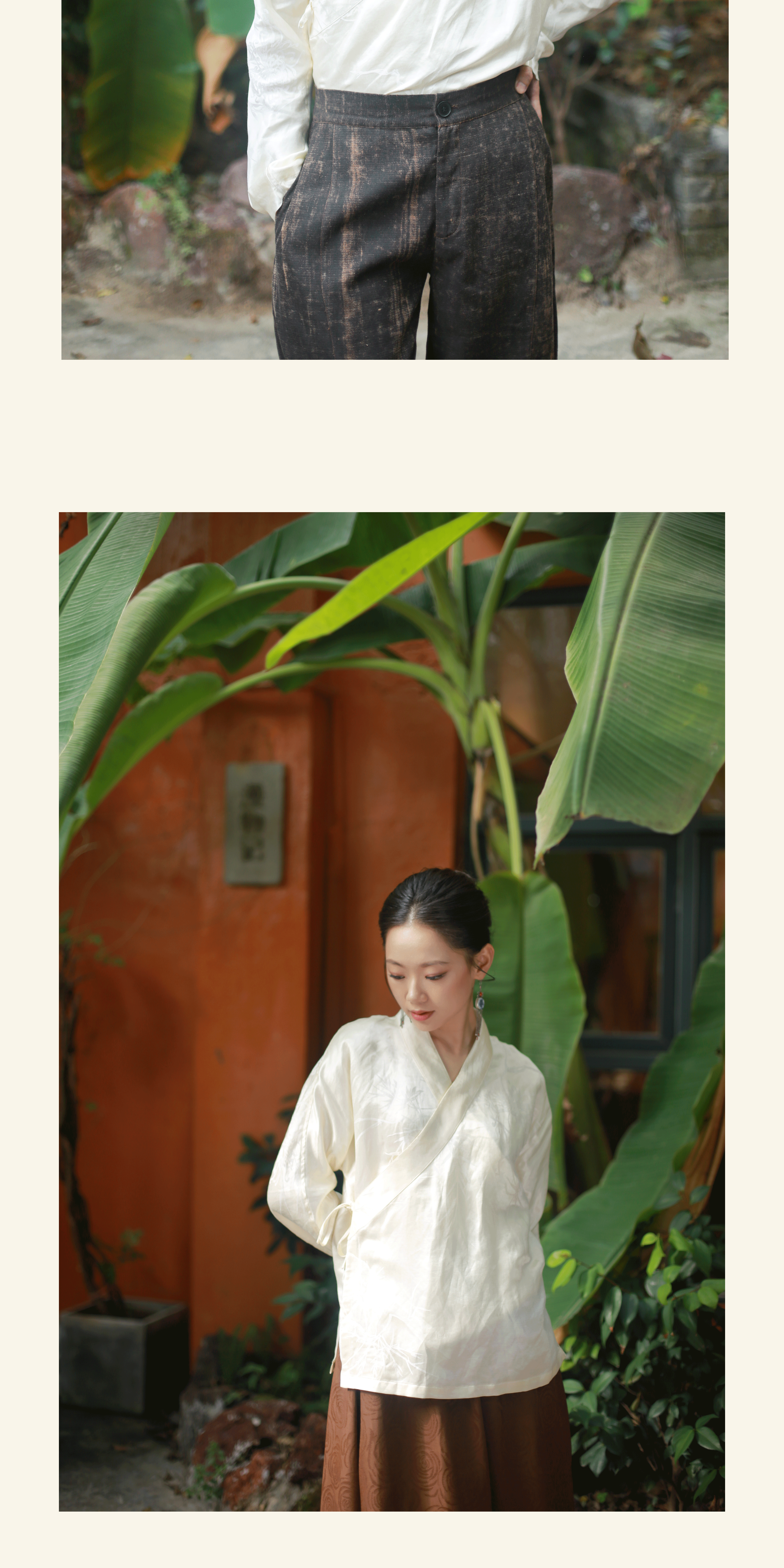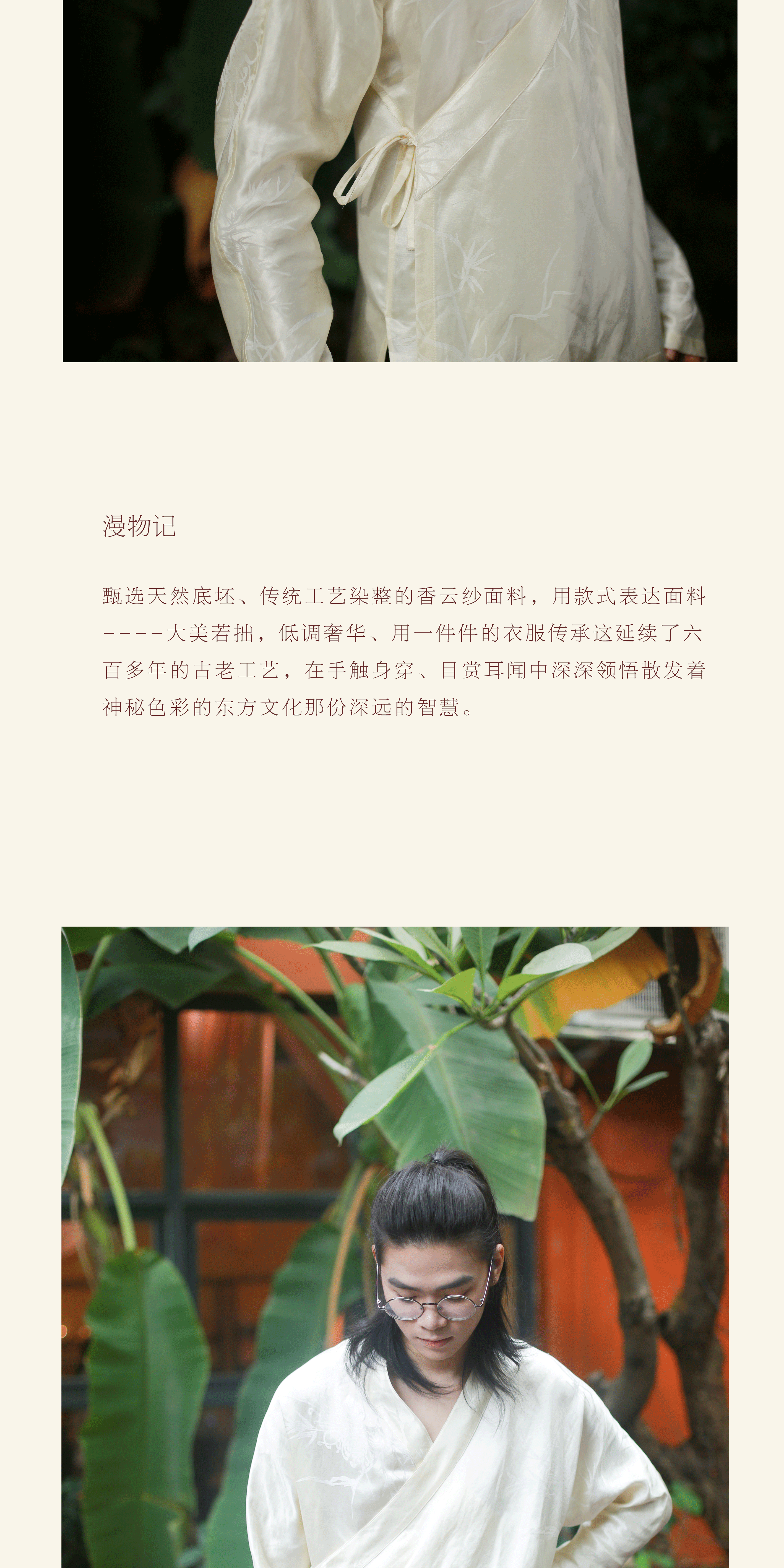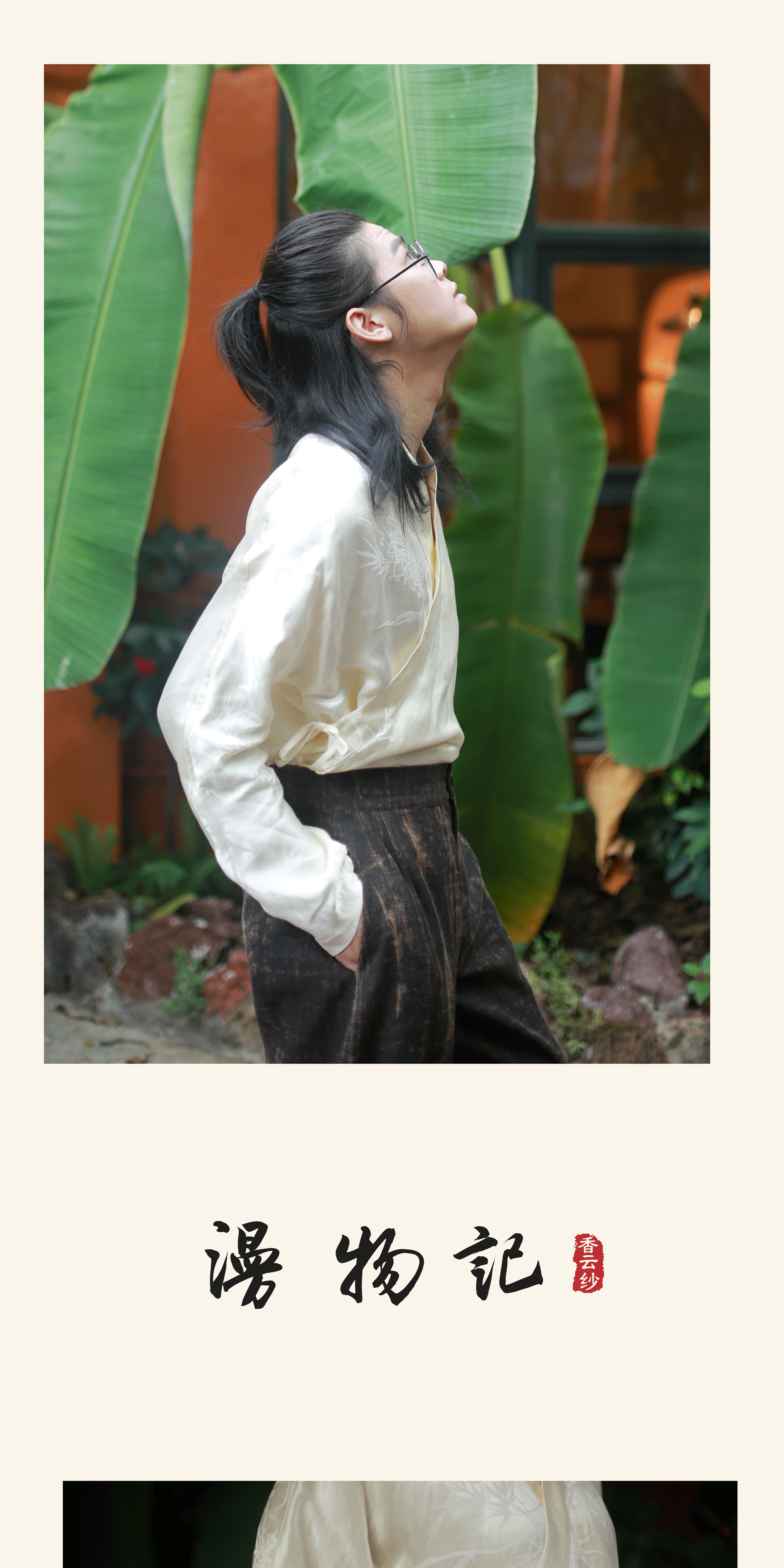 漫物记平板香云纱圆领系带棉上衣xys-318