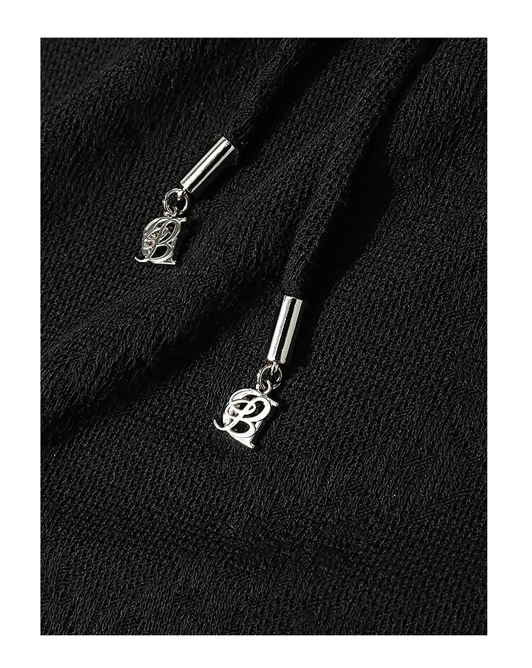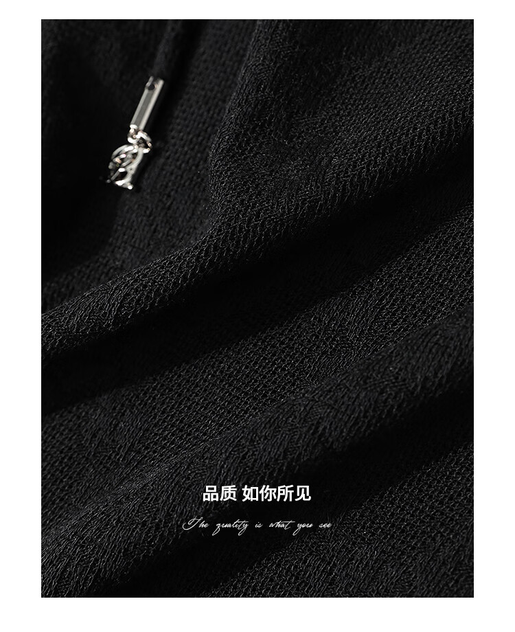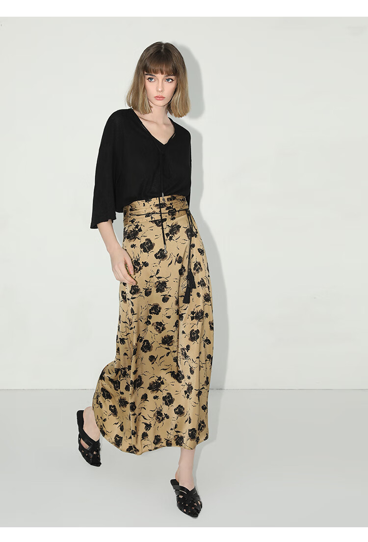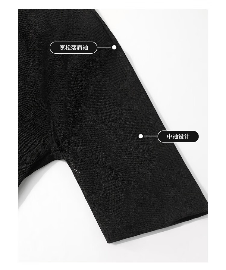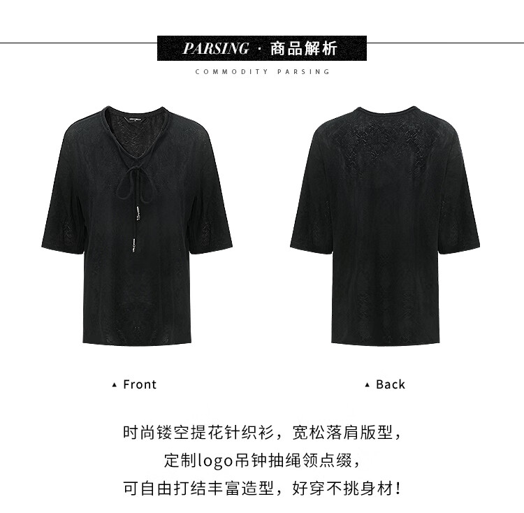 COCOBELLA镂空提花V领系带五分袖针织衫宽松蝙蝠袖上衣TS3002
