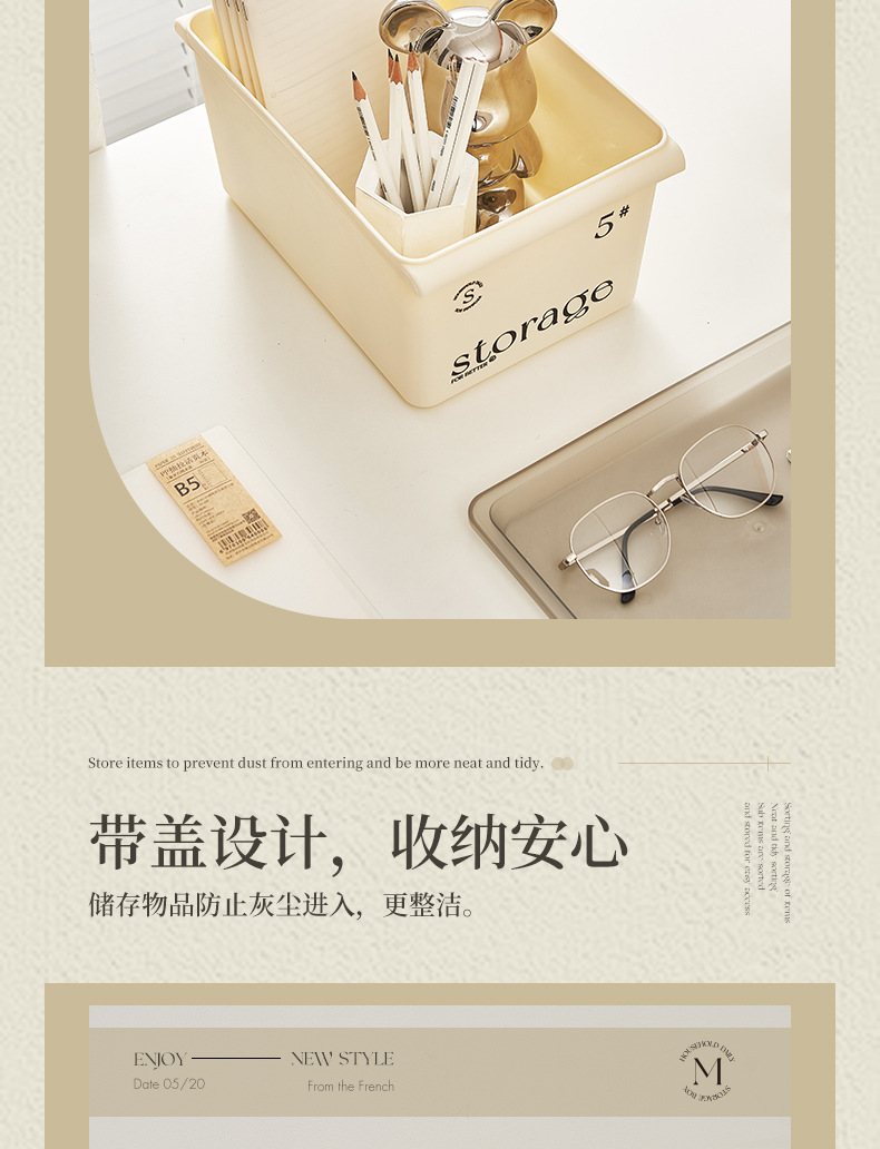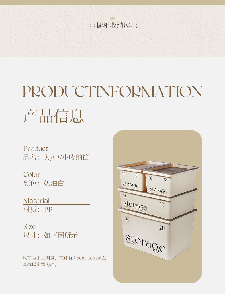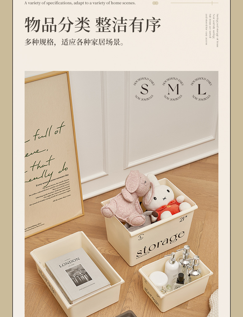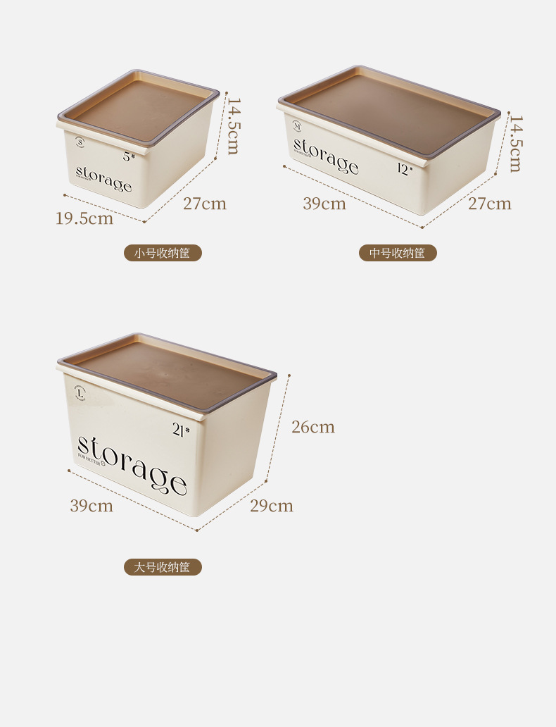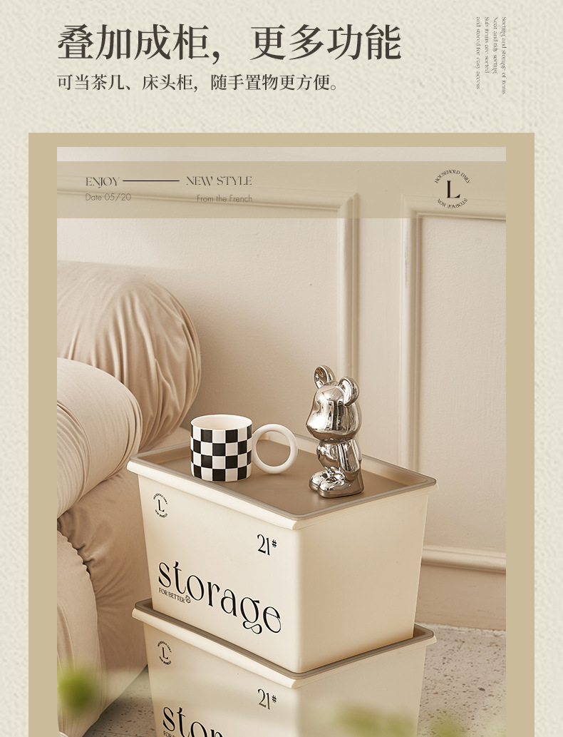 「ins奶油风!三款尺寸」奶油风收纳盒可叠加玩具零食整理筐衣服衣物收纳箱桌面储物盒带盖