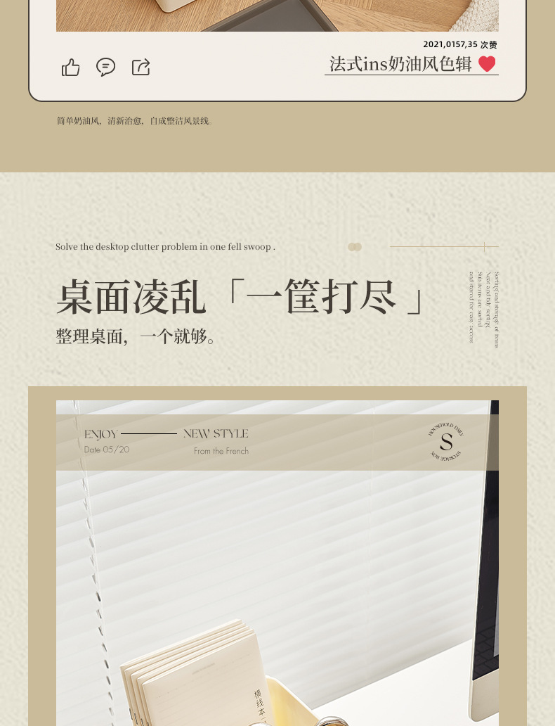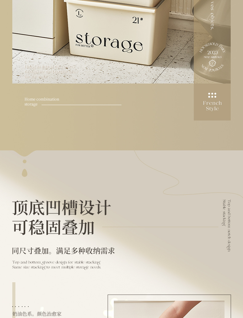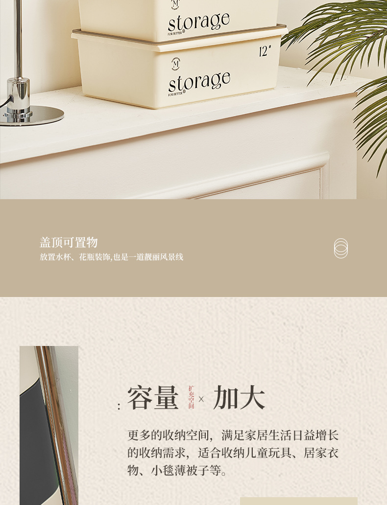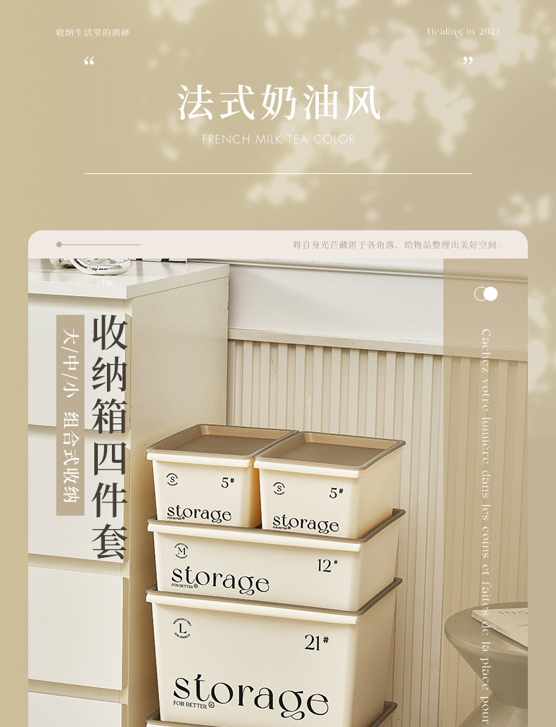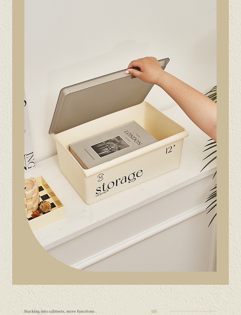 「ins奶油风!三款尺寸」奶油风收纳盒可叠加玩具零食整理筐衣服衣物收纳箱桌面储物盒带盖