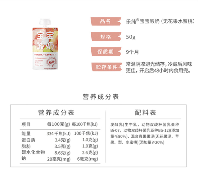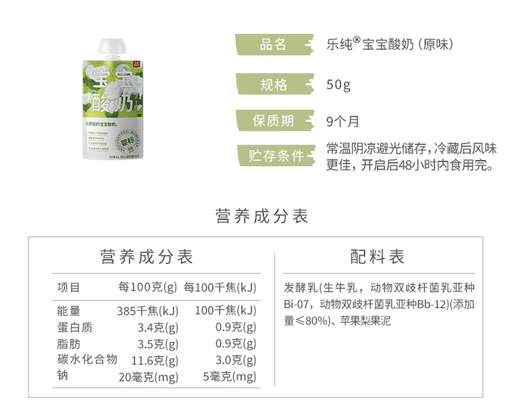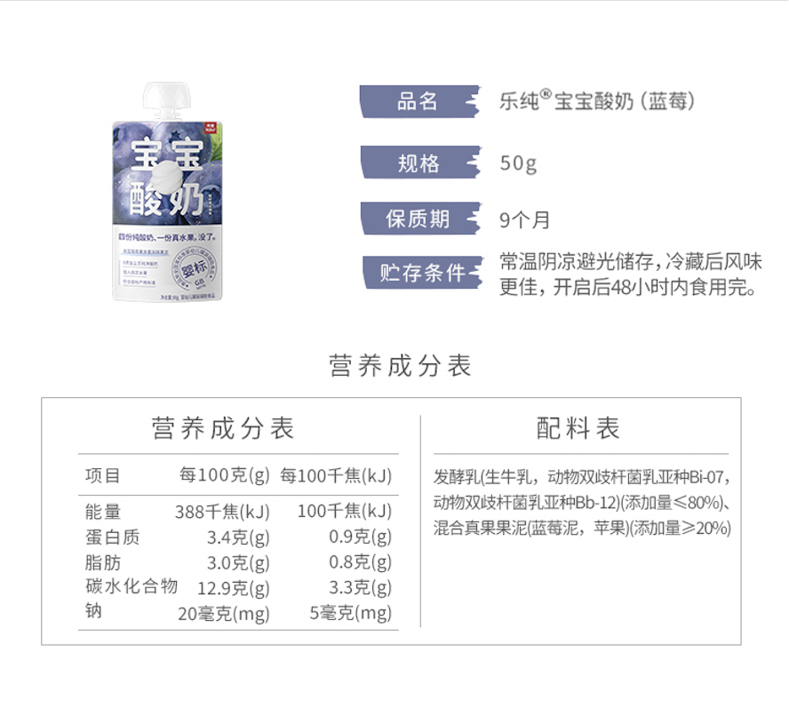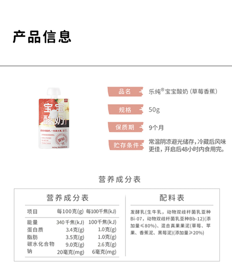 乐纯水果儿童酸奶常温果泥宝宝酸奶水果多口味50g