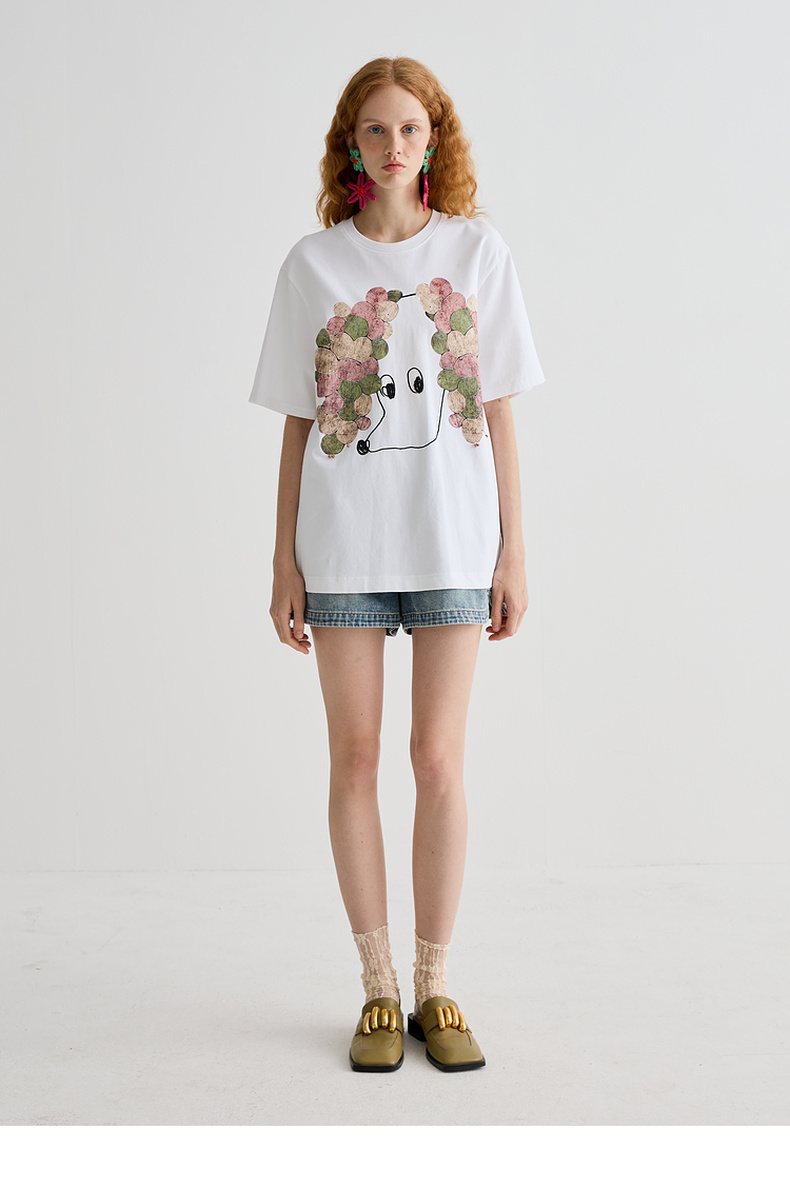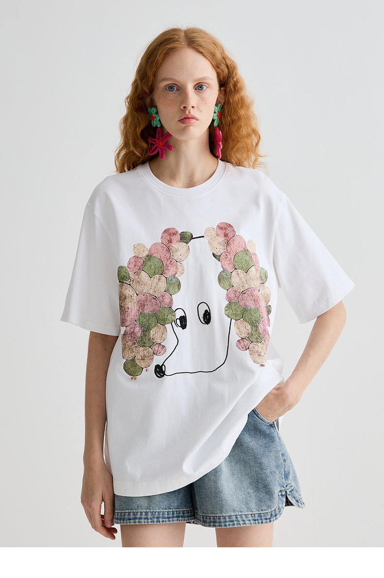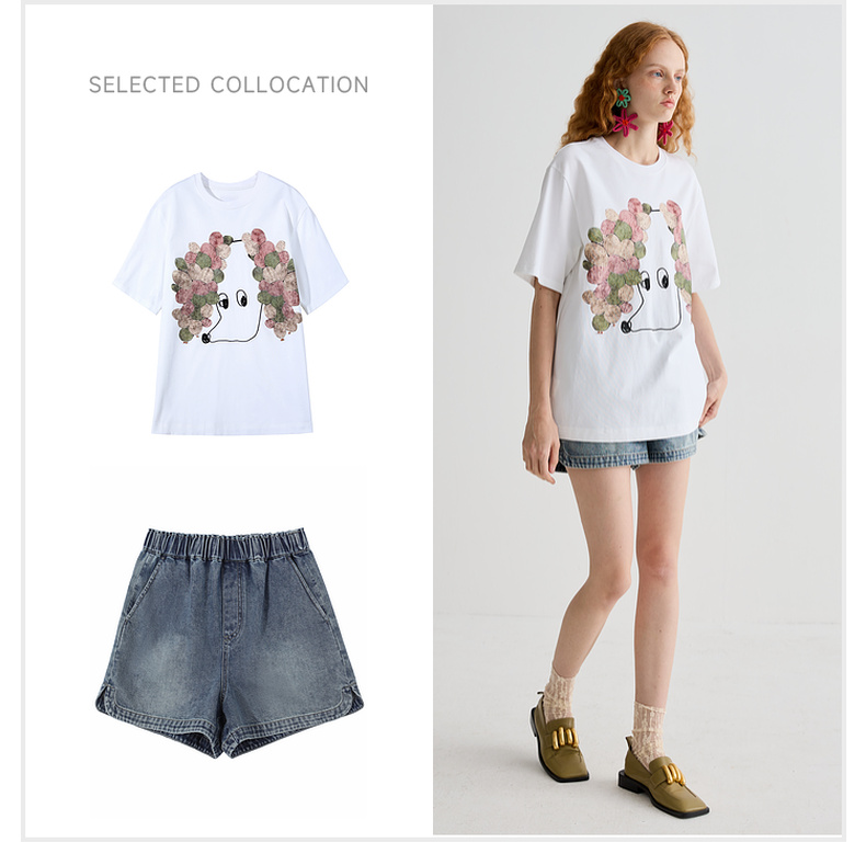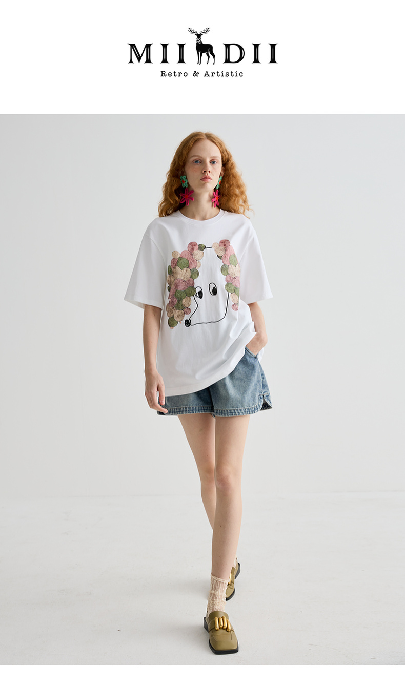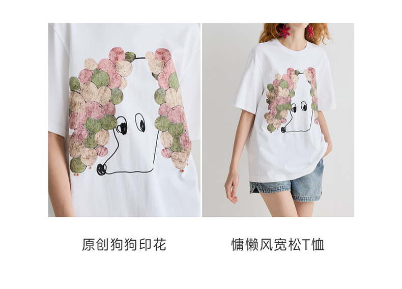 谜底T恤短袖女2025夏新品休闲日常印花宽松H型中长上衣252MT0623
