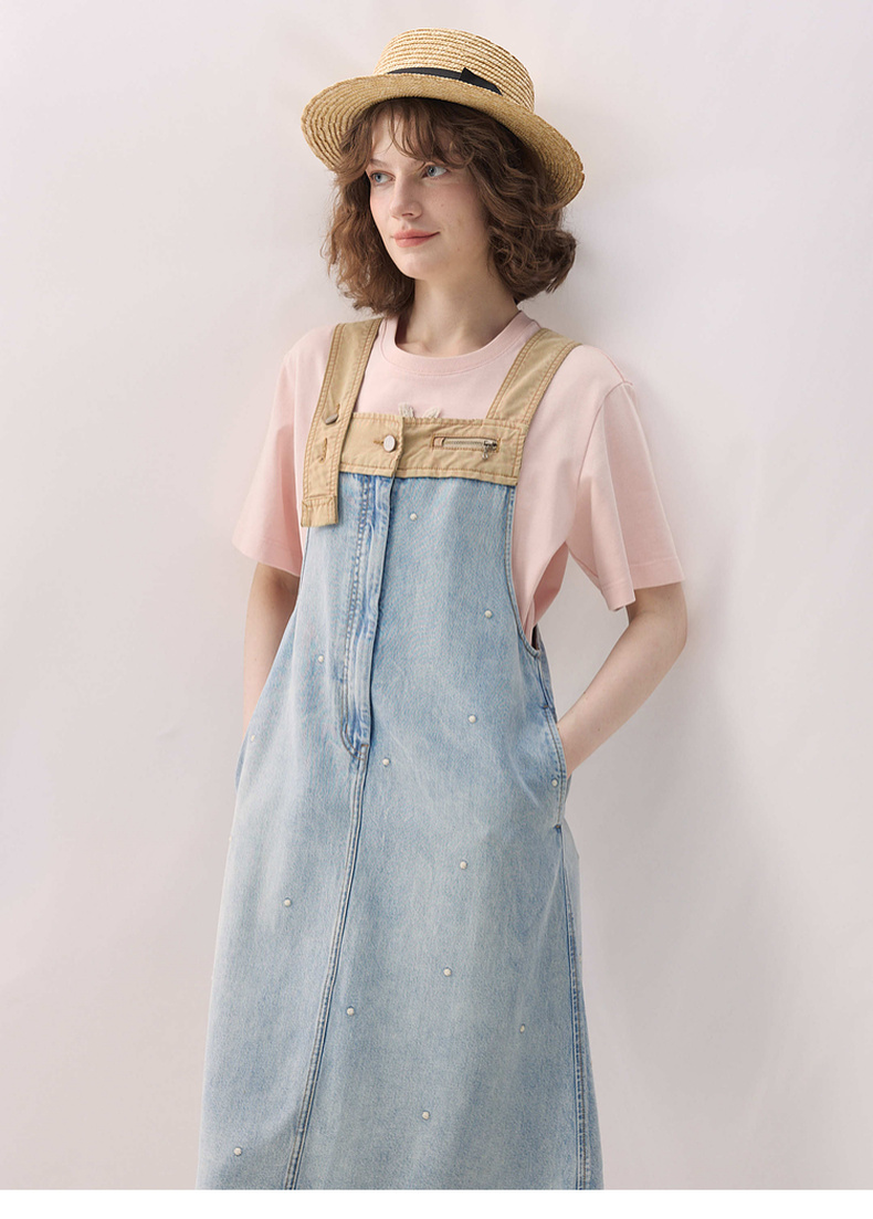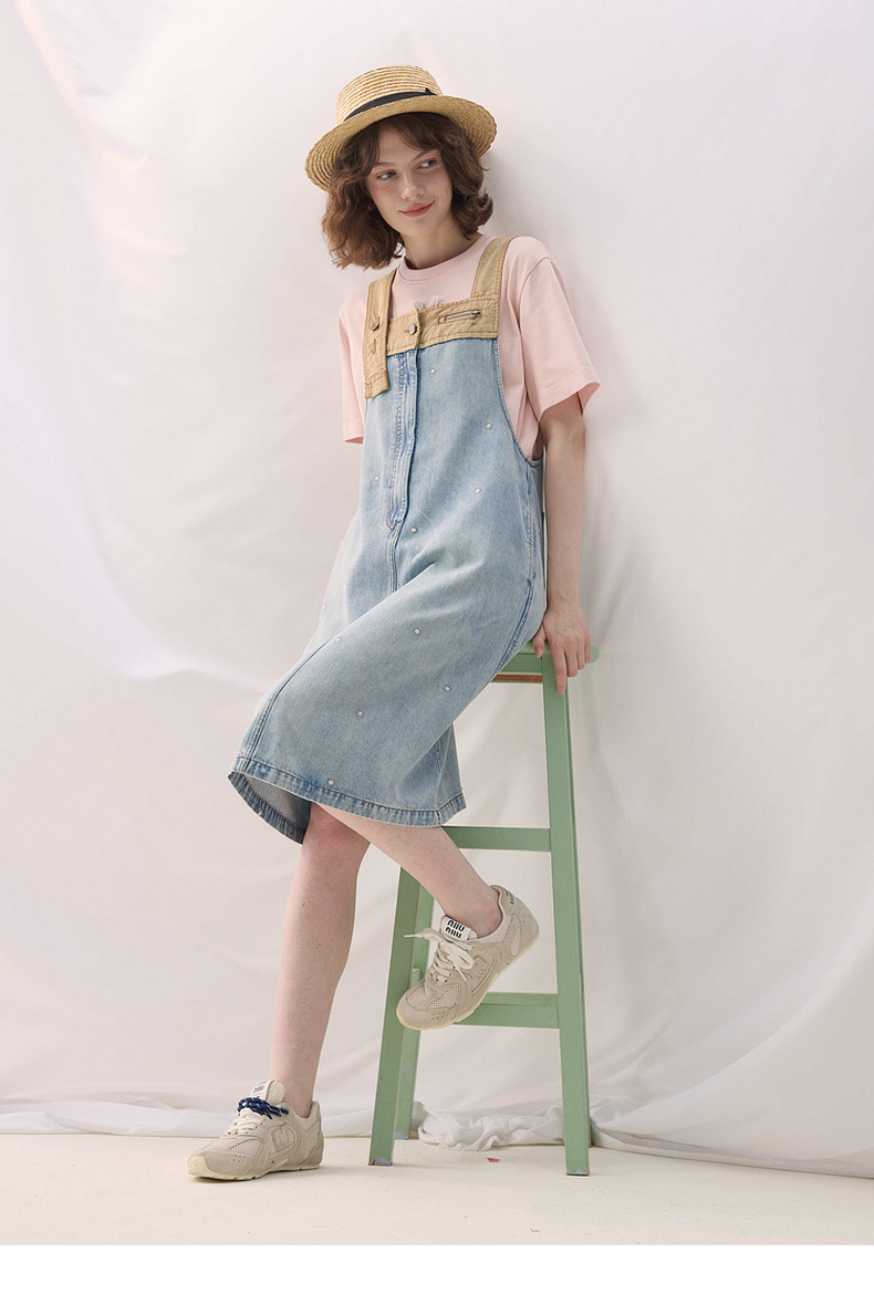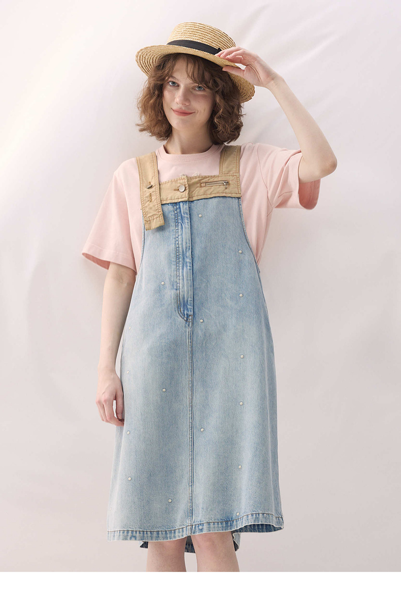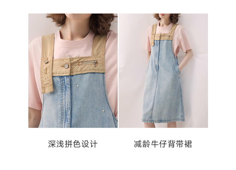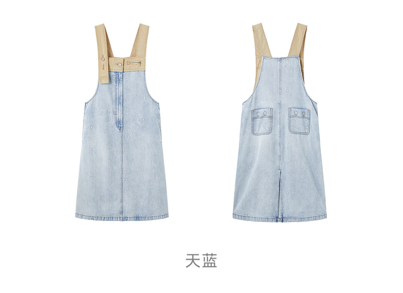 谜底牛仔连衣裙无袖2026春季新品拼色浅蓝洗水背带裙女261ML0052