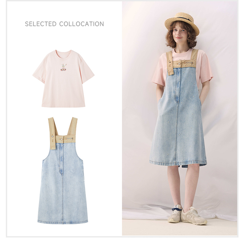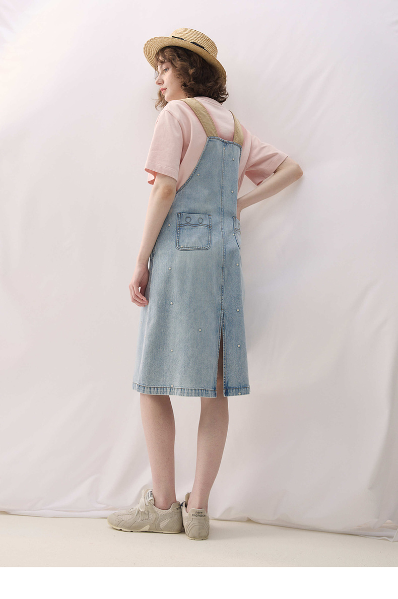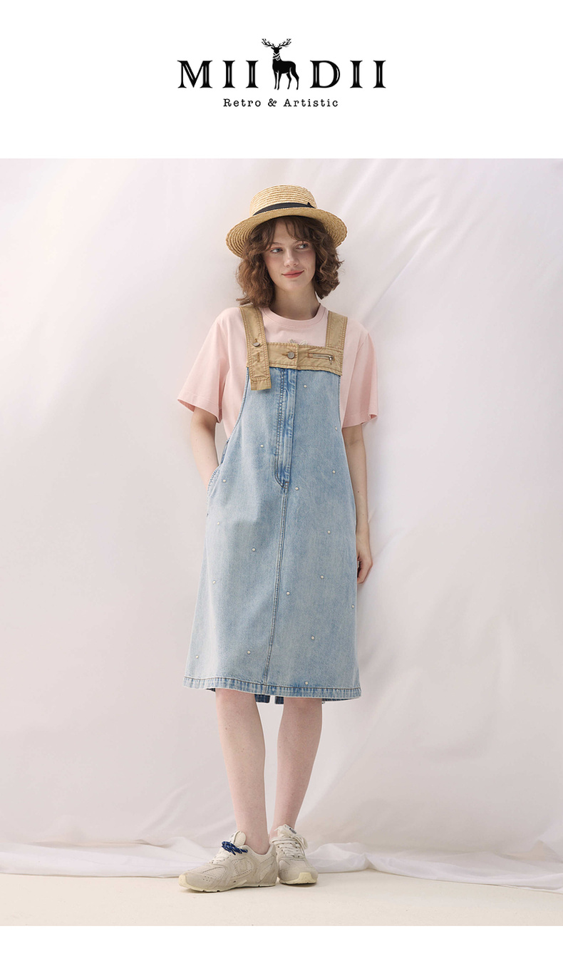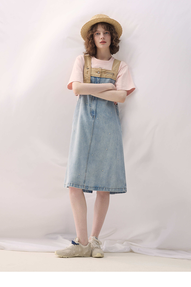 谜底牛仔连衣裙无袖2026春季新品拼色浅蓝洗水背带裙女261ML0052