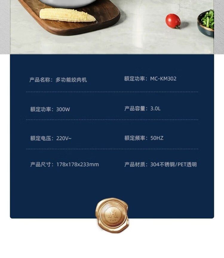 【小家电】迈卡罗MC-KM302绞肉机家用电动多功能料理搅拌打肉机不锈钢HF