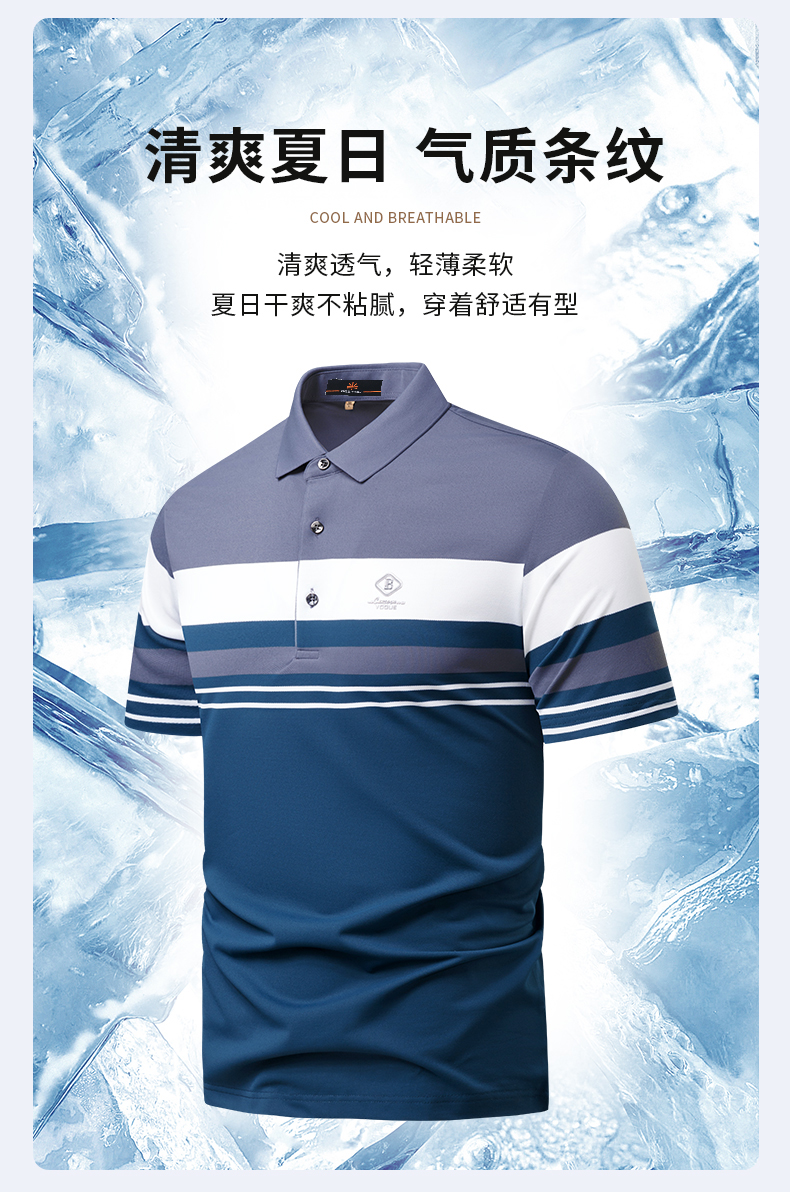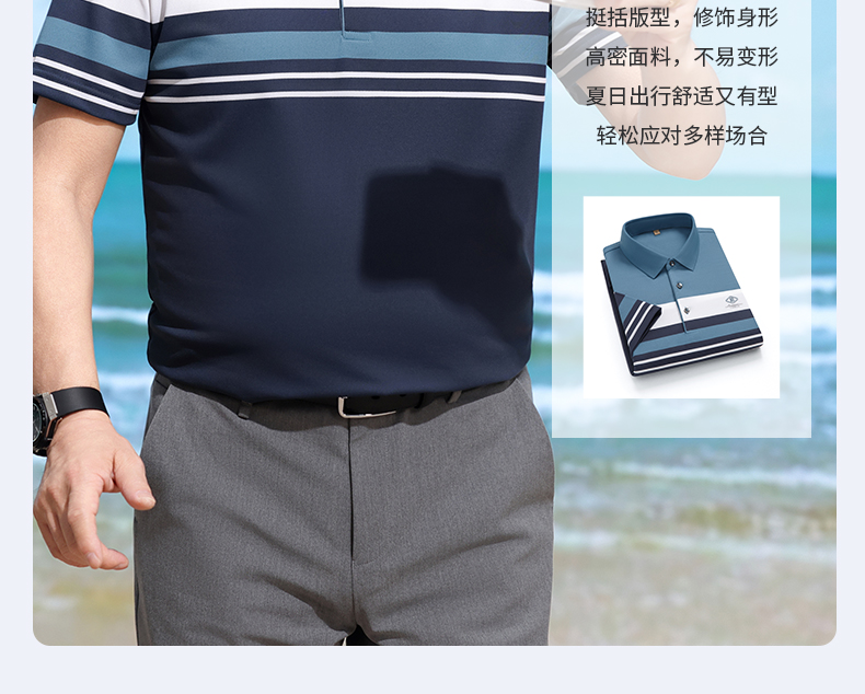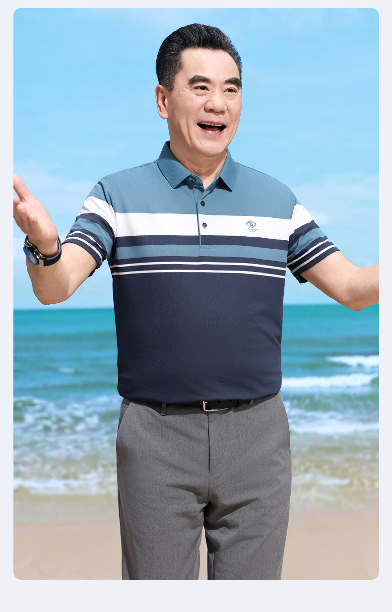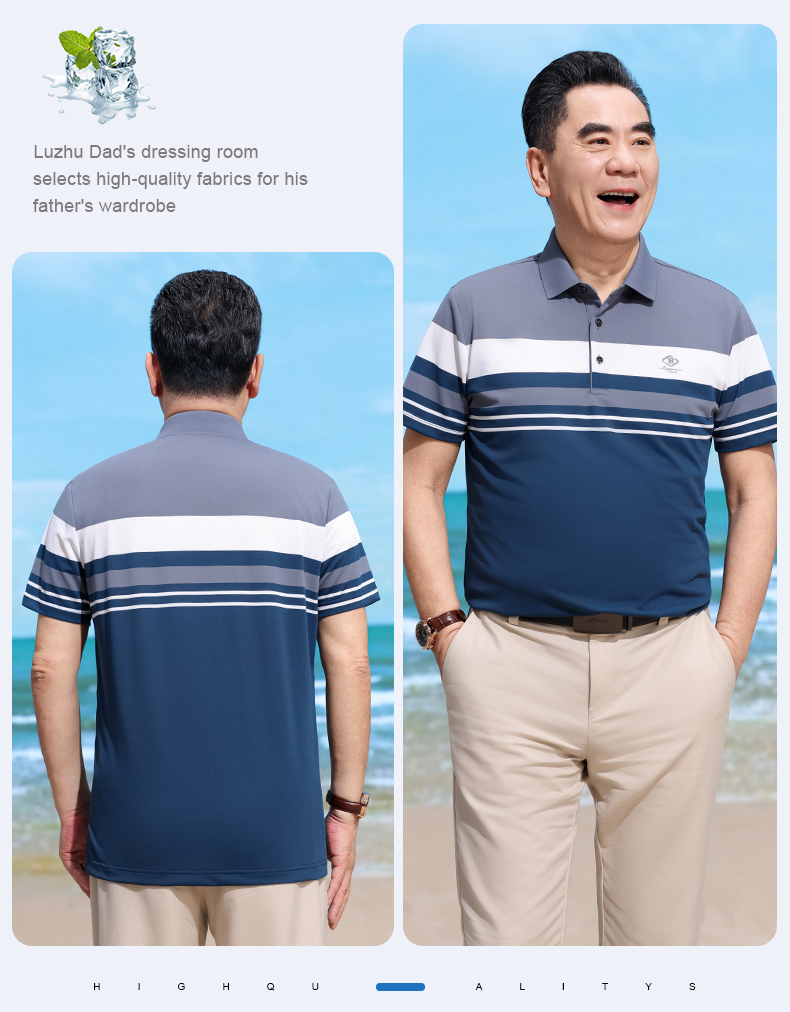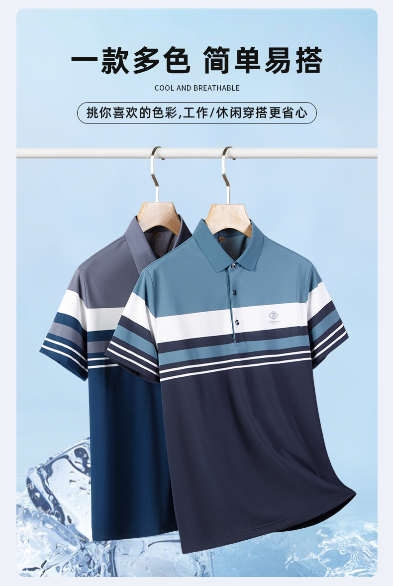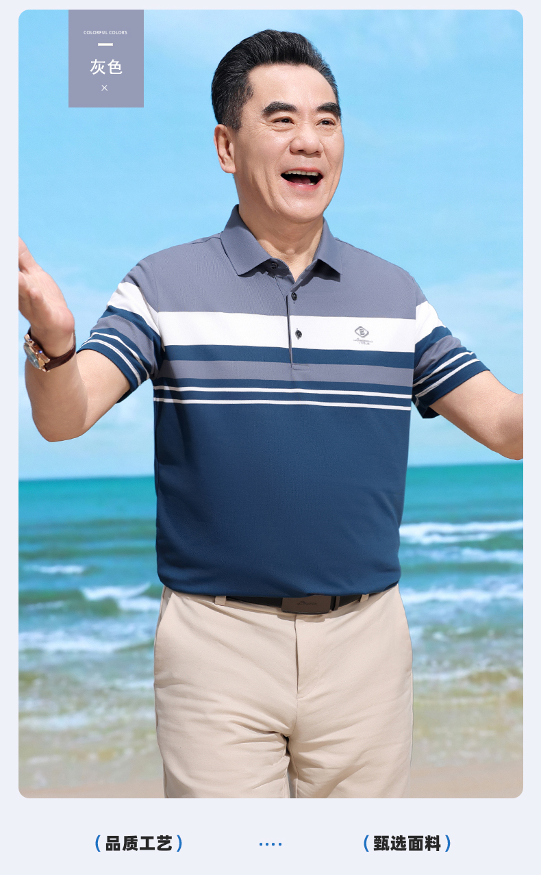 半身缘男装 夏季半袖拼色间条纹爸爸装宽松短袖POLO衫252312M03912188
