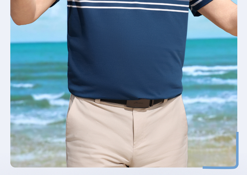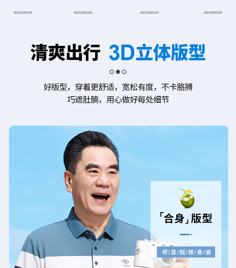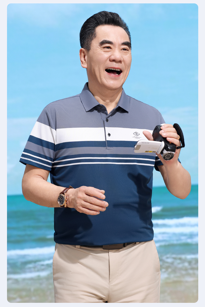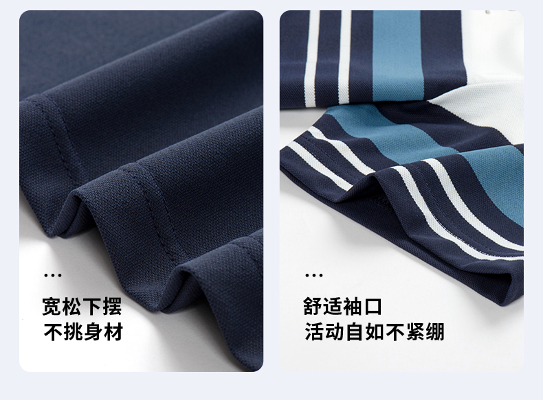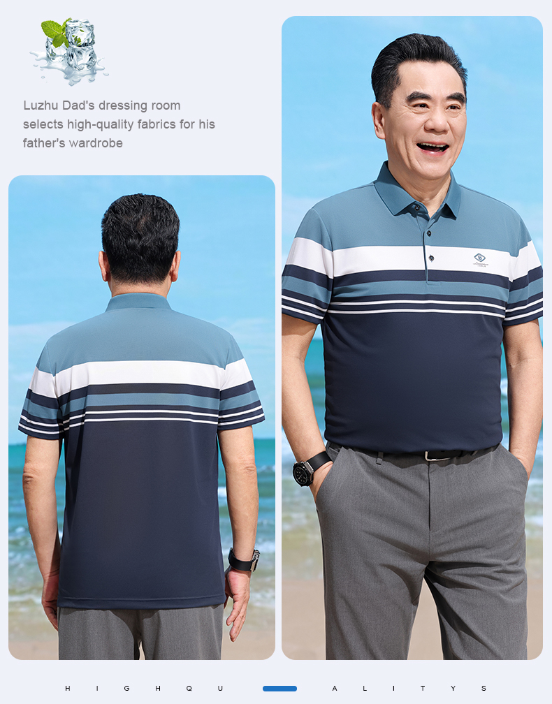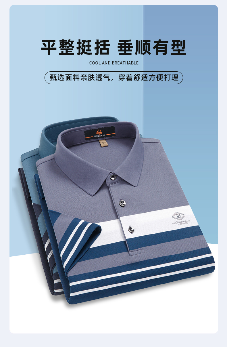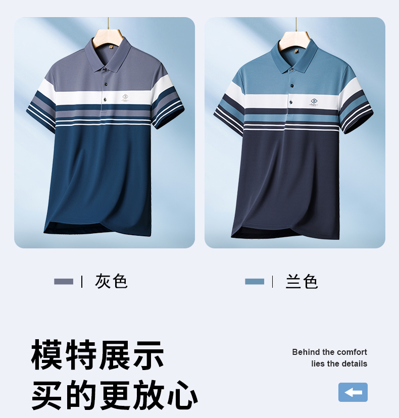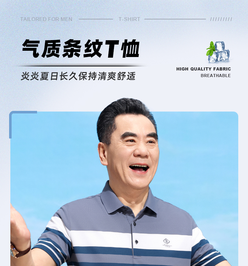 半身缘男装 夏季半袖拼色间条纹爸爸装宽松短袖POLO衫252312M03912188