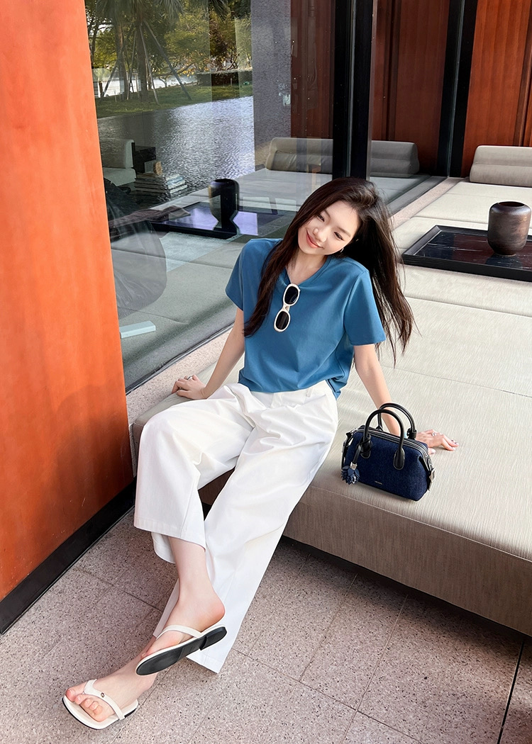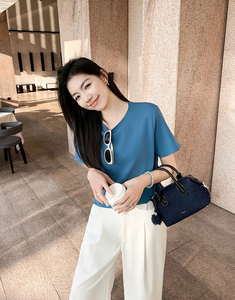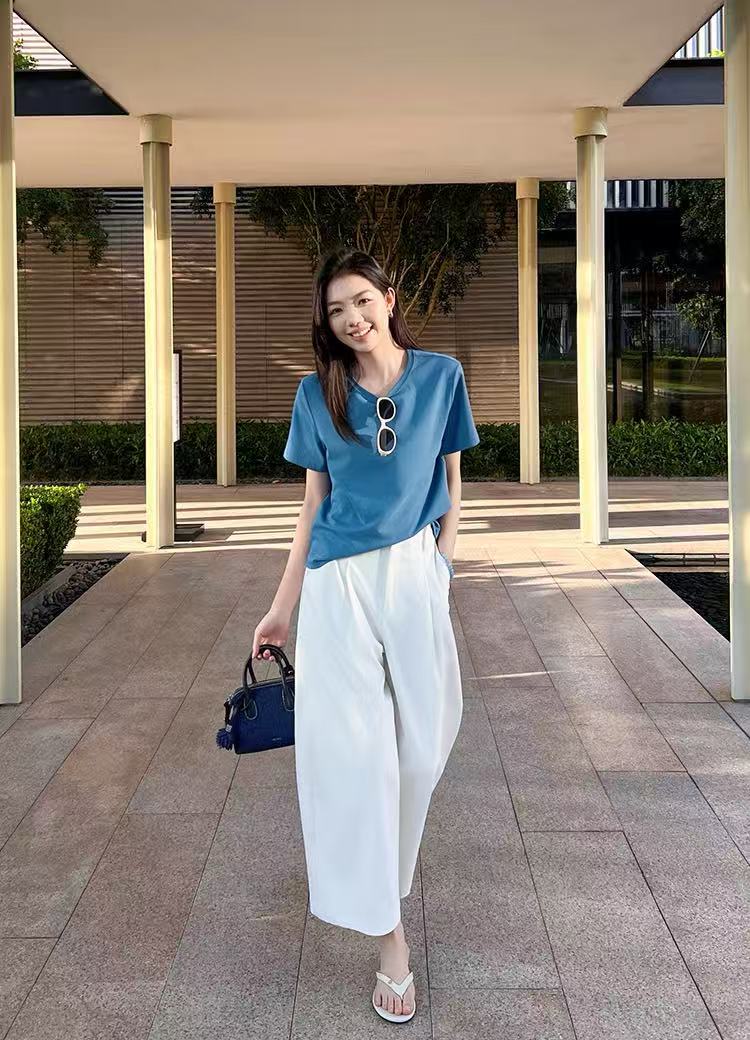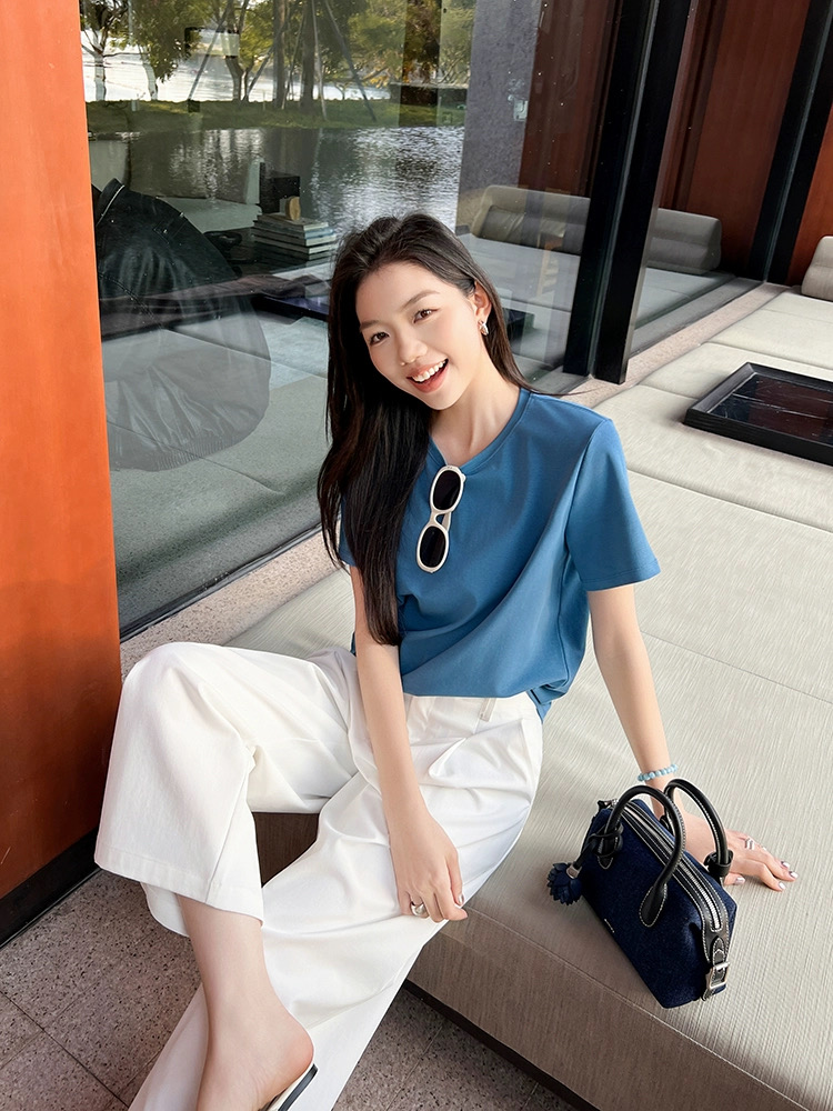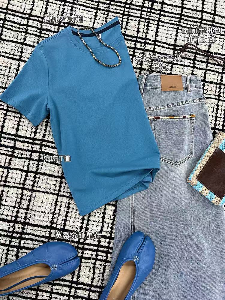 💰65元包邮, 静谧海岛蓝~海岛T恤 百搭简约圆领显瘦短袖【VQJ26033486】 美洋同款, 海岛T恤&春夏新色~衣如其名,也太适合穿去海边了,