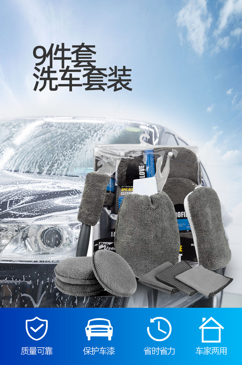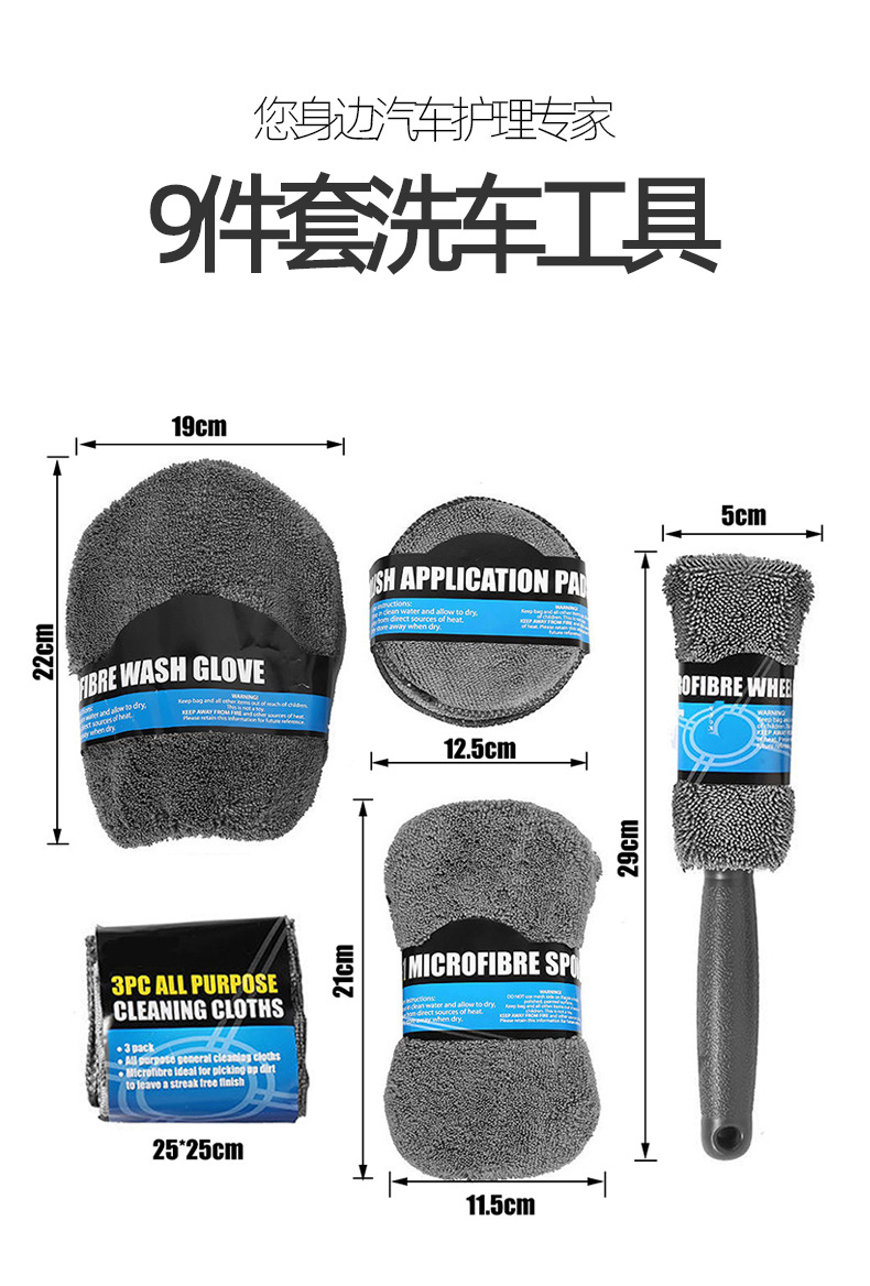 清洗9件套车用清洗工具套装加大海绵毛巾车载男女美容套装