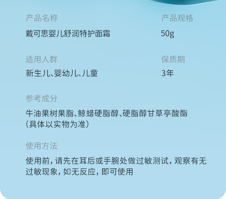 【戴可思推荐】换季敏肌霜 戴可思婴儿舒润特护霜50g*2赠维生素护唇精华油