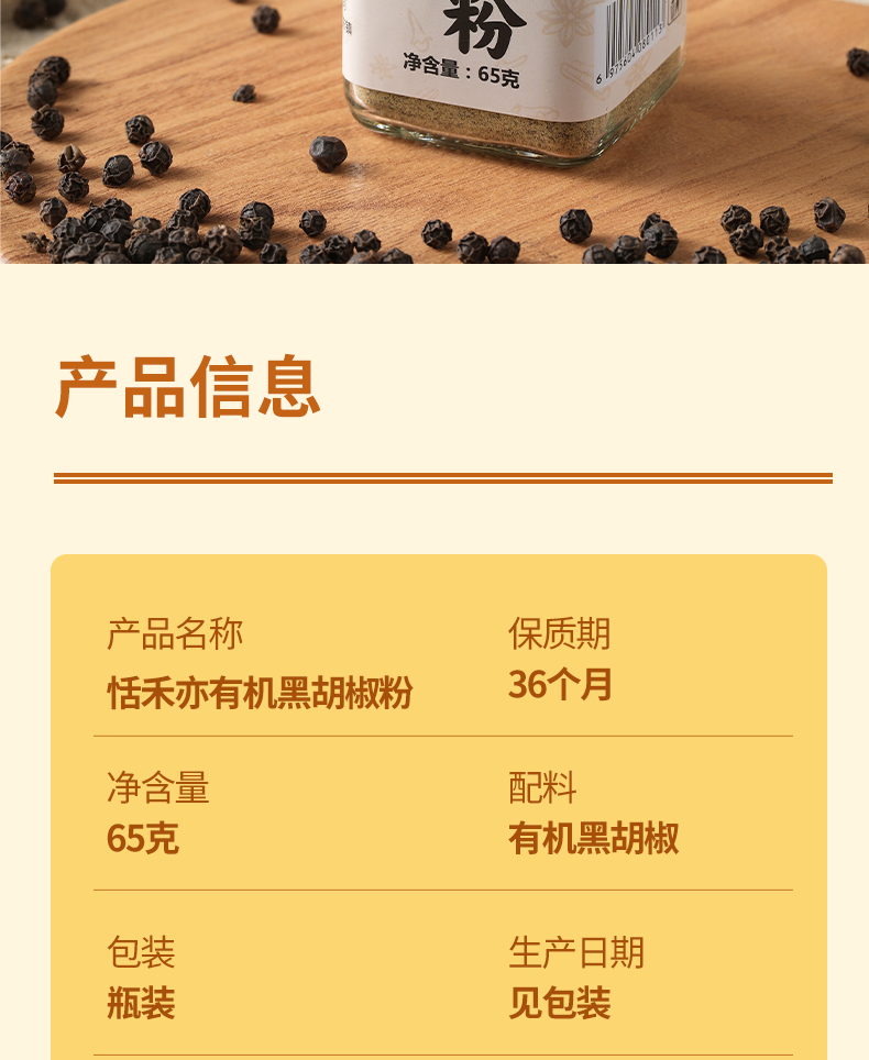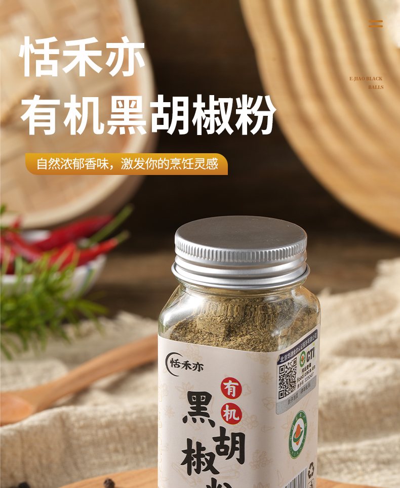 恬禾亦·有机黑胡椒粉 姜黄粉伴侣生酮饮食 牛排调料 天然调料 65g