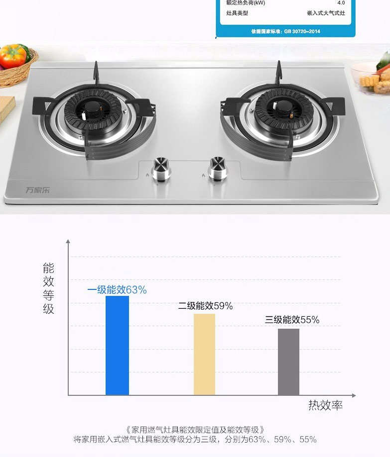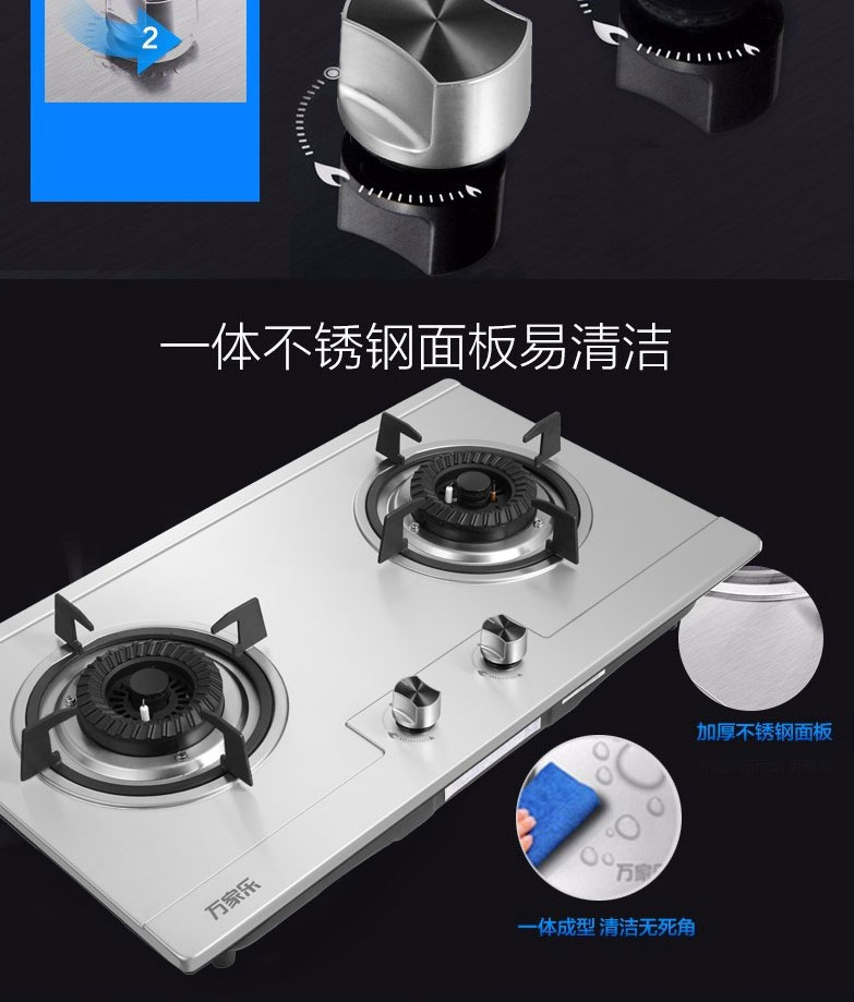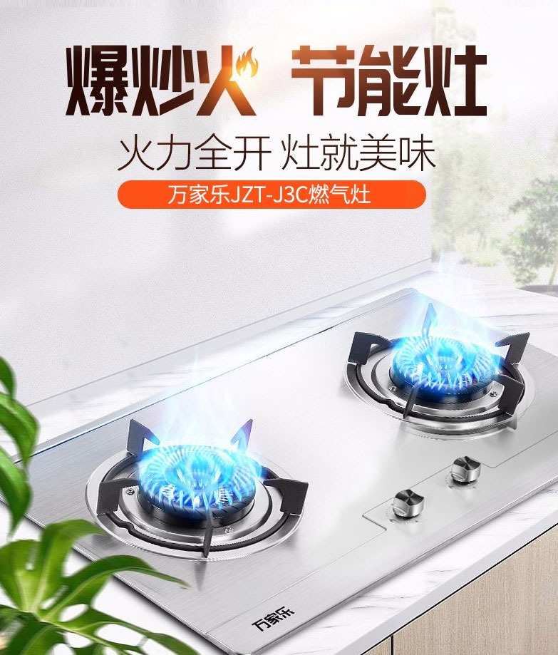 万家乐天然气不锈钢面板家用嵌入式双眼燃气灶JZT-J3C