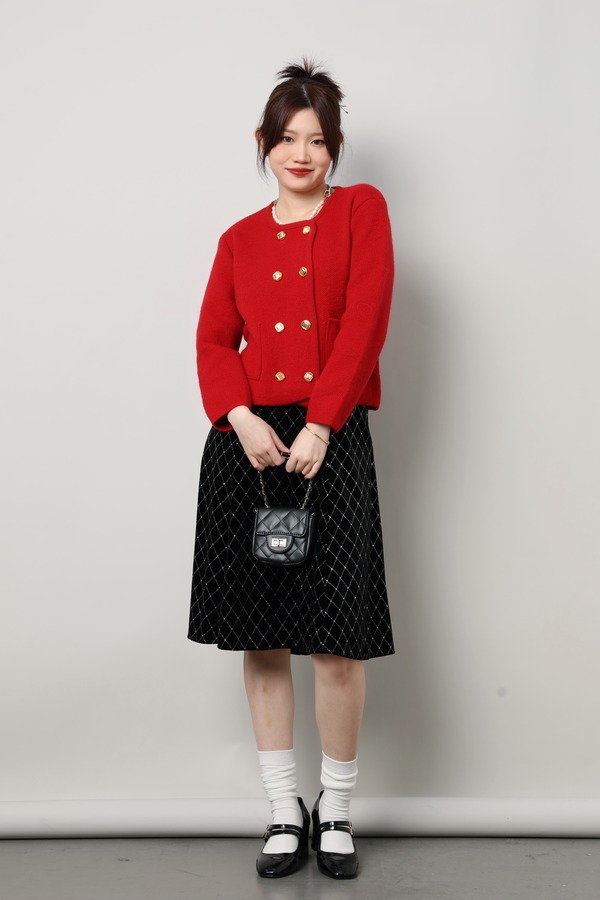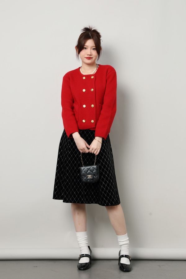 Stay2Weeks 红色圆领氛围感双排扣针织开衫 17708