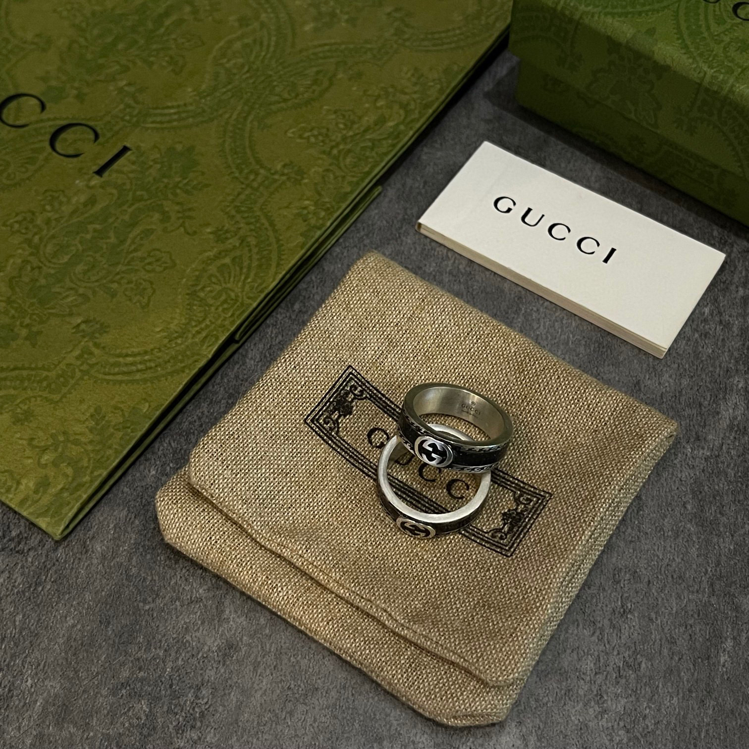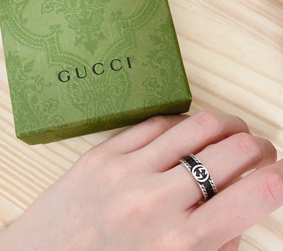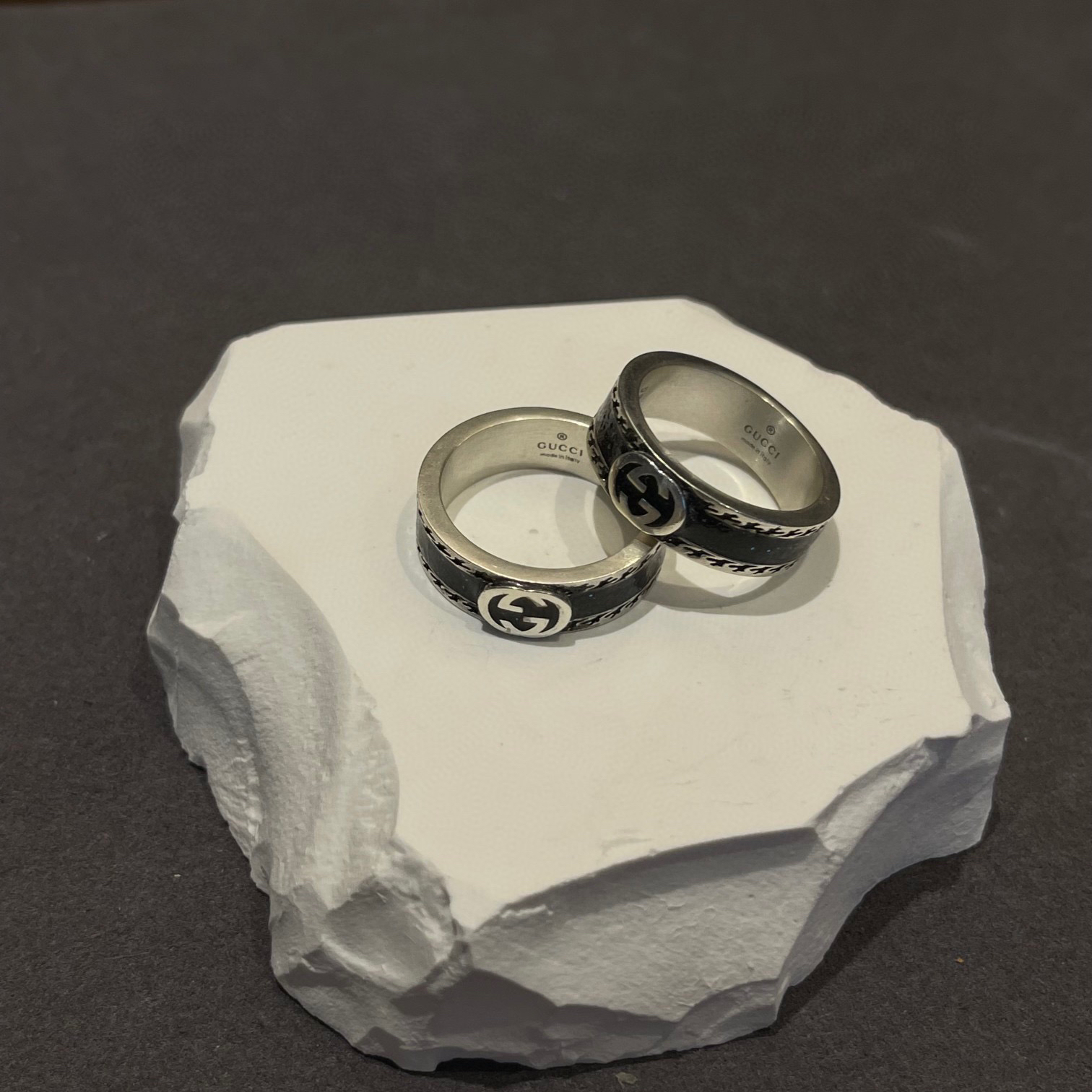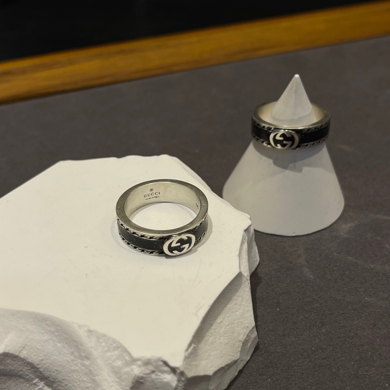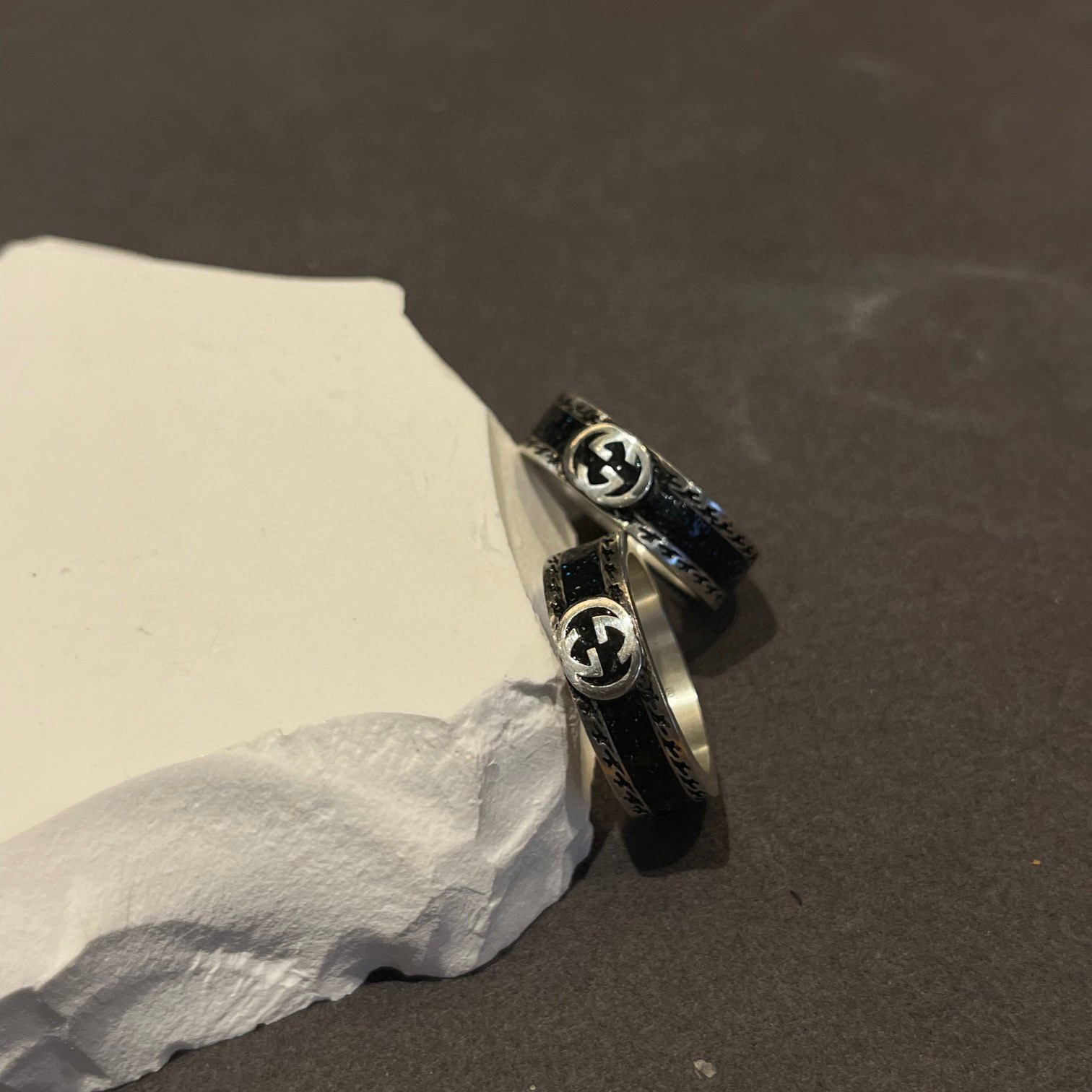 纯银材质 复古做旧 珐琅烤漆 互扣双G 边缘雕花 情侣款式