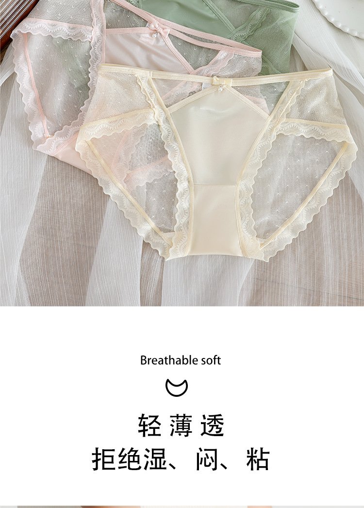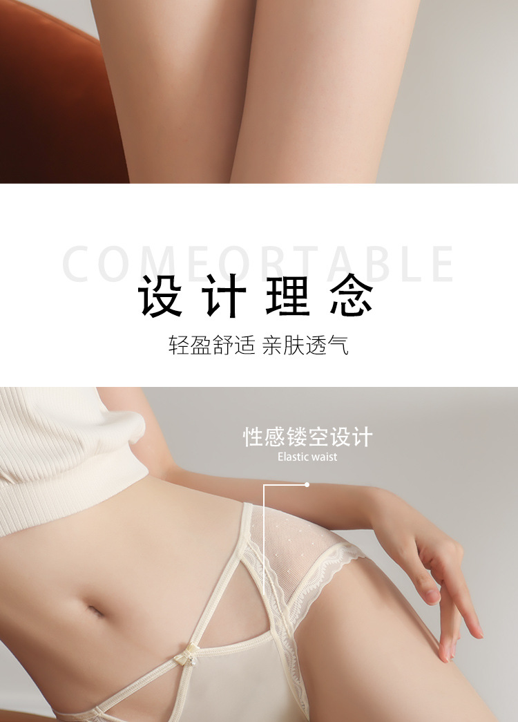 买1送1【日系甜美风!法系斩男款!双风格可选!】性感蕾丝绝对撩人!中腰包臀,冰丝般透气,舒适透肤;半透明的镂空裤头设计,性感中又不失优雅!