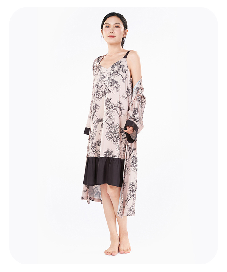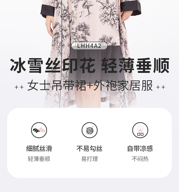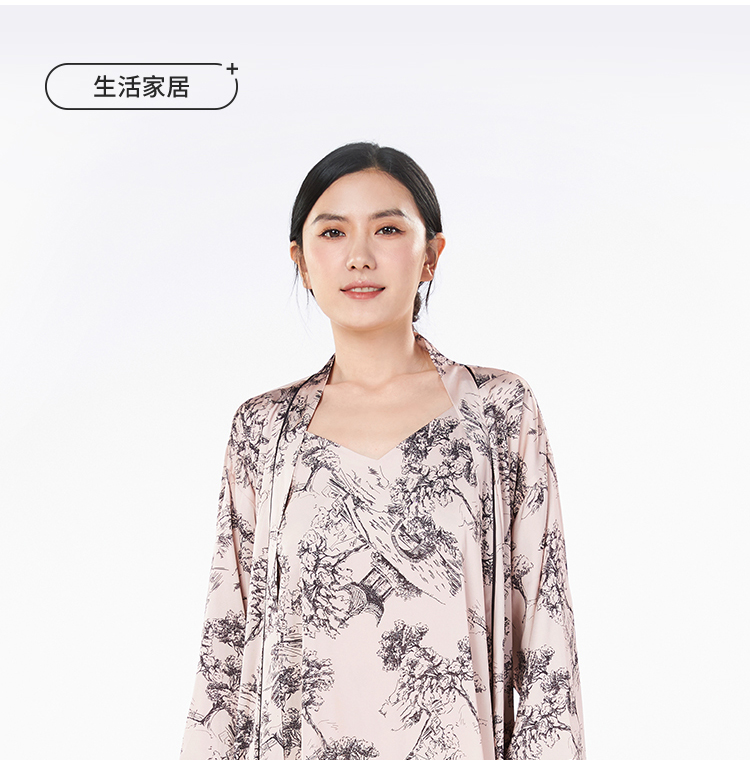都市丽人女士丝质两件套薄冰雪丝印花好睡好眠两件套LHH4A2
