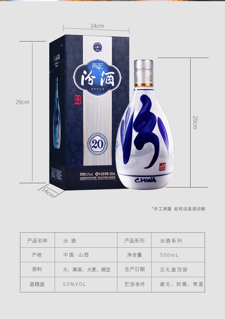 汾酒杏花村酒53度青花20 500ml单瓶装