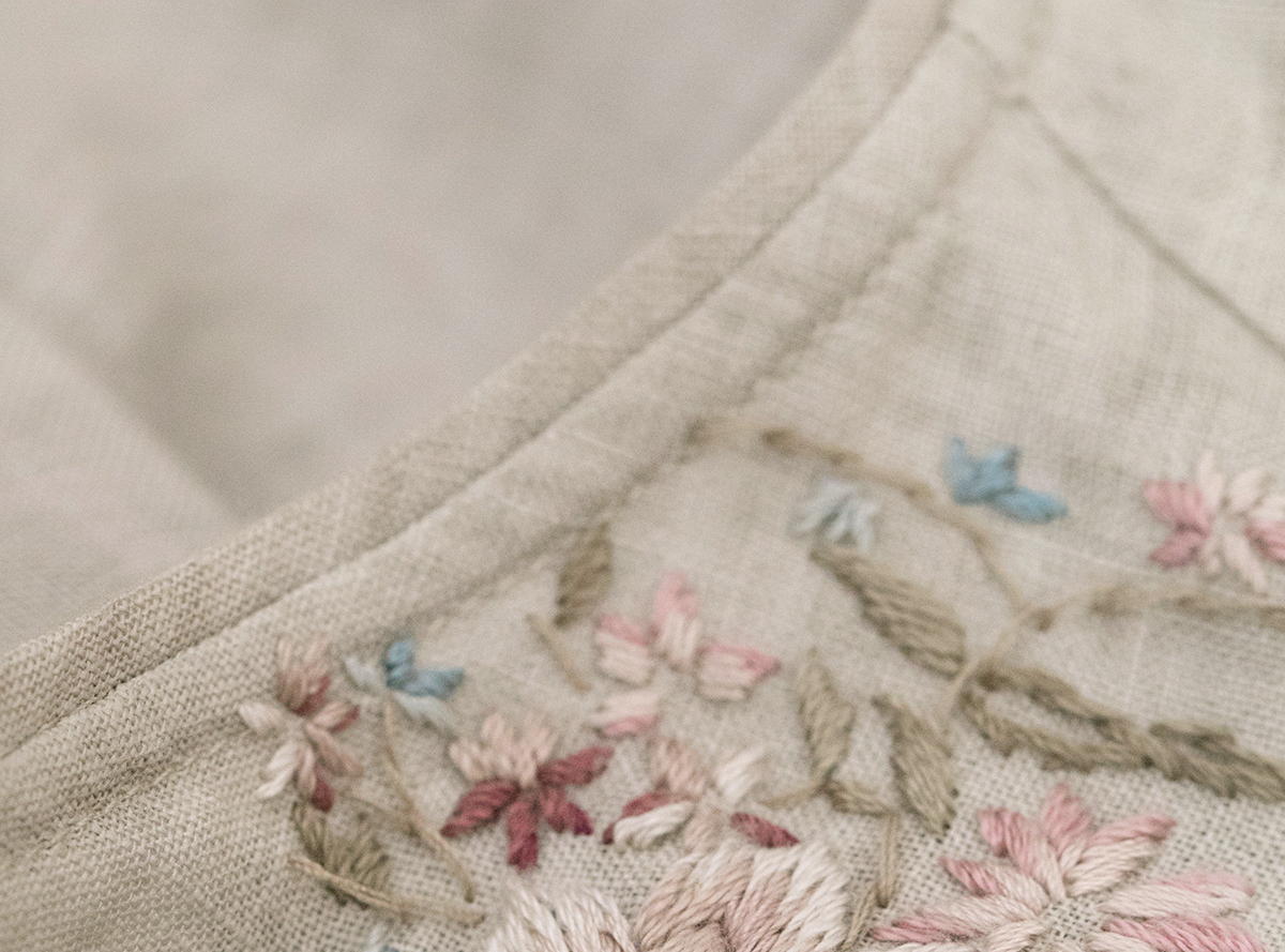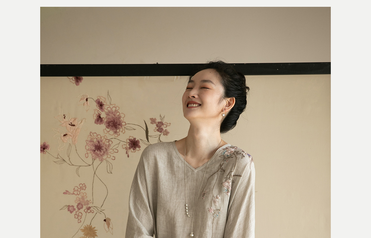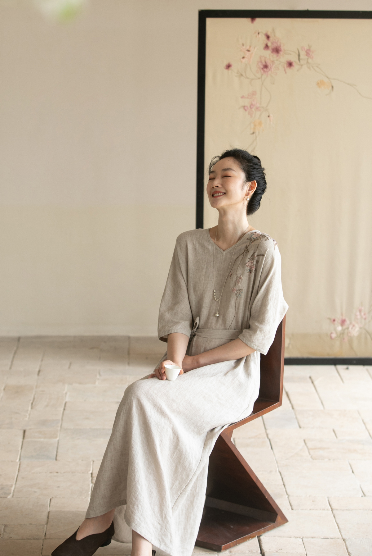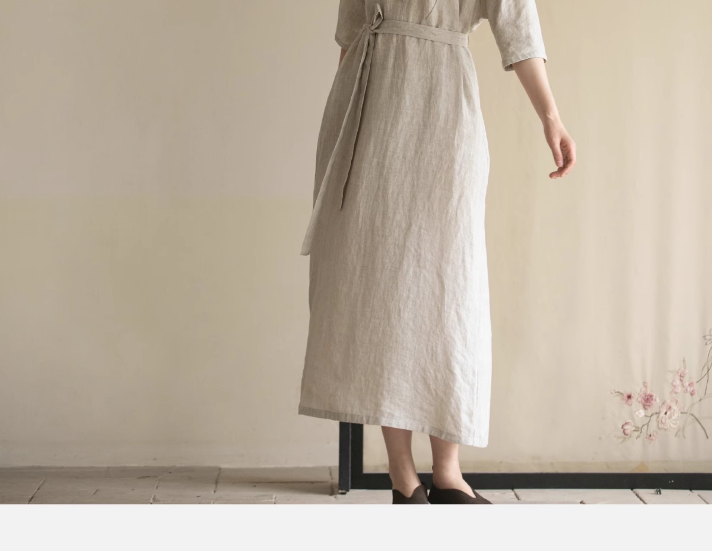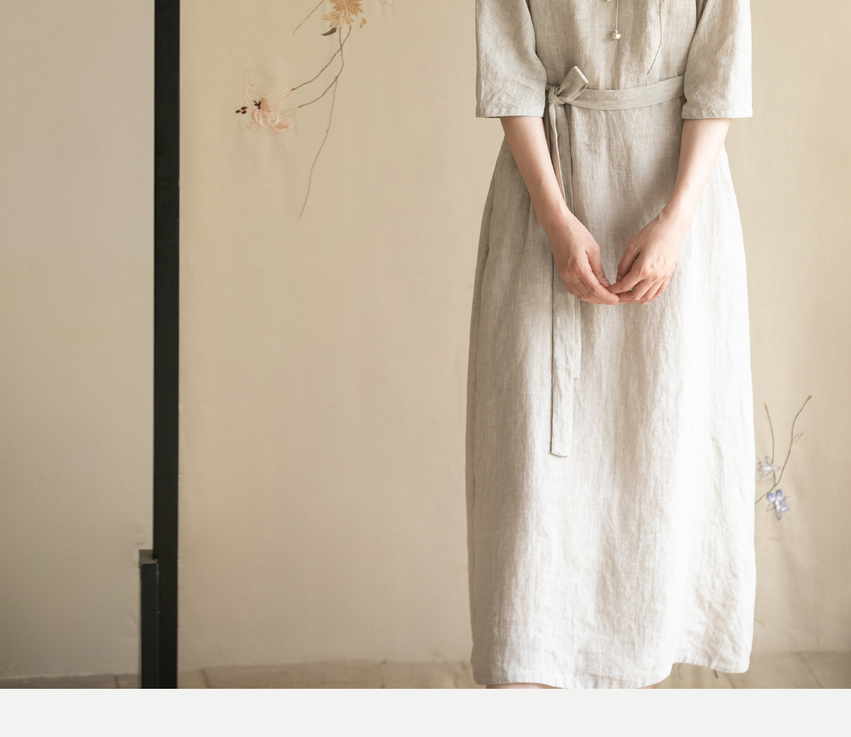 牧衣游原创手工刺绣汉麻连衣裙新品轻薄柔软质朴V领宽松长裙 知源