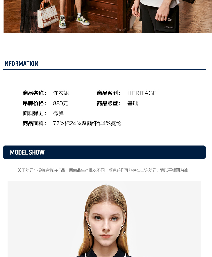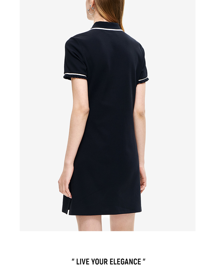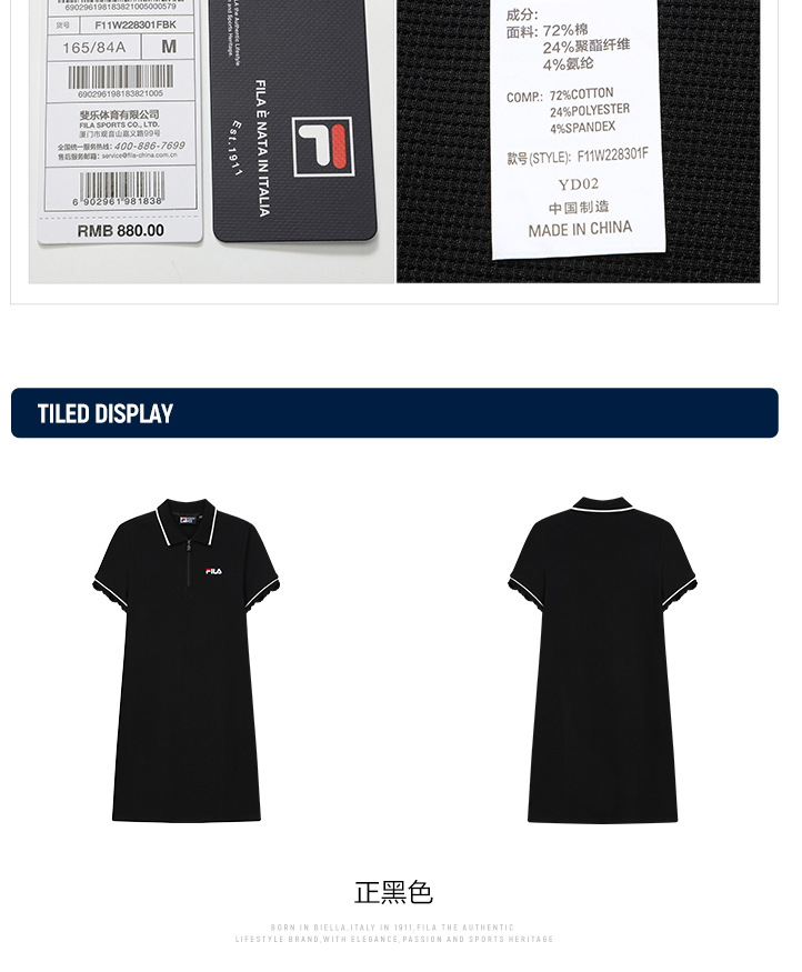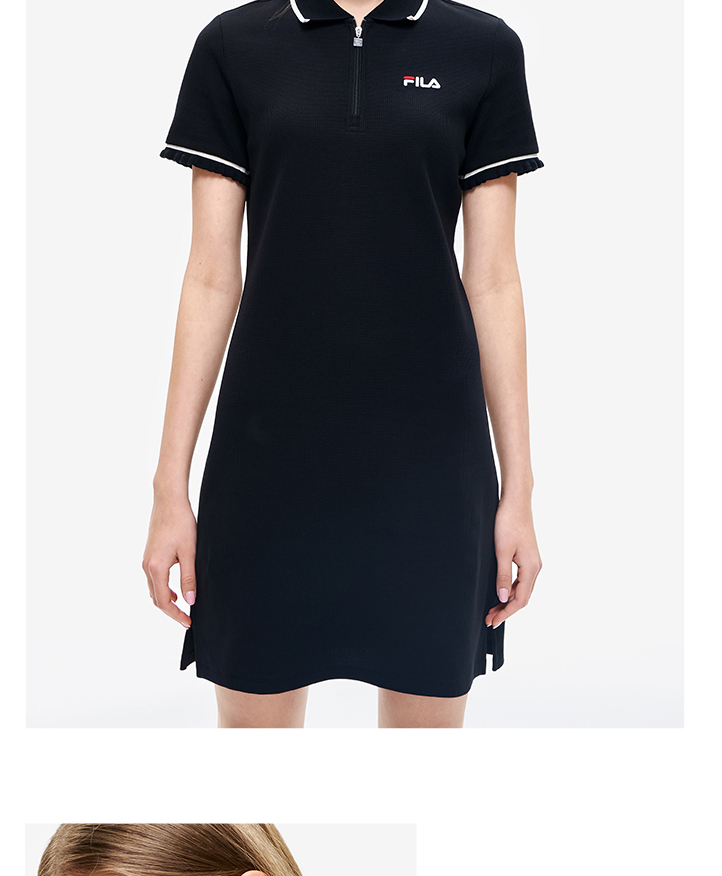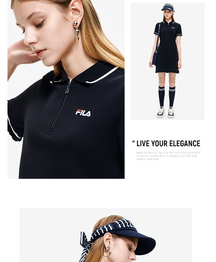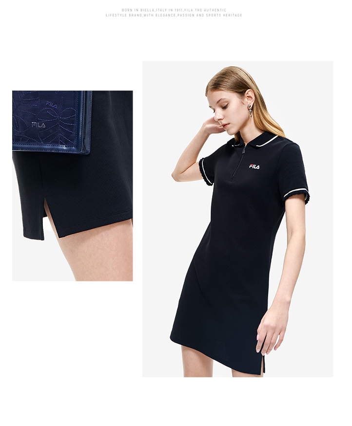 FILA斐乐 女子连衣裙2022夏季新款休闲显瘦运动POLO领连衣裙F11W228301F