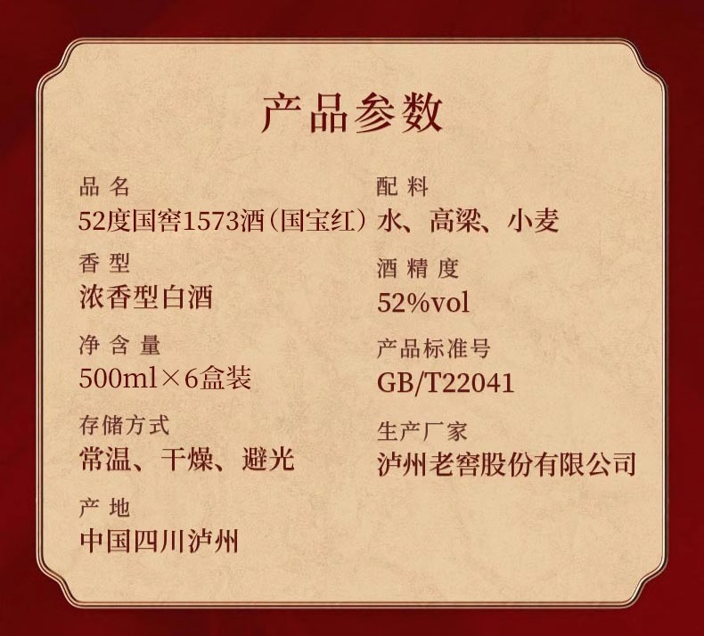 52度 国窖1573酒 (国宝红) 500ml*6 泸州老窖官方旗舰店