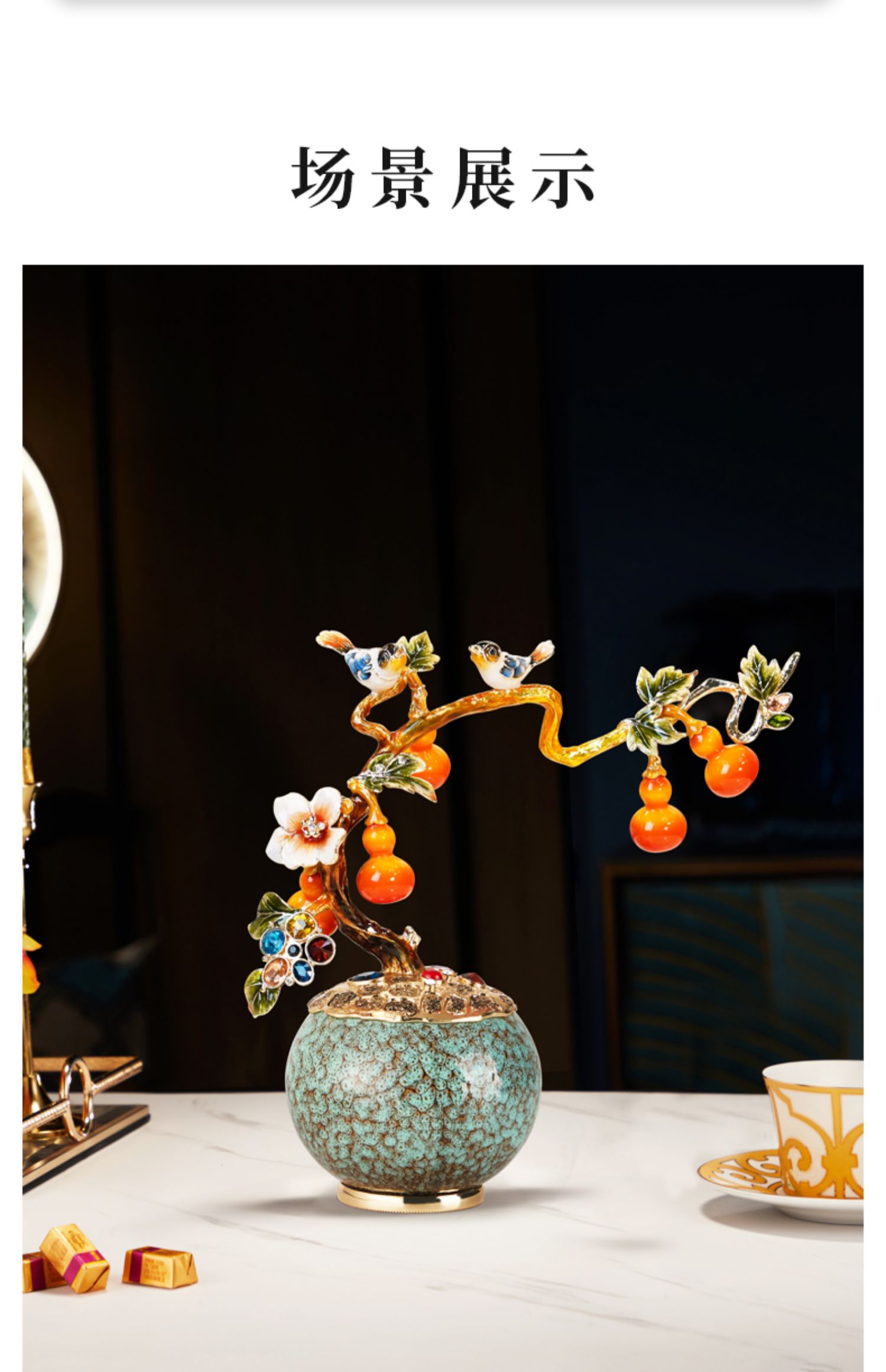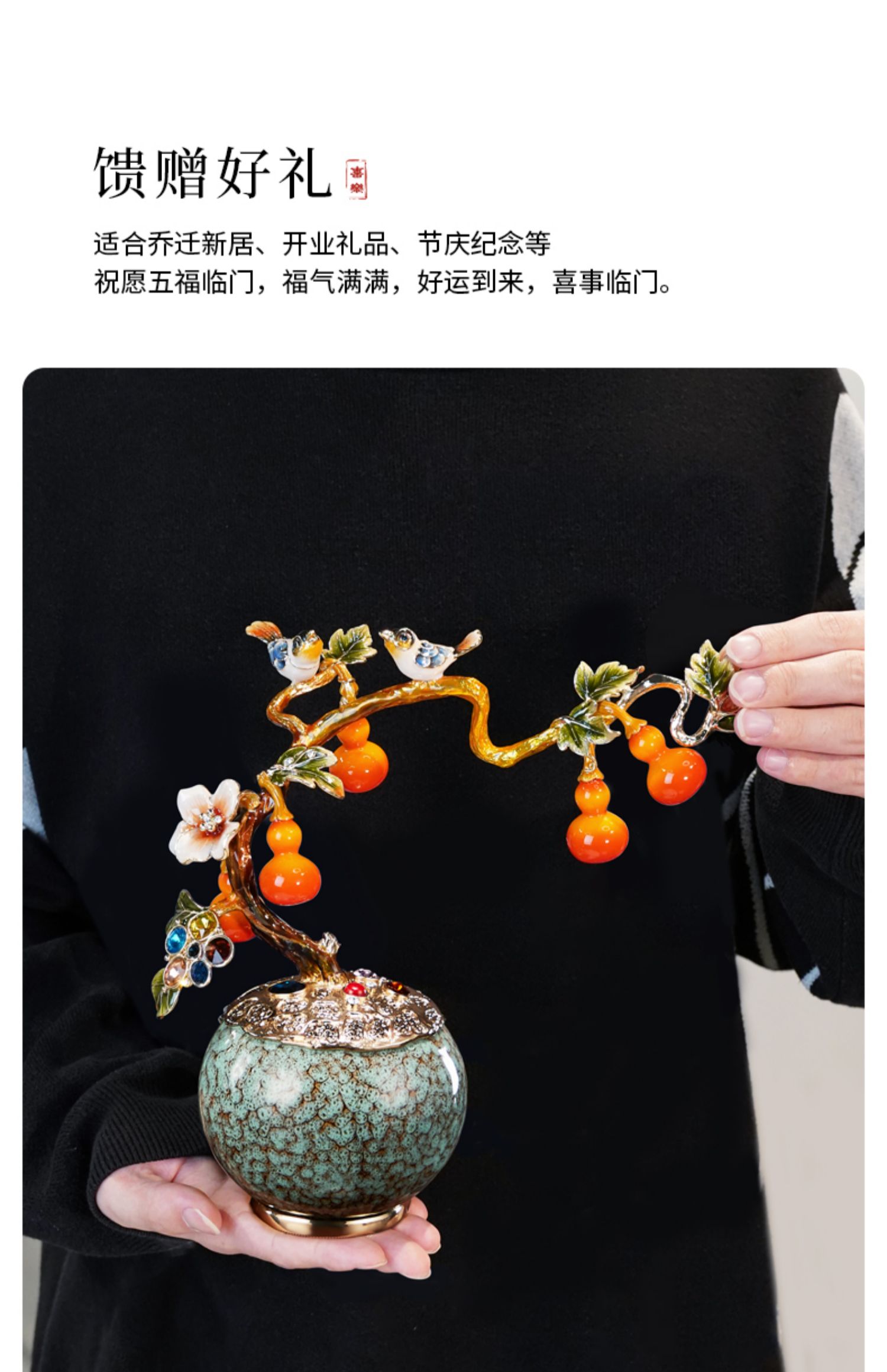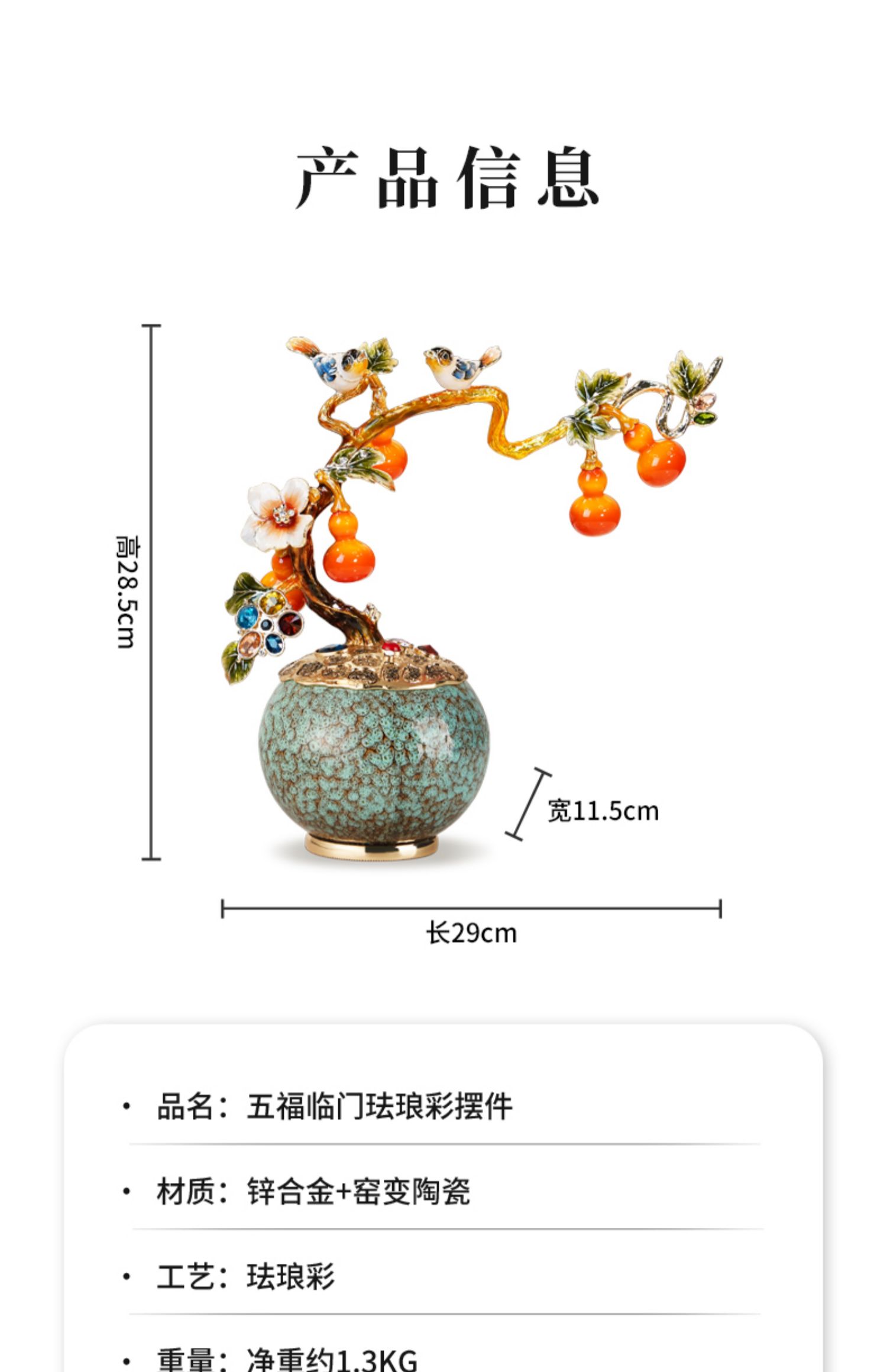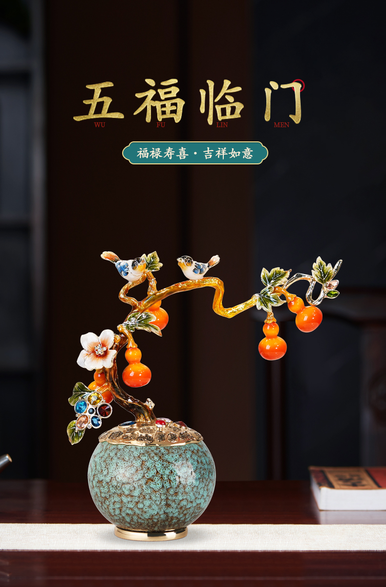 E-N-H0588-诺诗曼-五福临门珐琅彩摆件